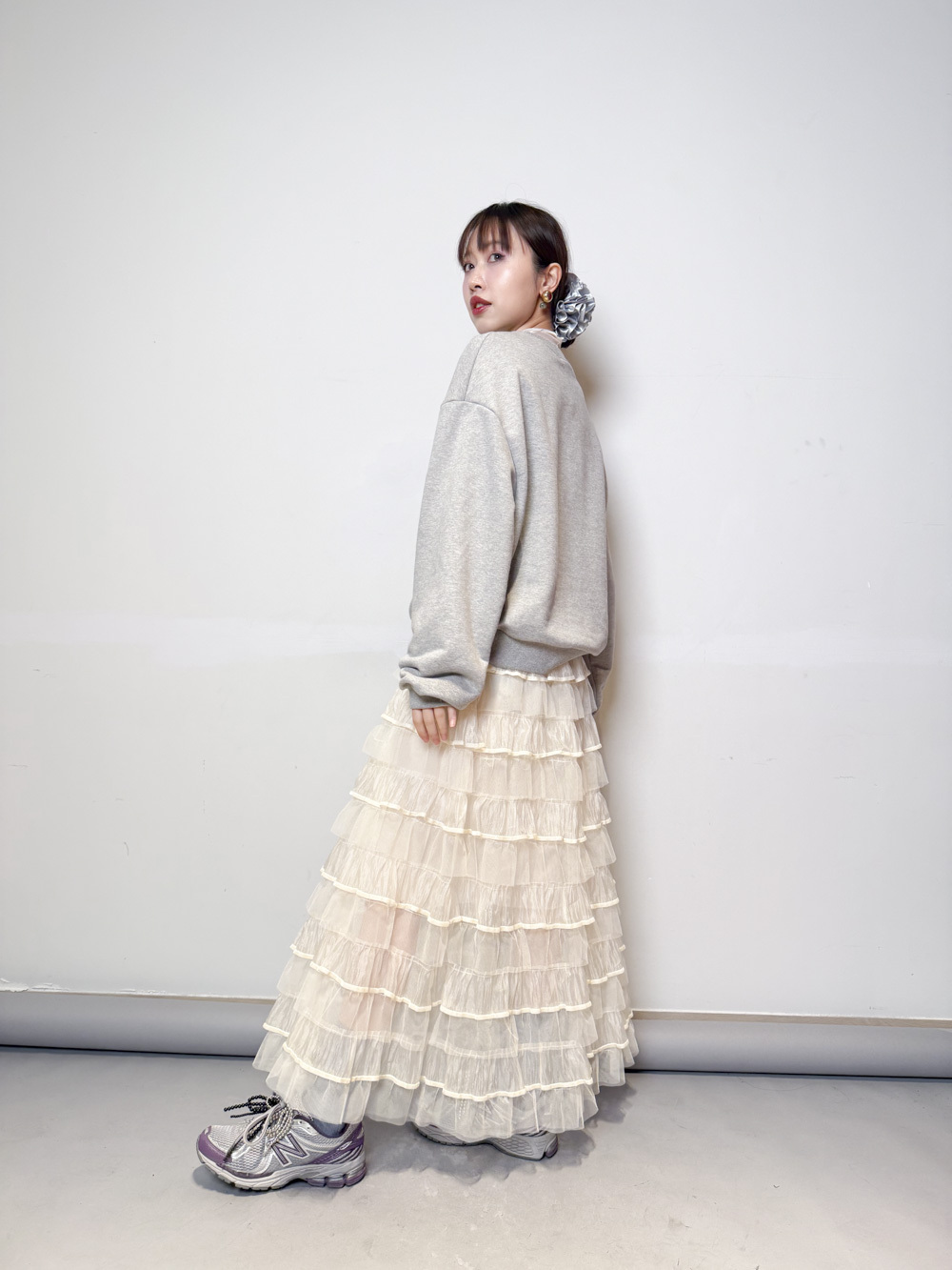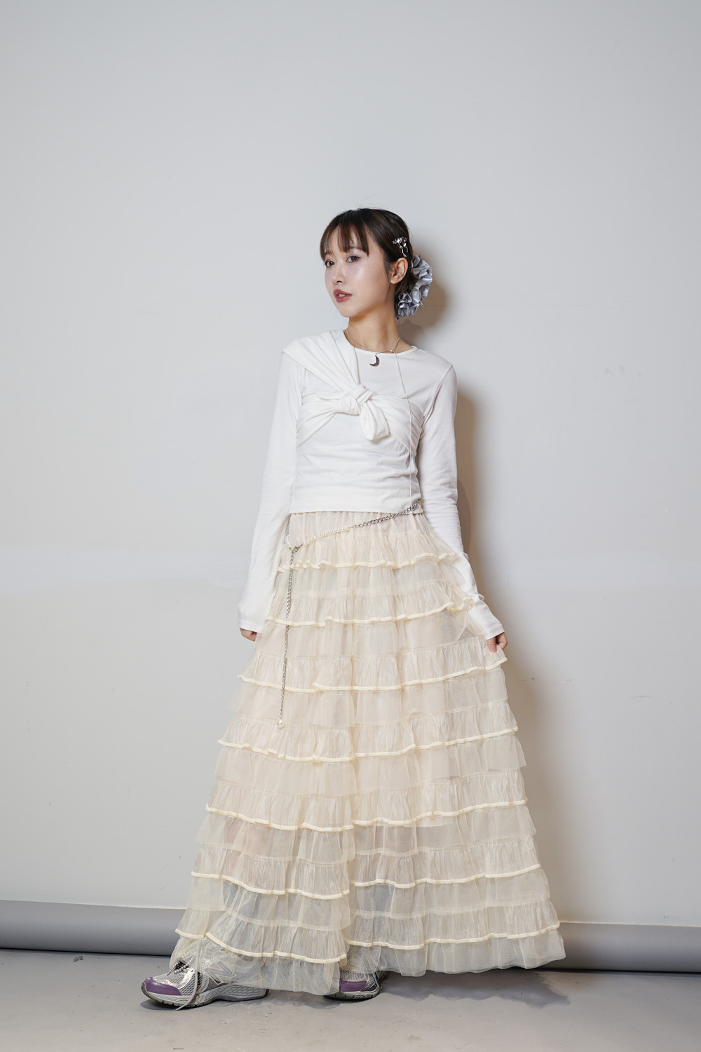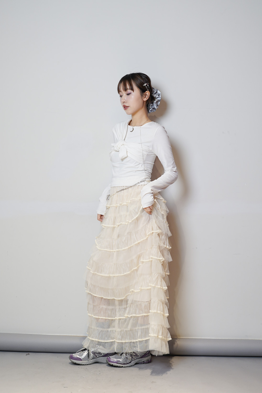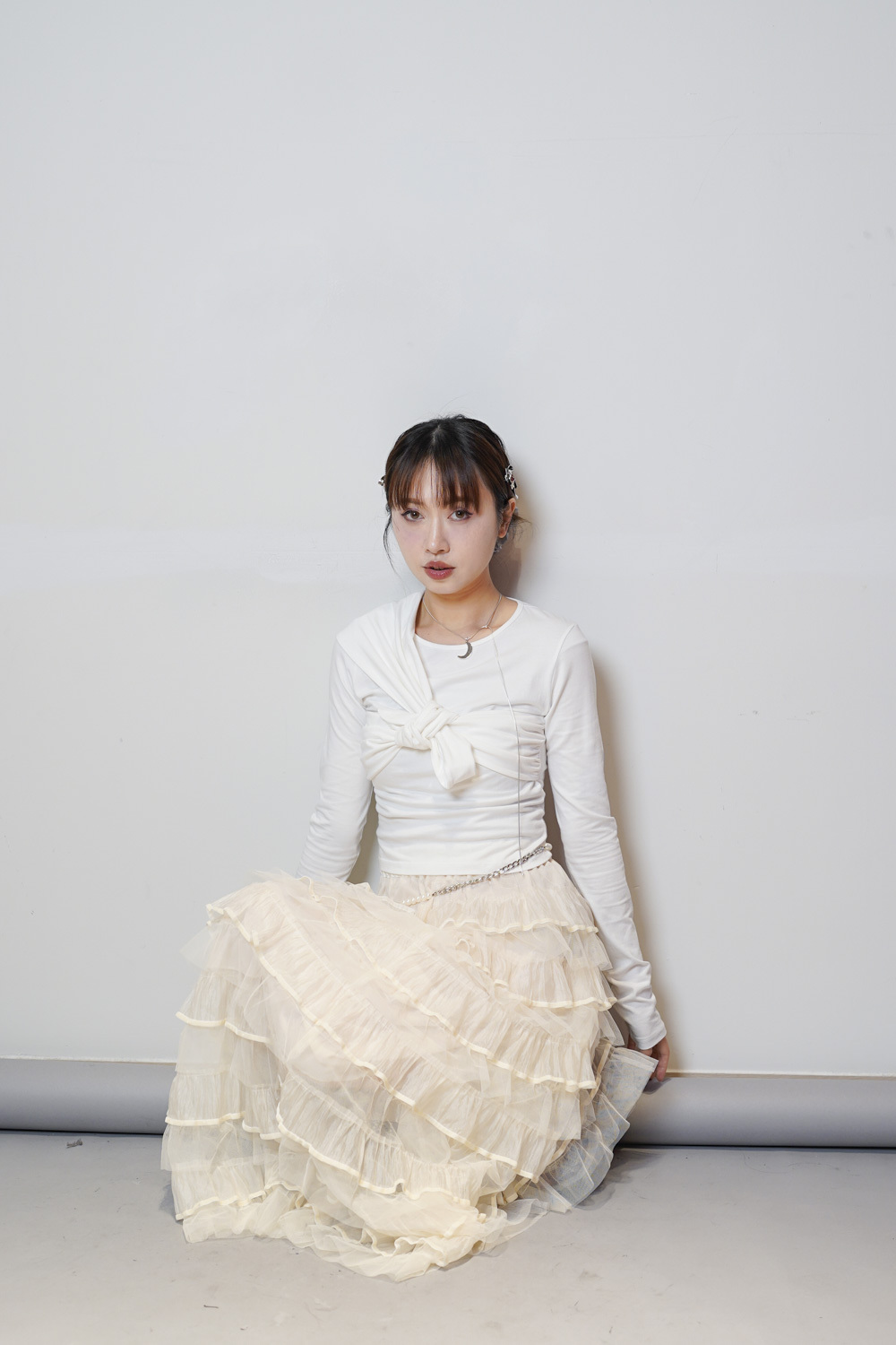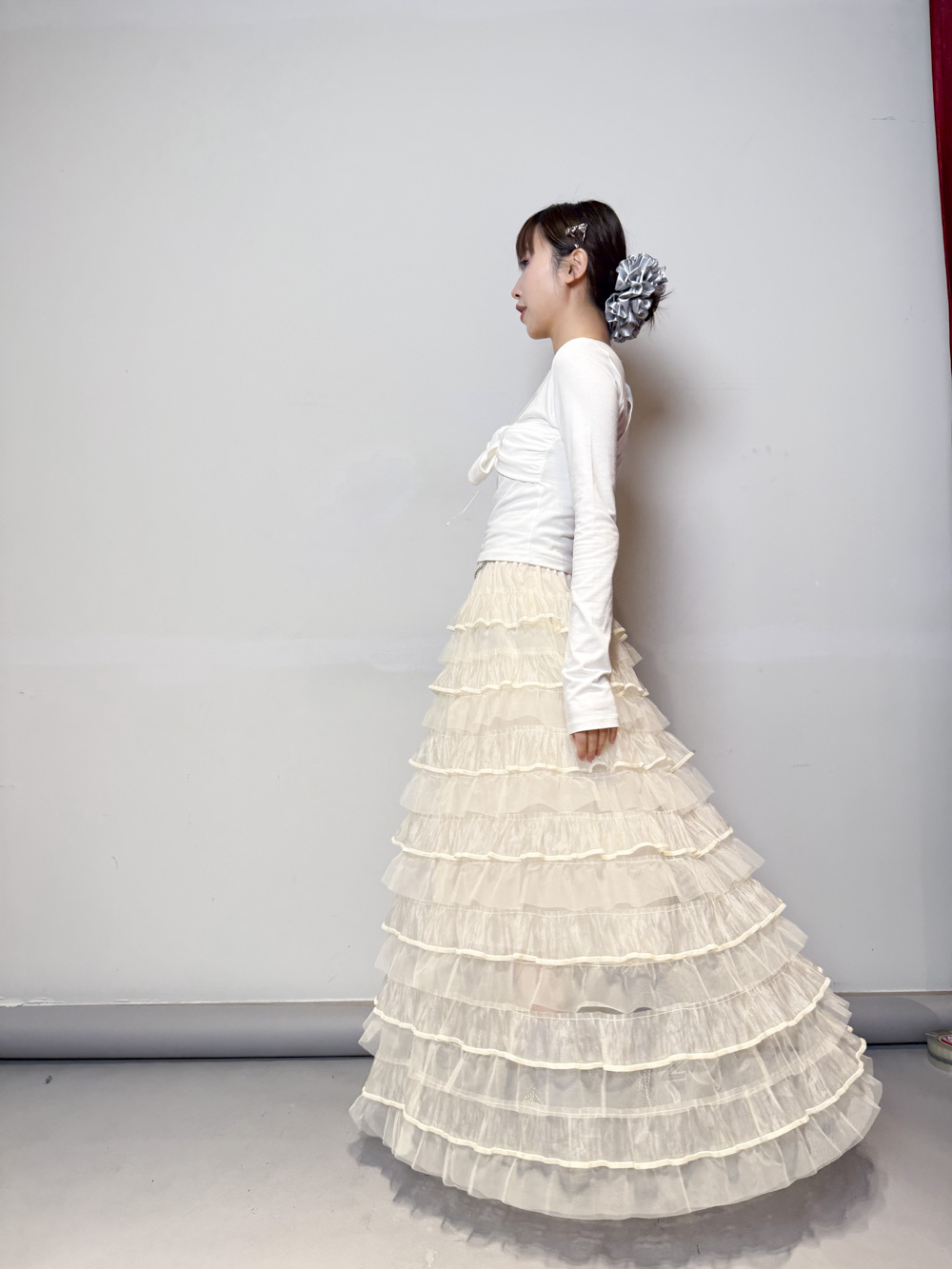 Velvet mesh blossom skirt (IVORY/ BLACK)