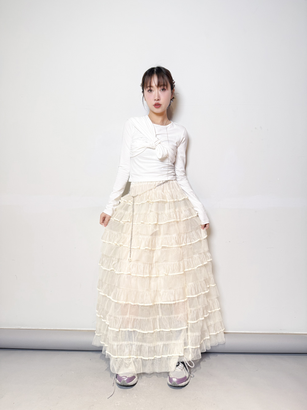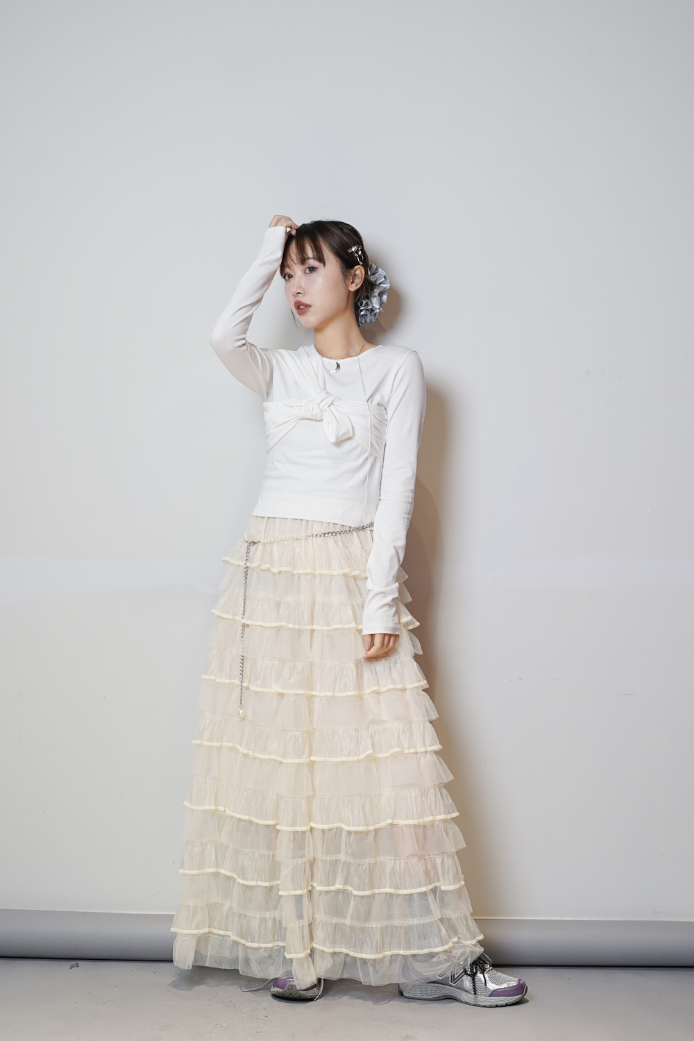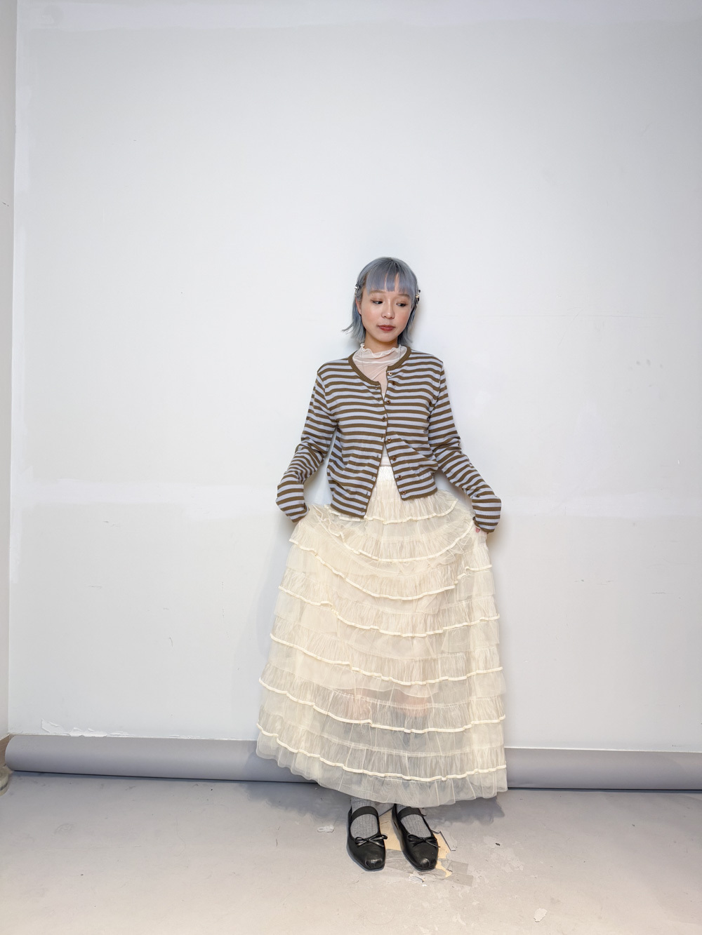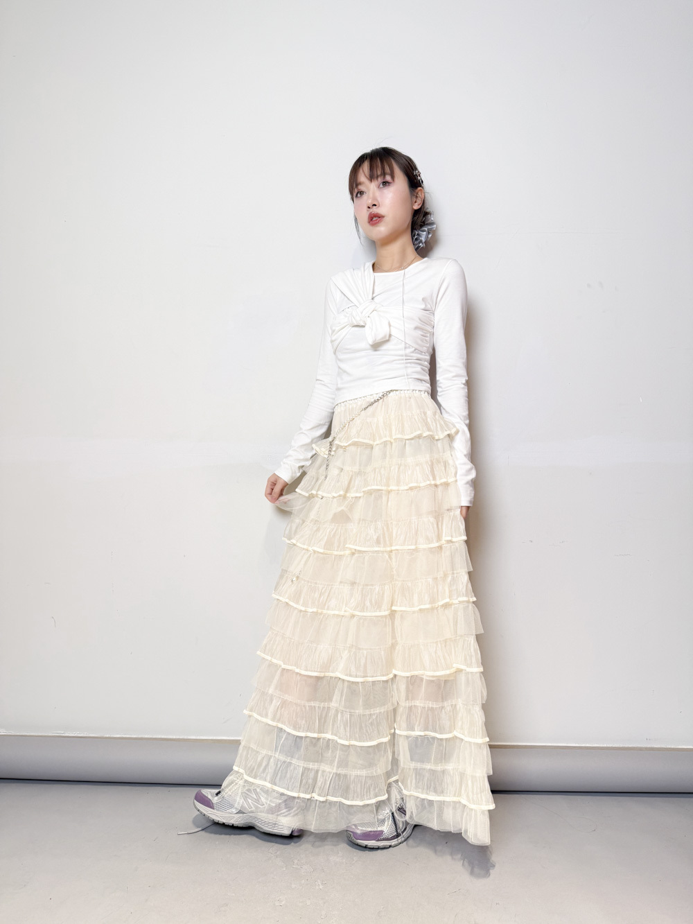 Velvet mesh blossom skirt (IVORY/ BLACK)