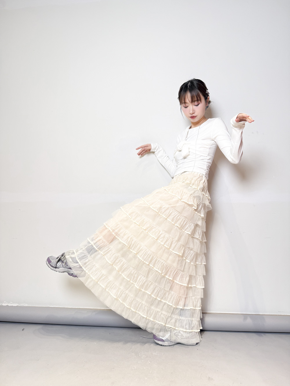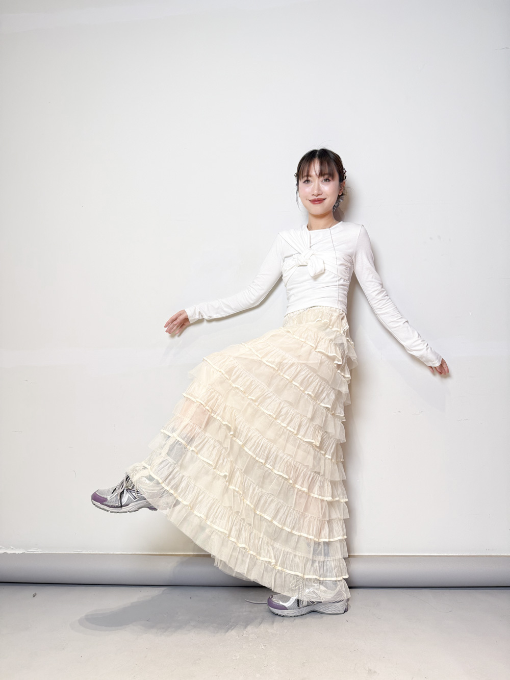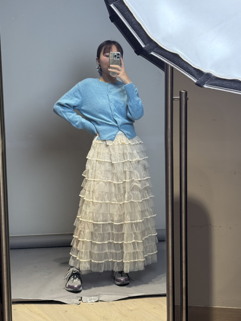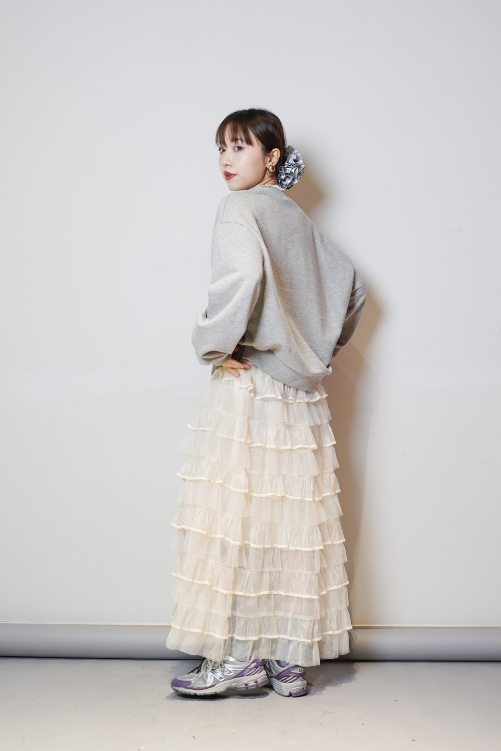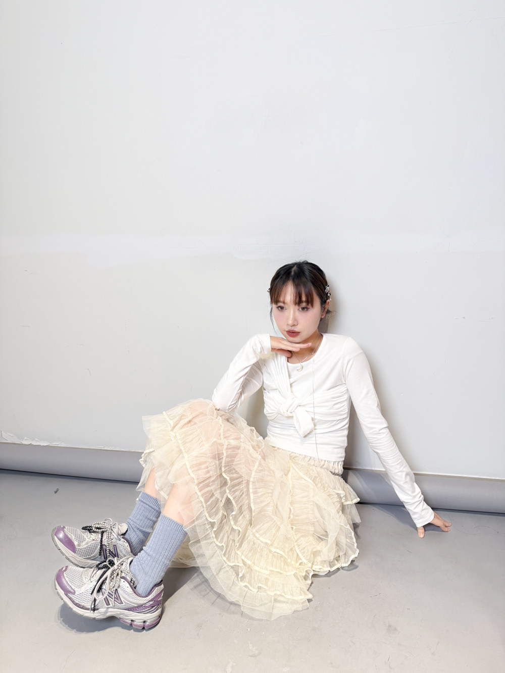 Velvet mesh blossom skirt (IVORY/ BLACK)