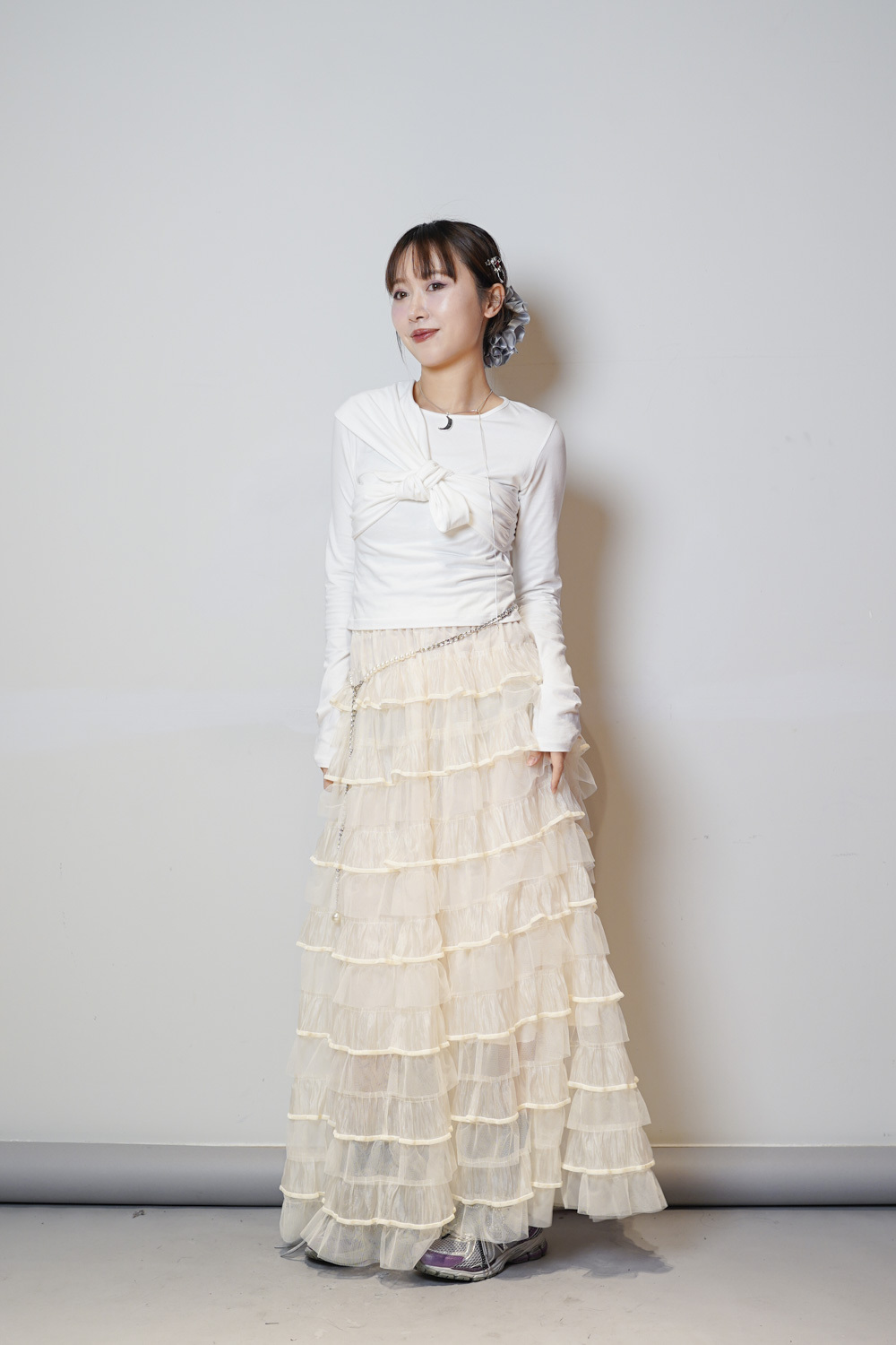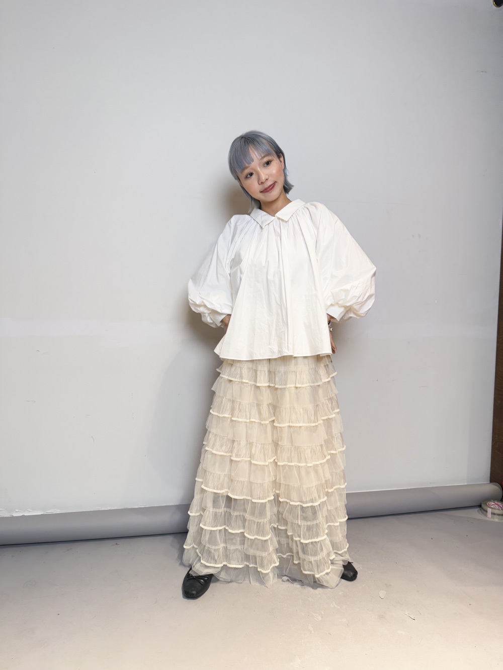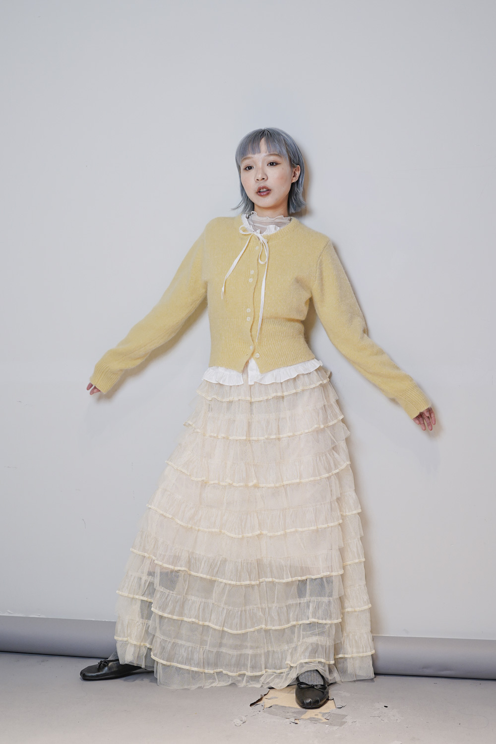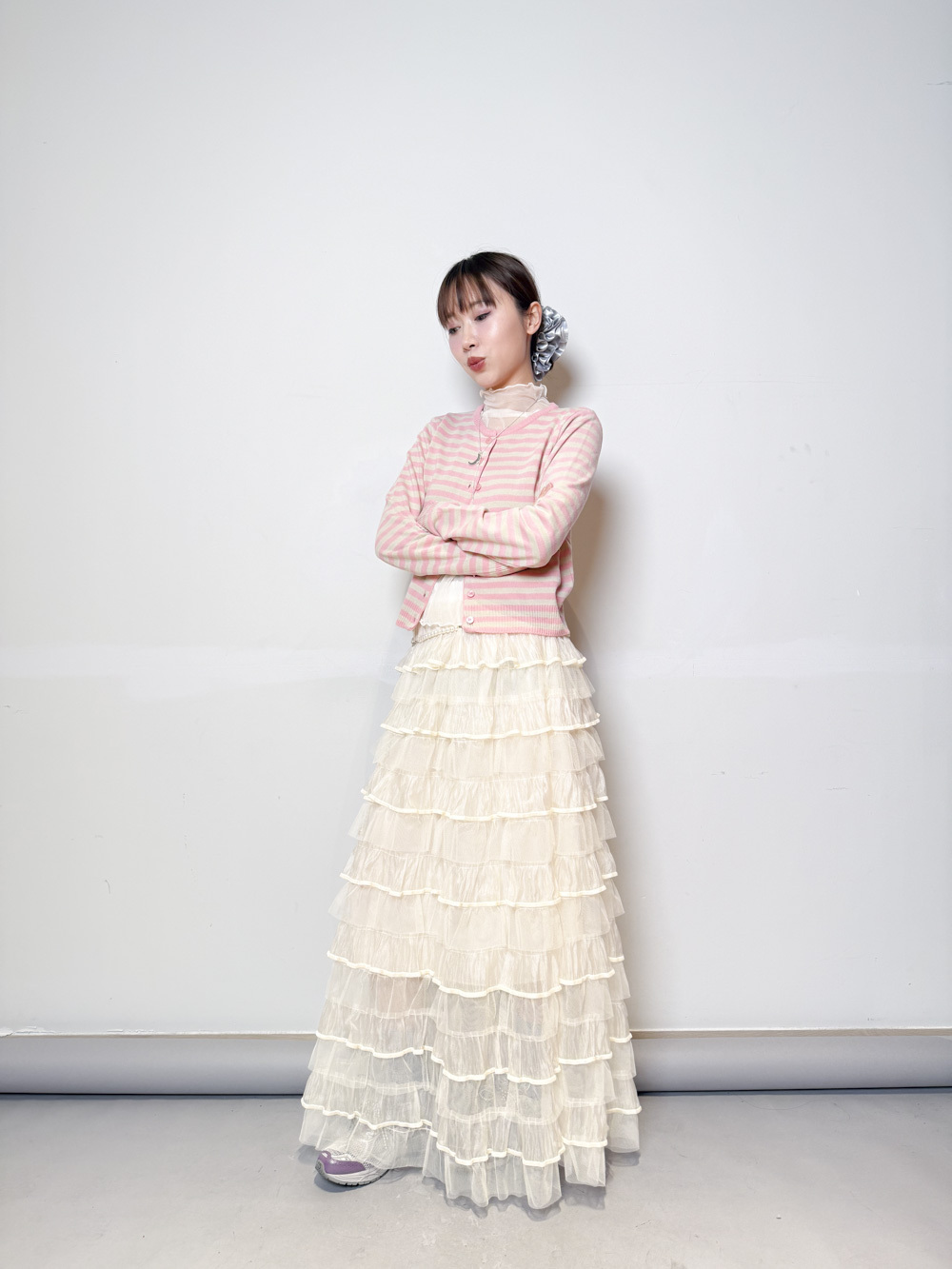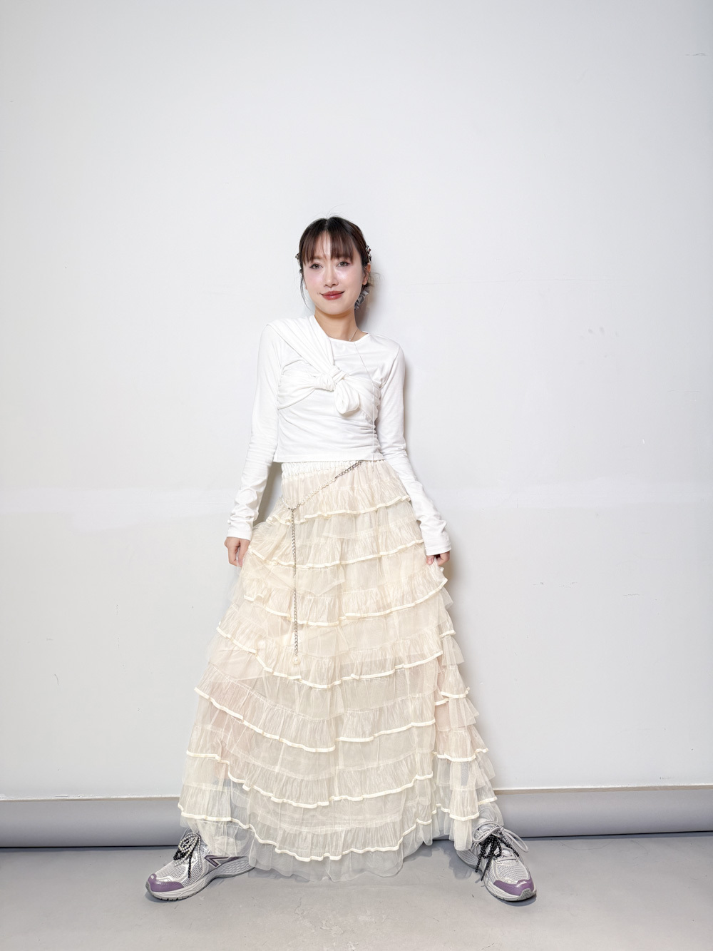 Velvet mesh blossom skirt (IVORY/ BLACK)