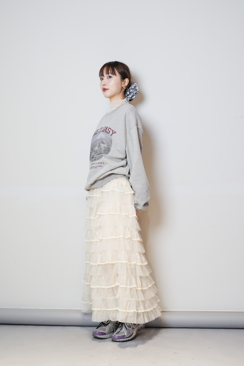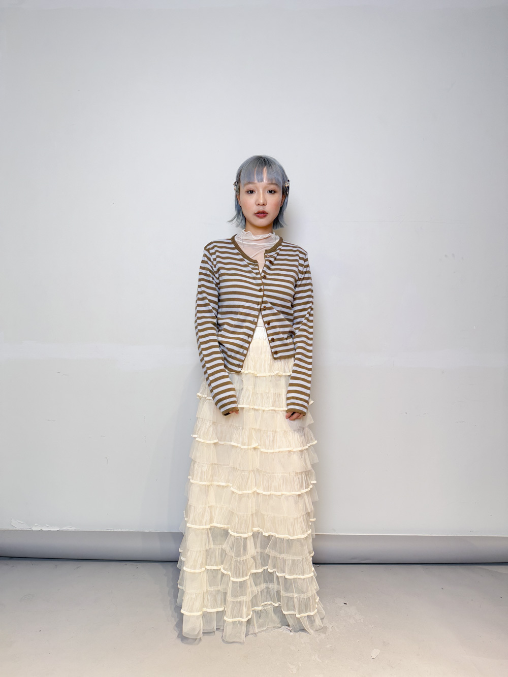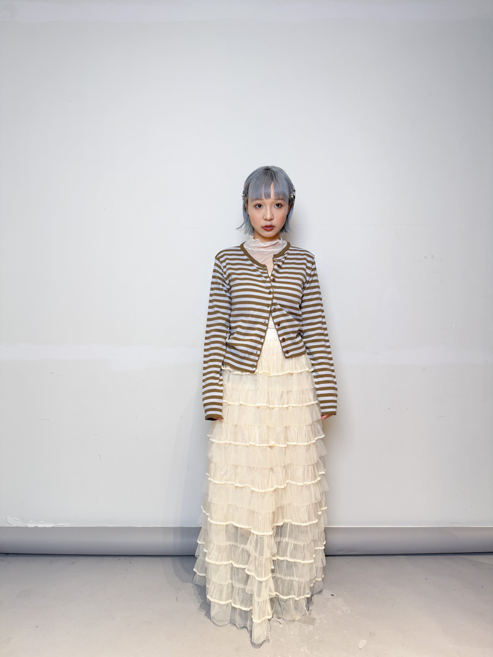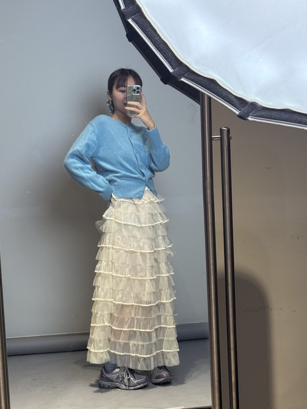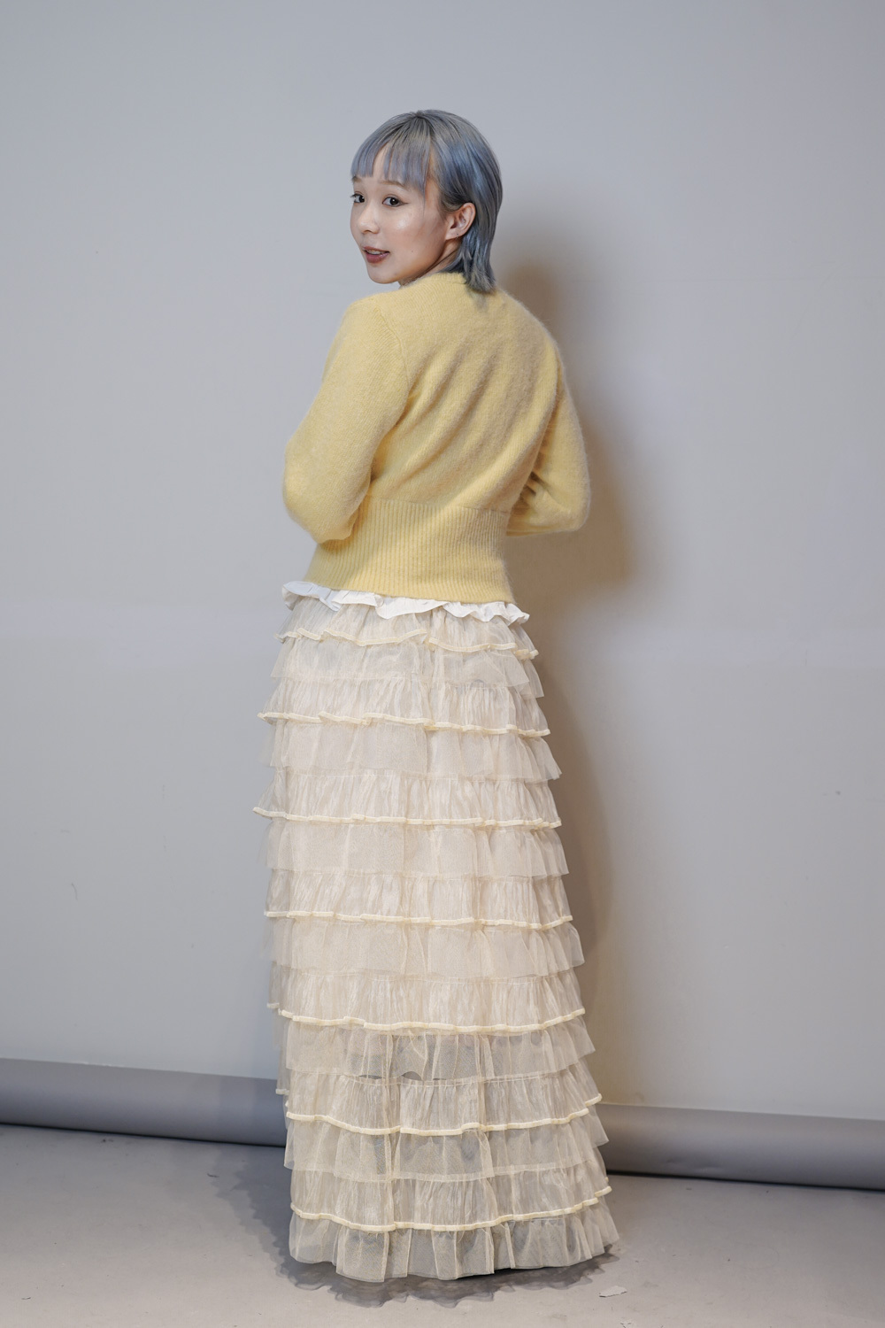 Velvet mesh blossom skirt (IVORY/ BLACK)