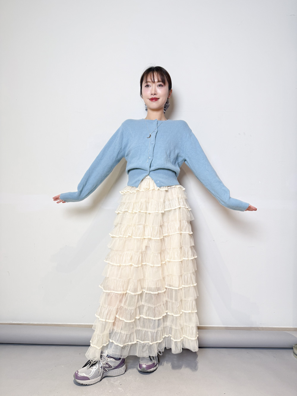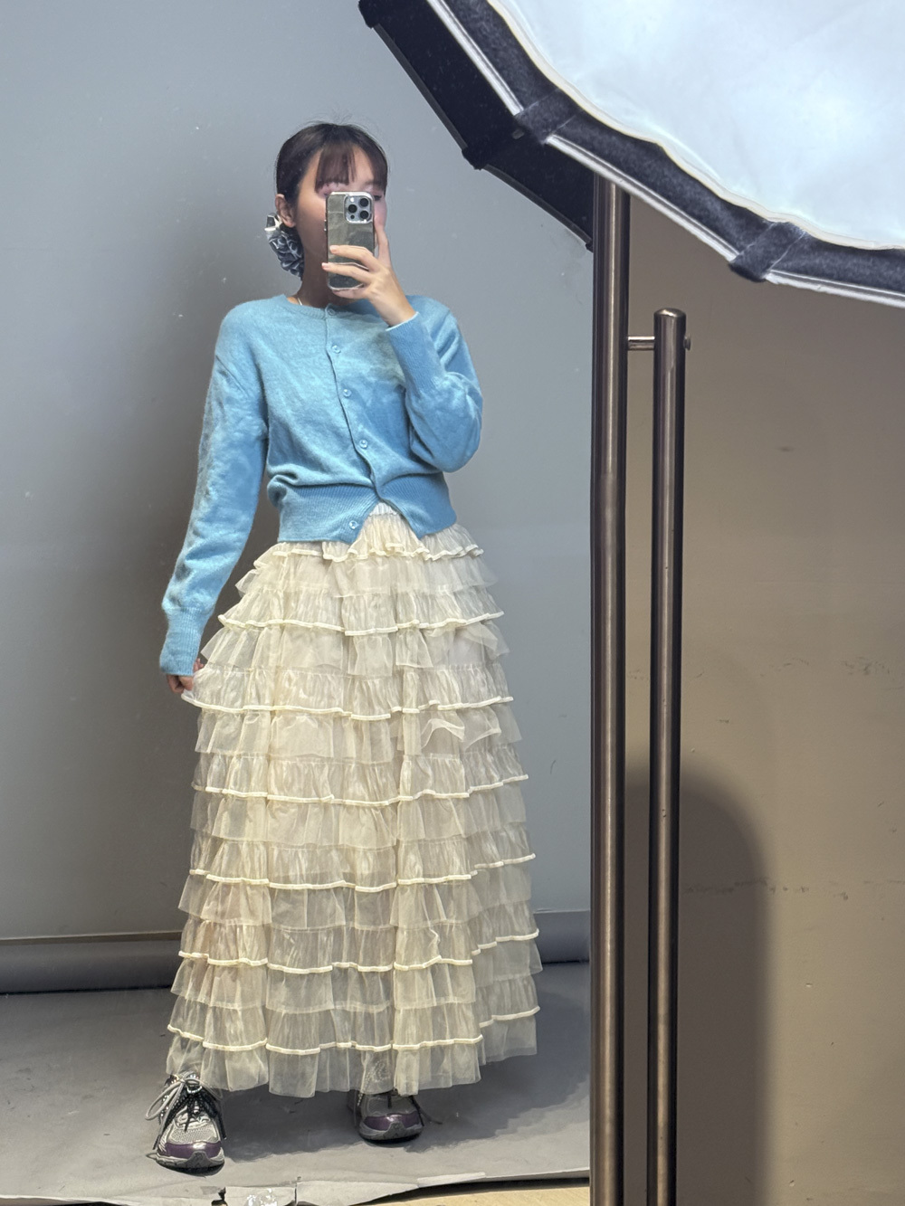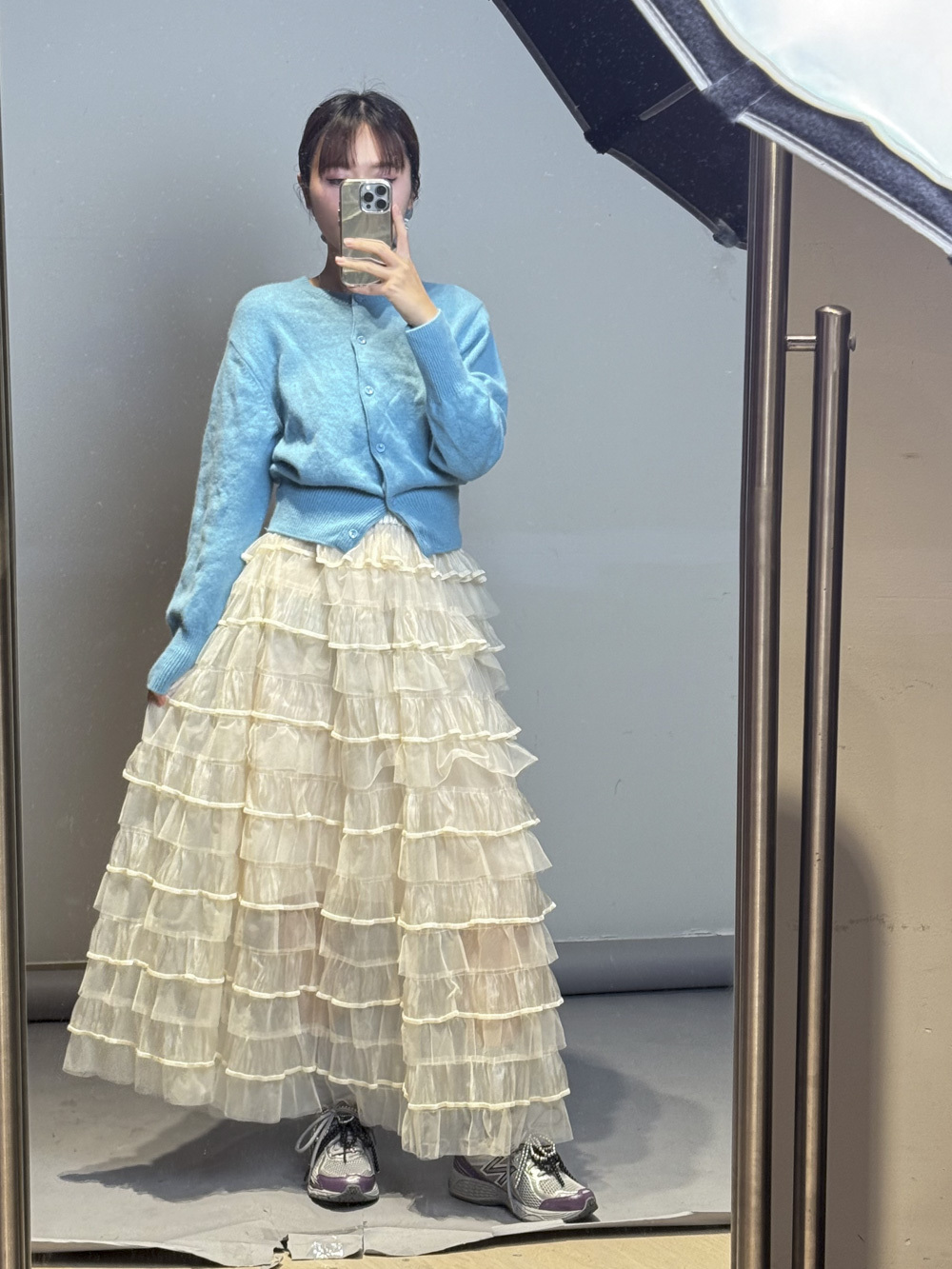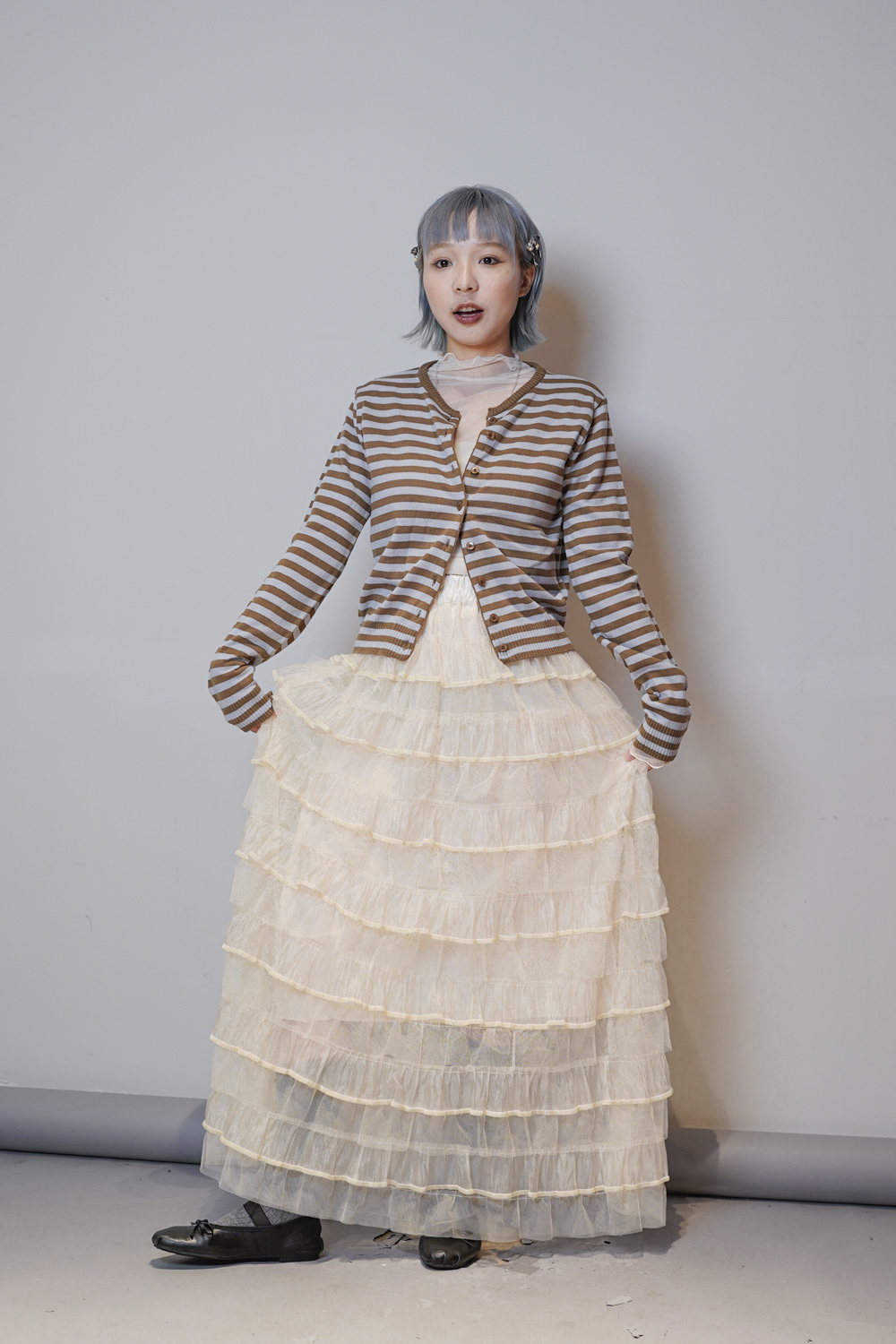 Velvet mesh blossom skirt (IVORY/ BLACK)