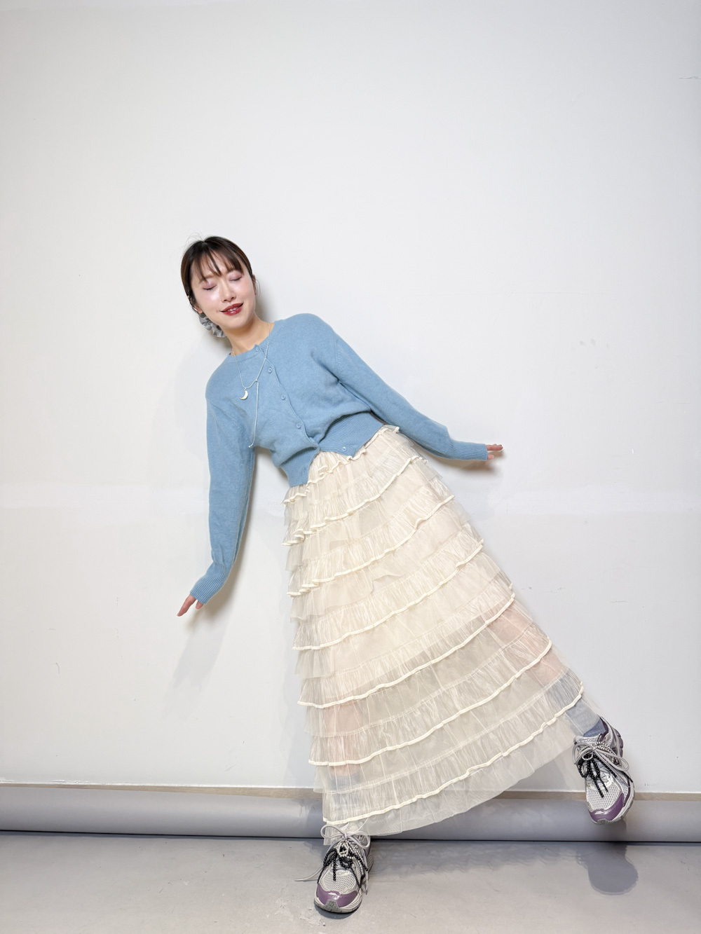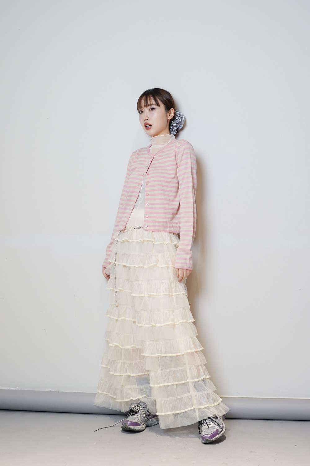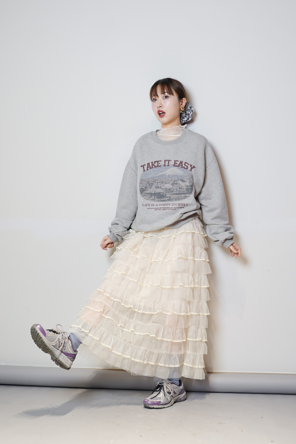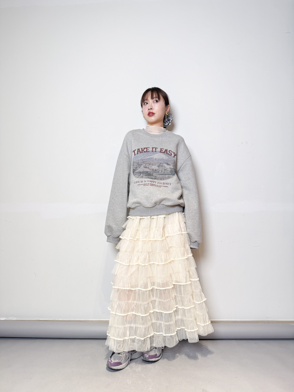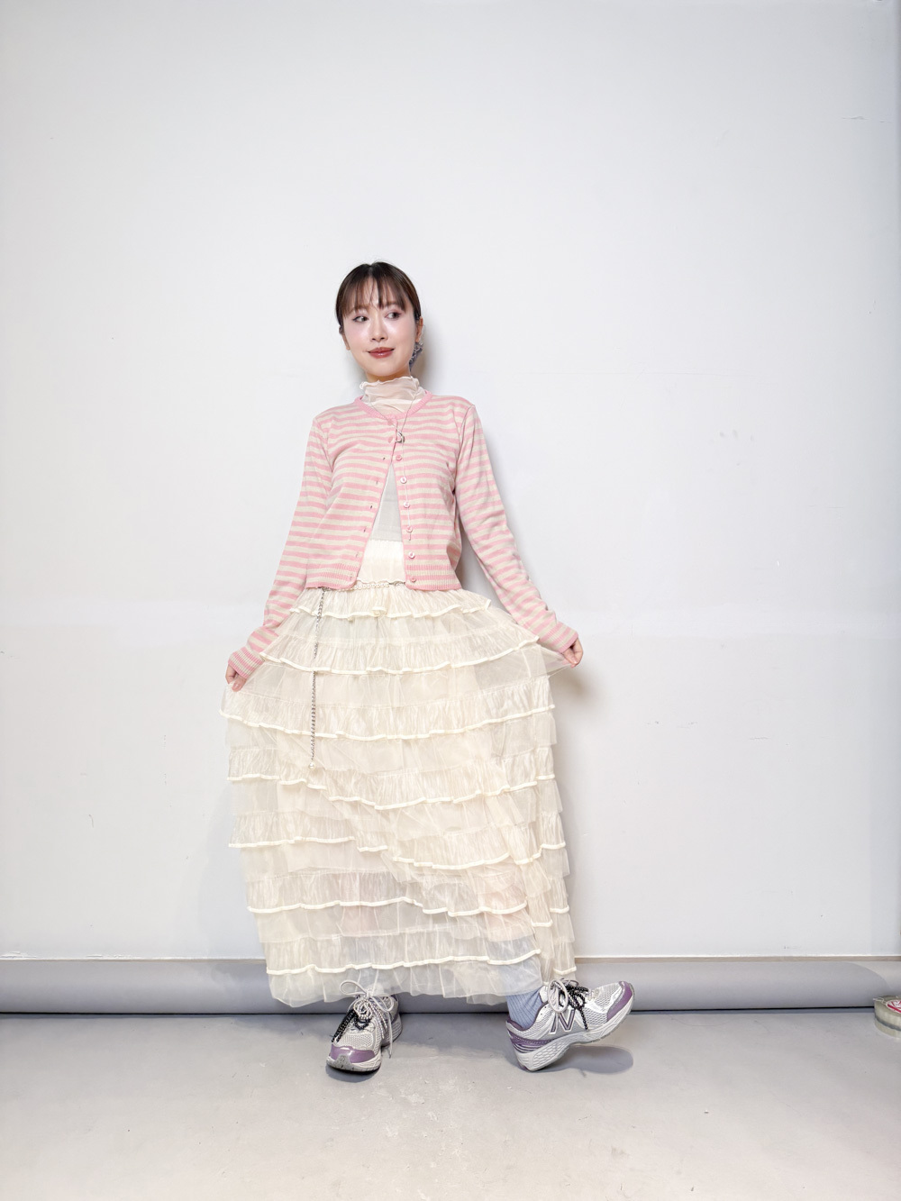 Velvet mesh blossom skirt (IVORY/ BLACK)