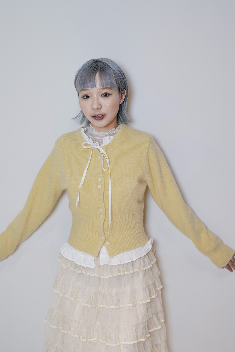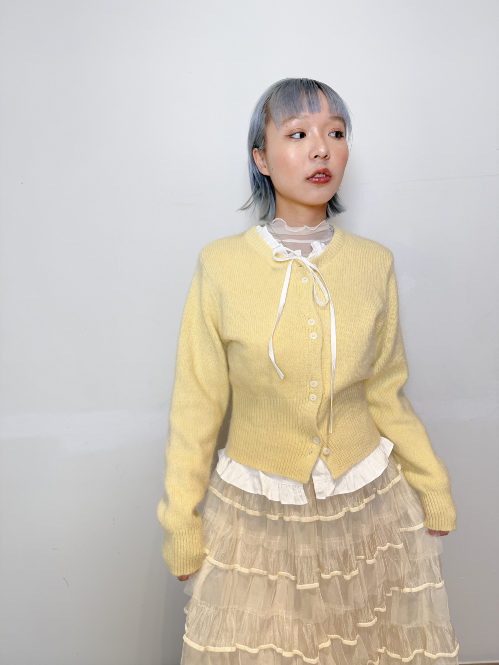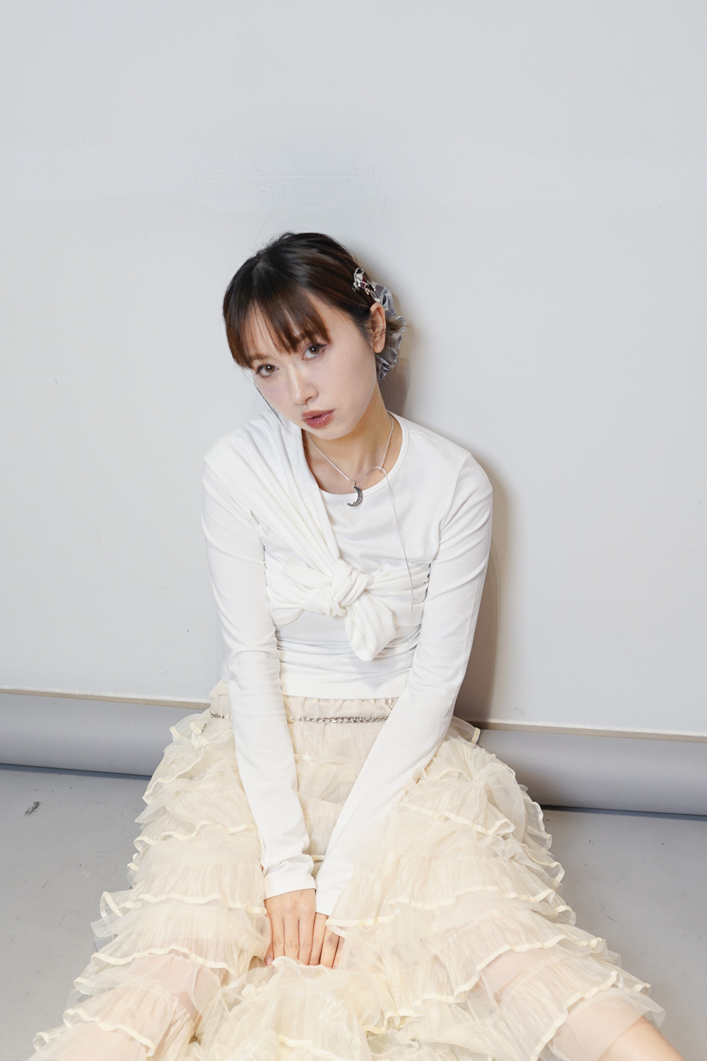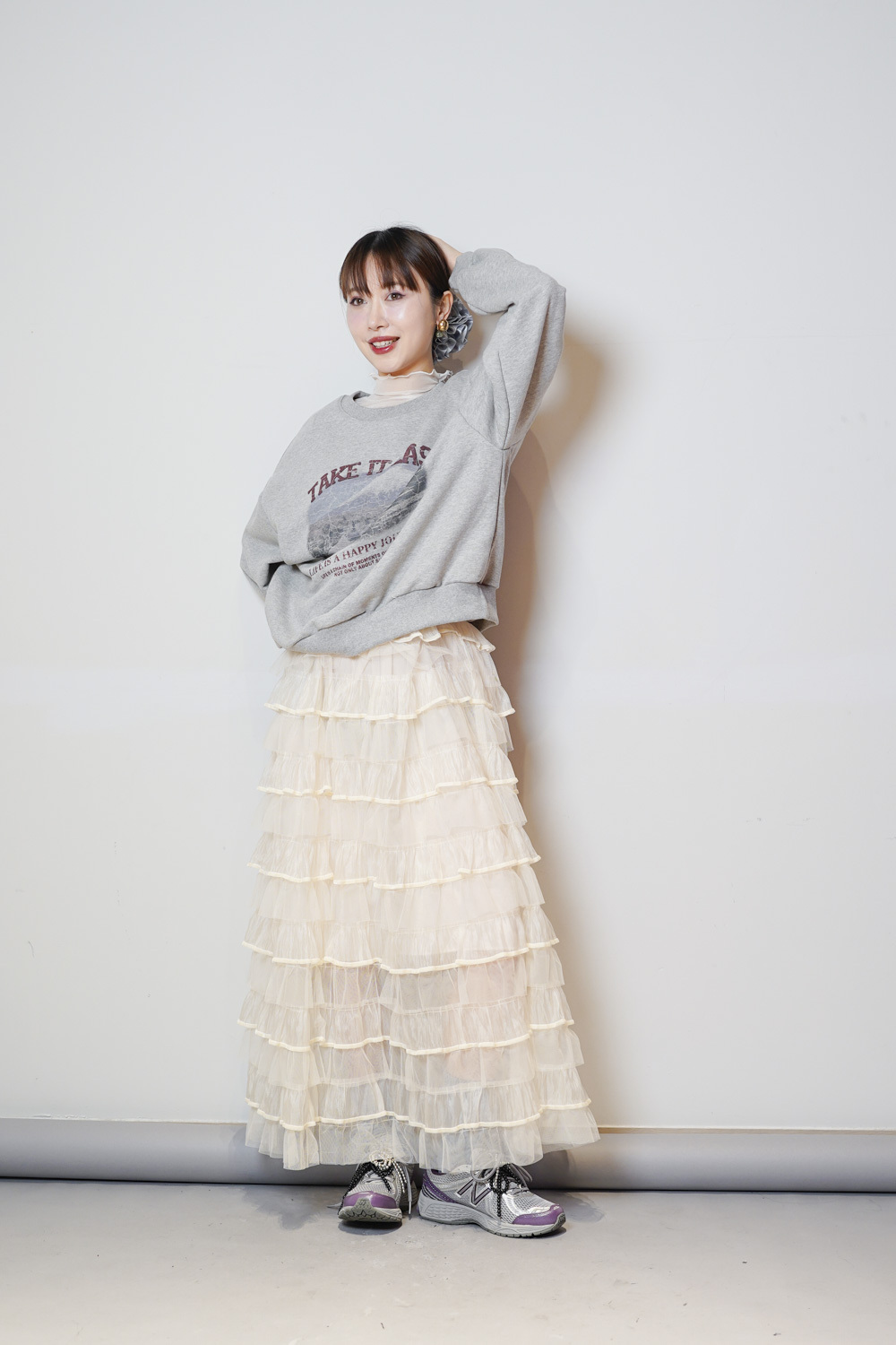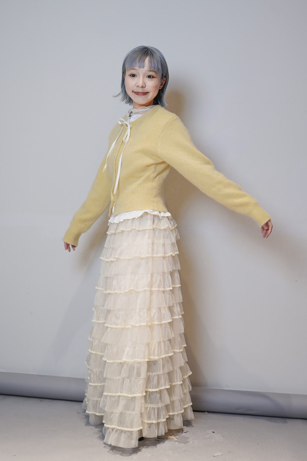 Velvet mesh blossom skirt (IVORY/ BLACK)