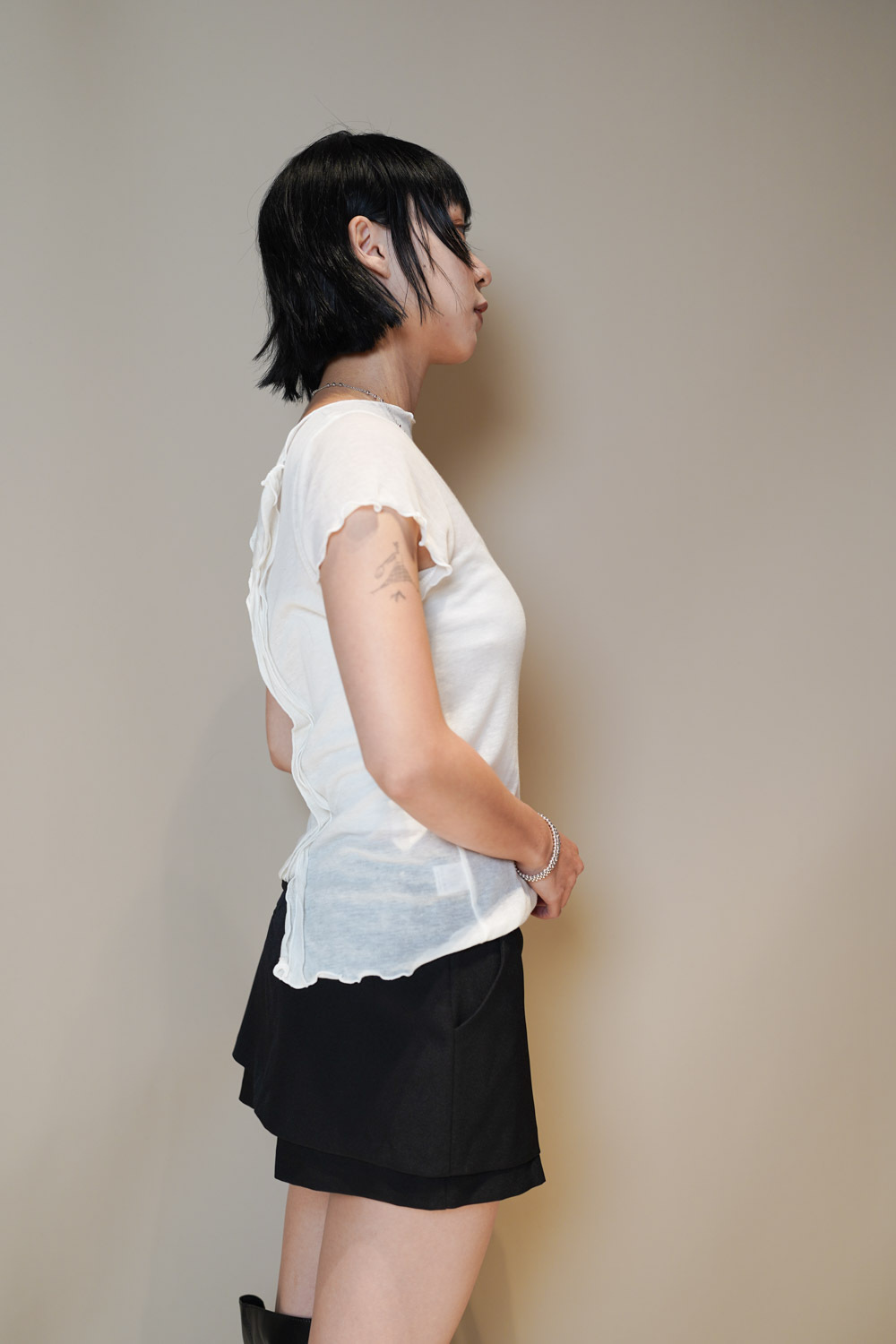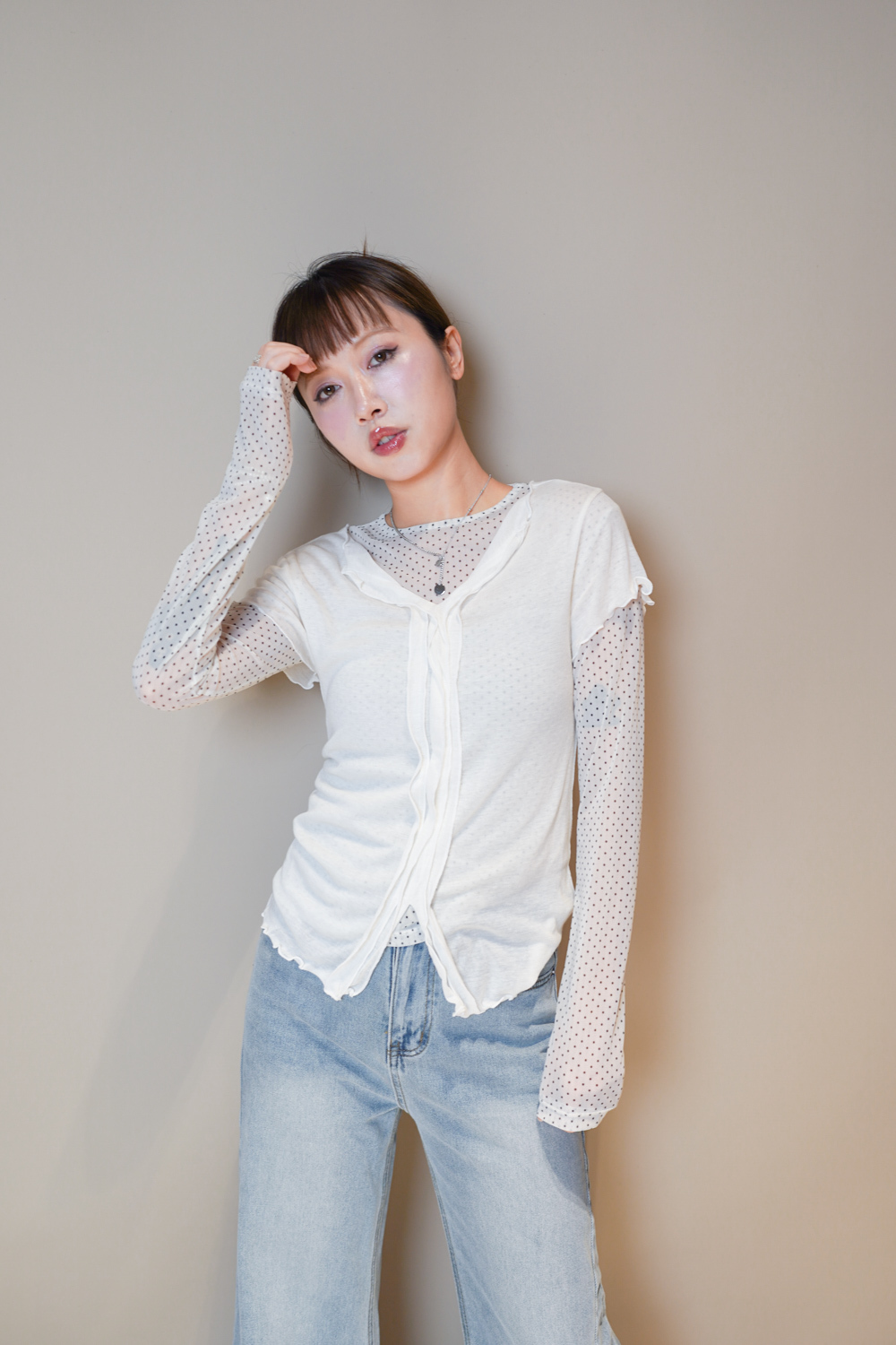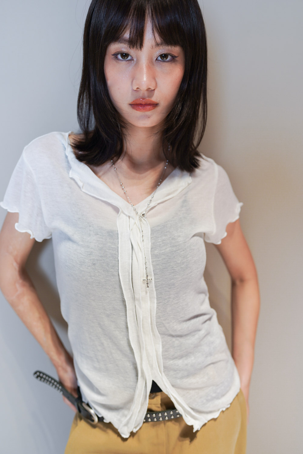 Love~ Y ruffle see through tee (WHITE/BLACK)