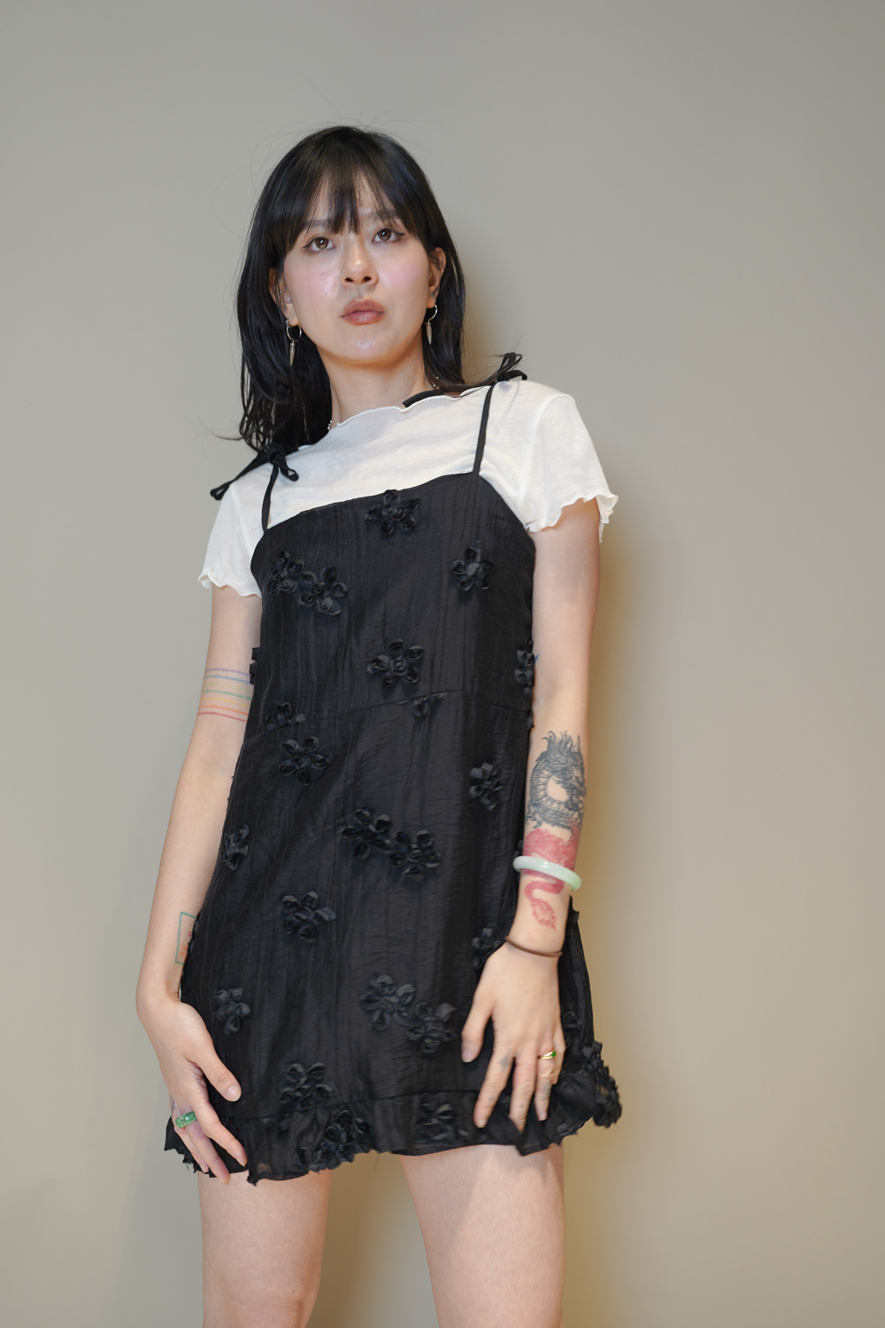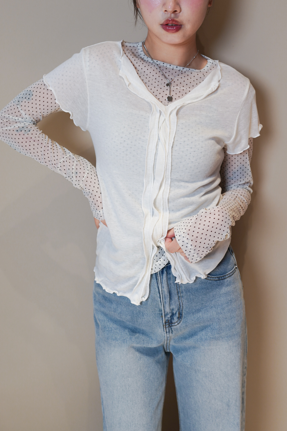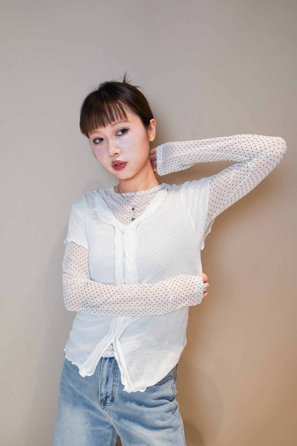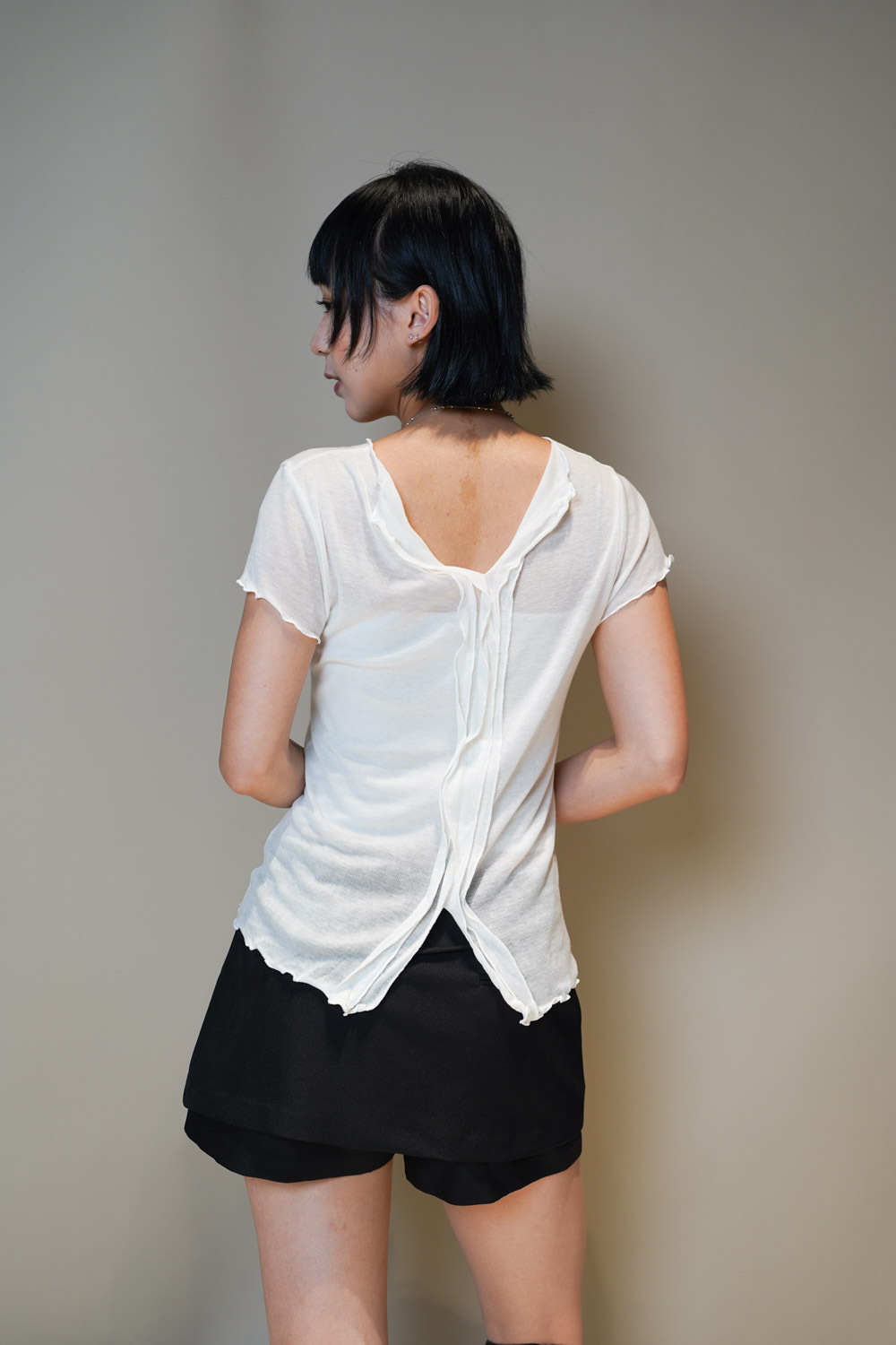 Love~ Y ruffle see through tee (WHITE/BLACK)