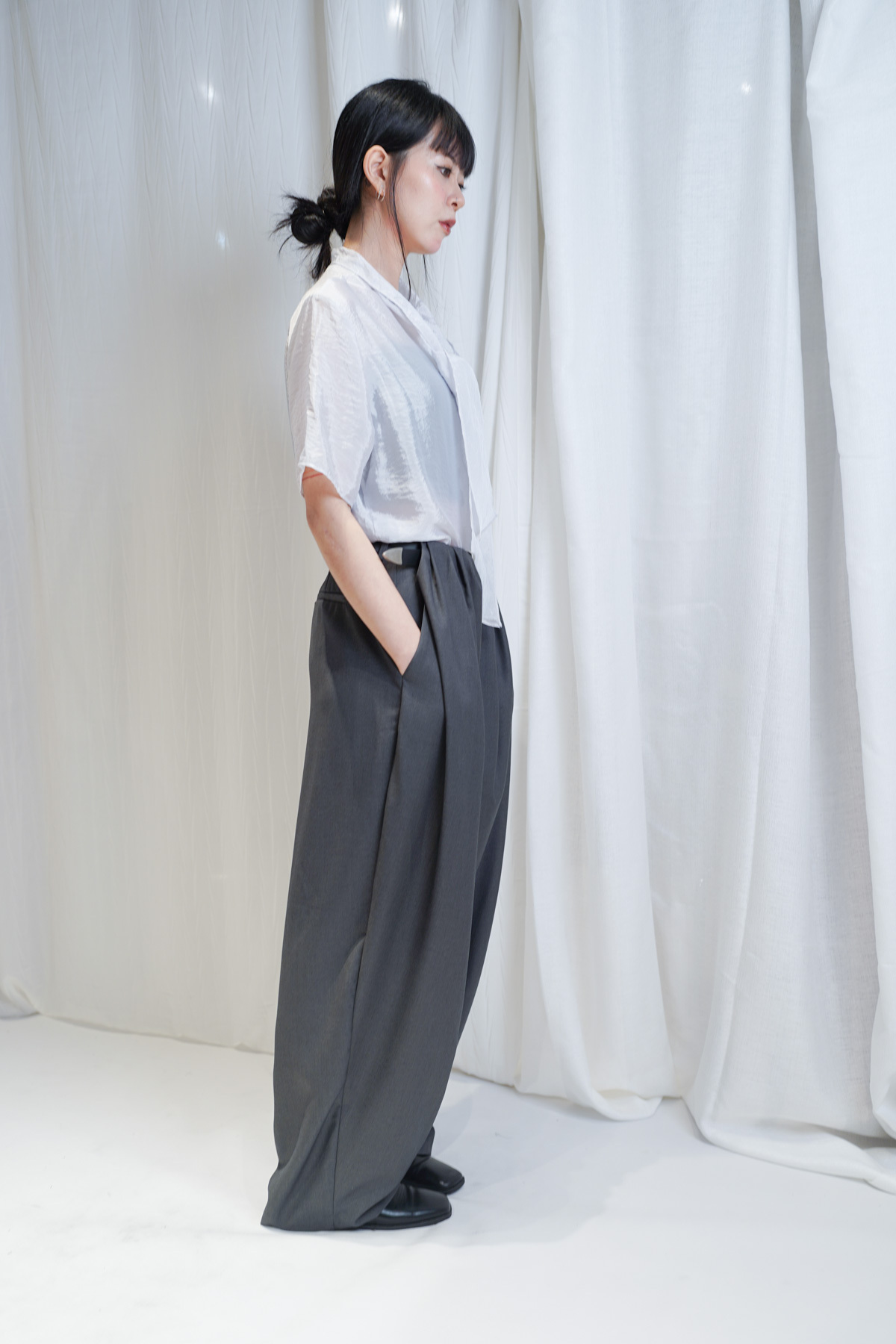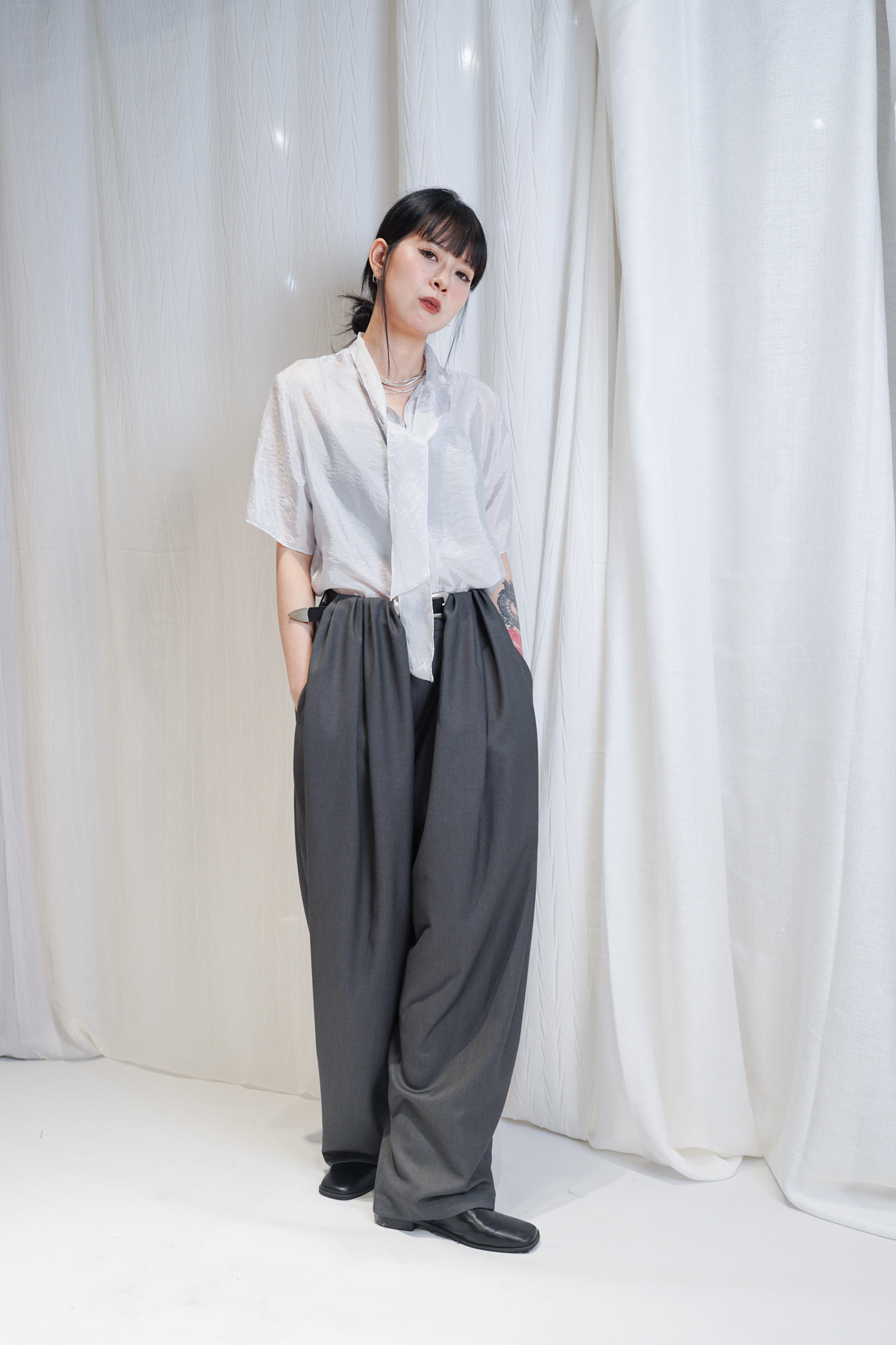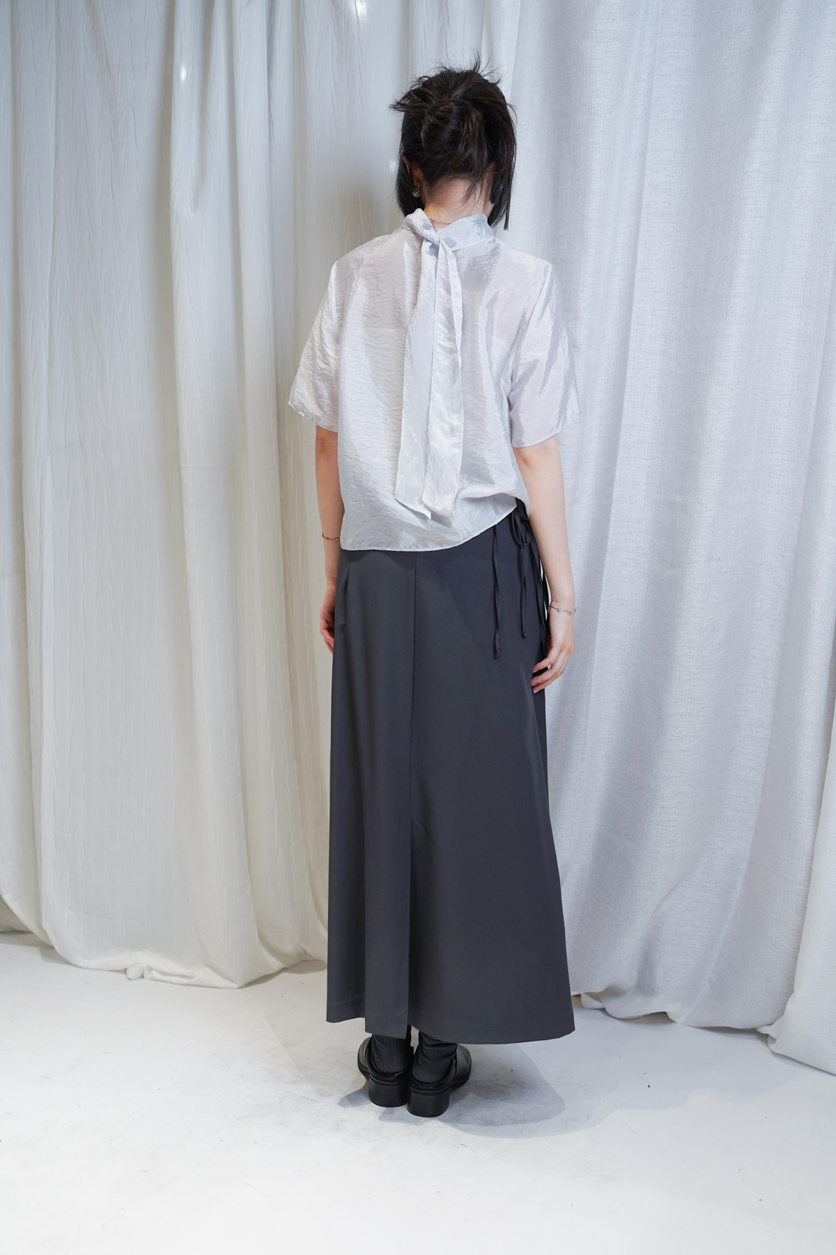 /優雅立領 LOOK:將立領著喺前面 搭配 Wrap Skirt-Pants 展現俐落嘅都會美學