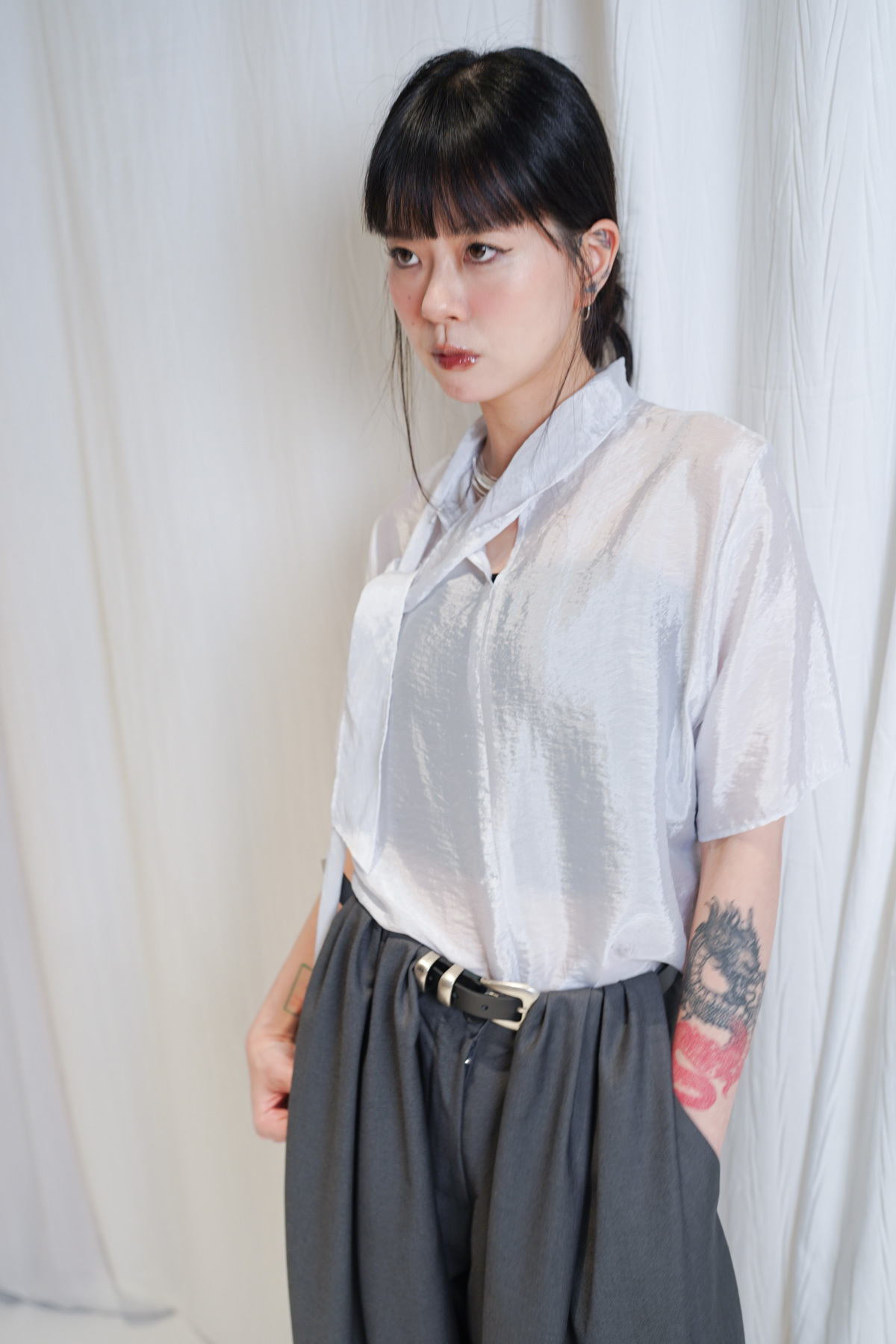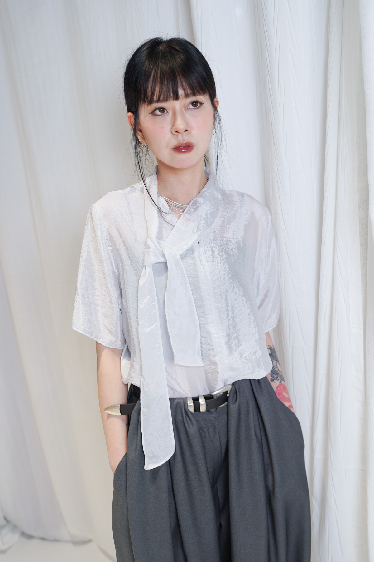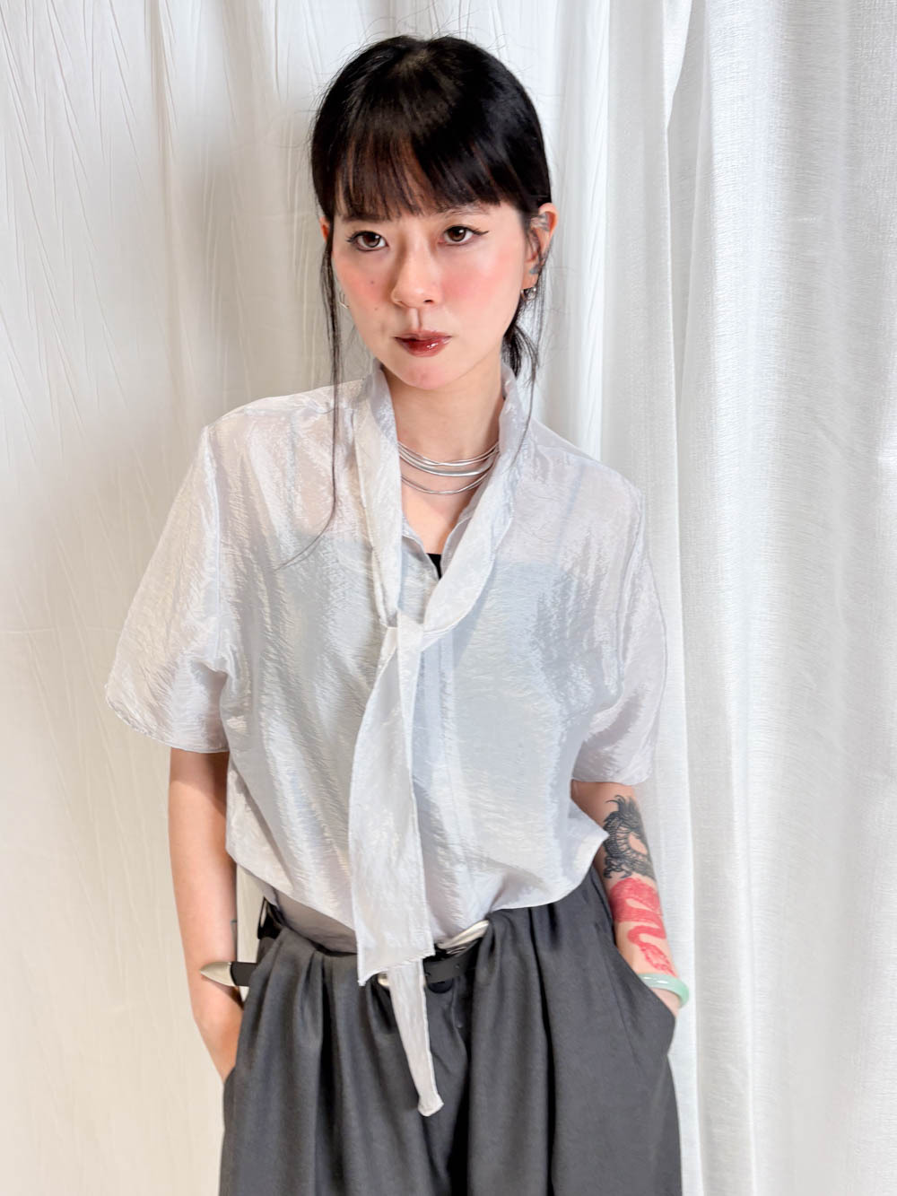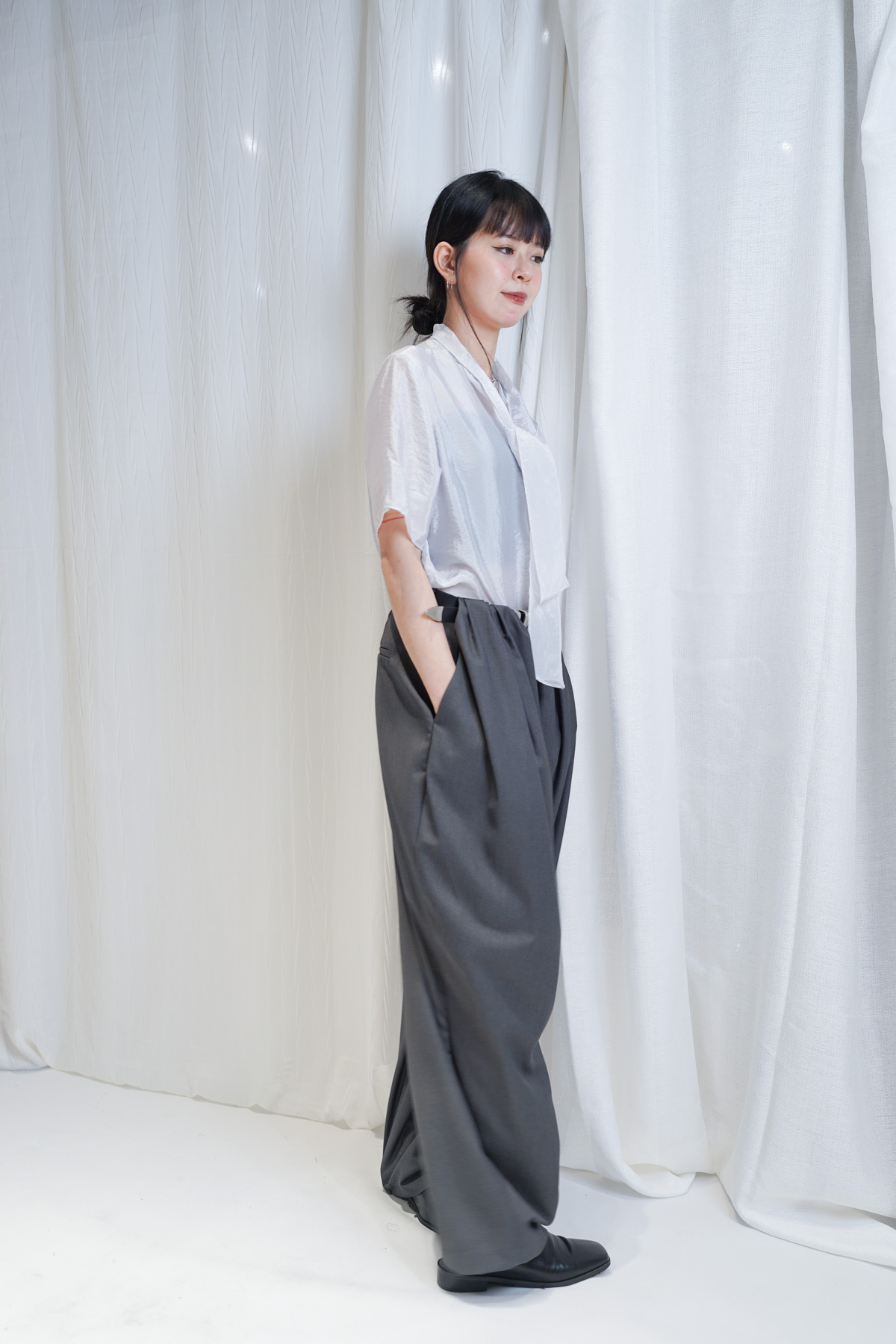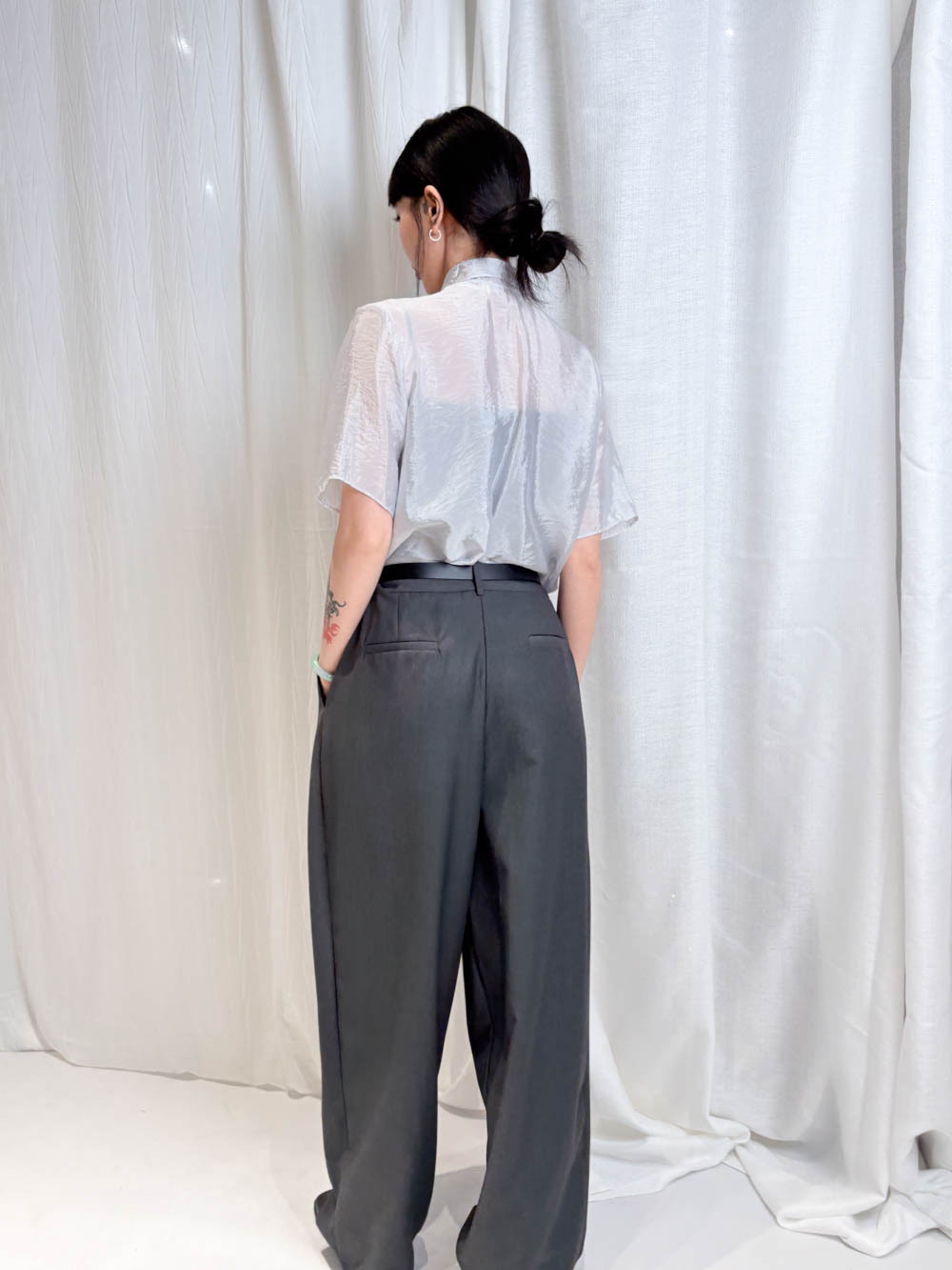 /生活感配搭:襯一條簡單嘅黑色西褲 或 Light Grey Curved Jeans 讓光澤感成為穿搭焦點