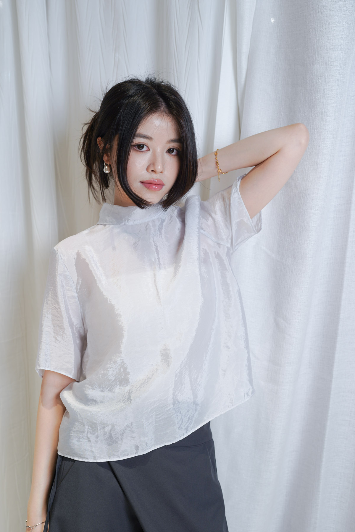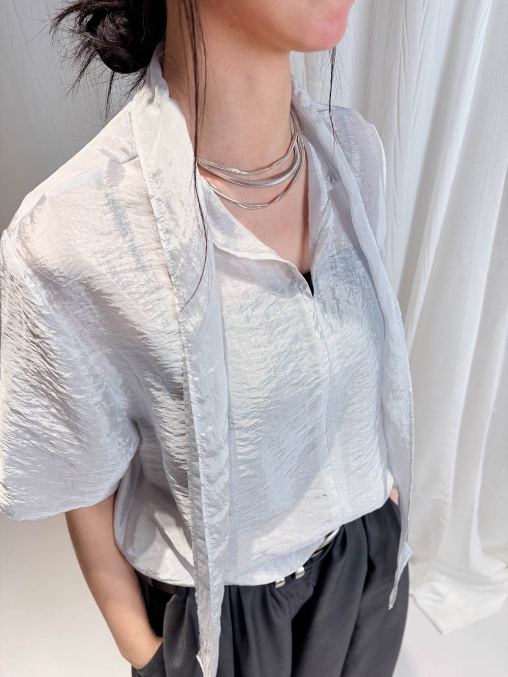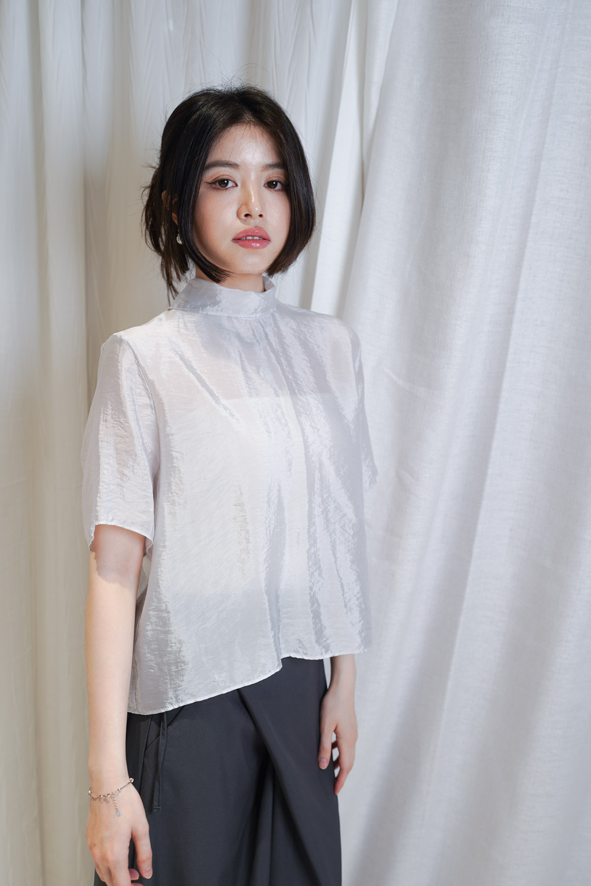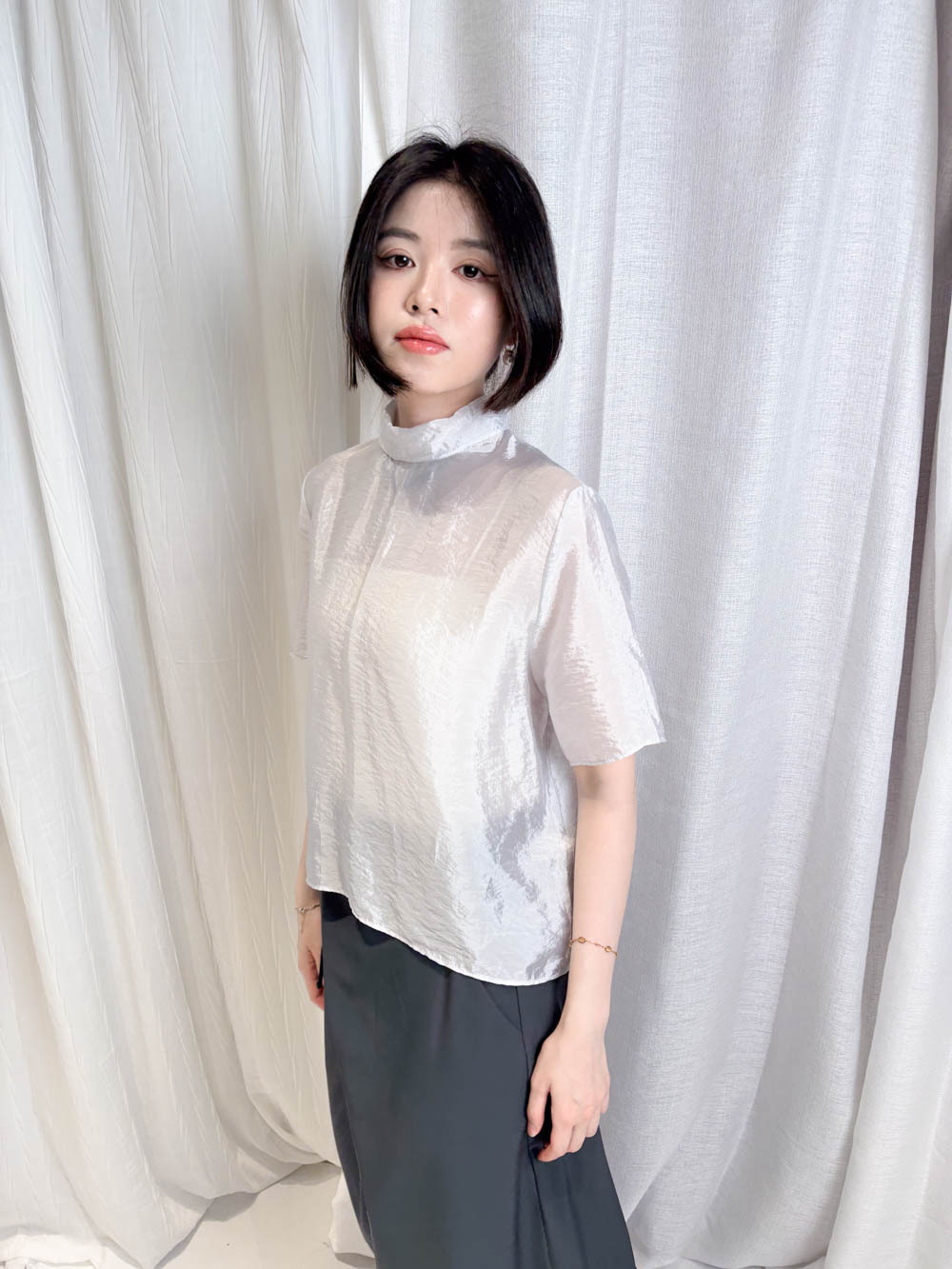 珍珠藍光澤嘅微透布料非常高級 極簡奢華