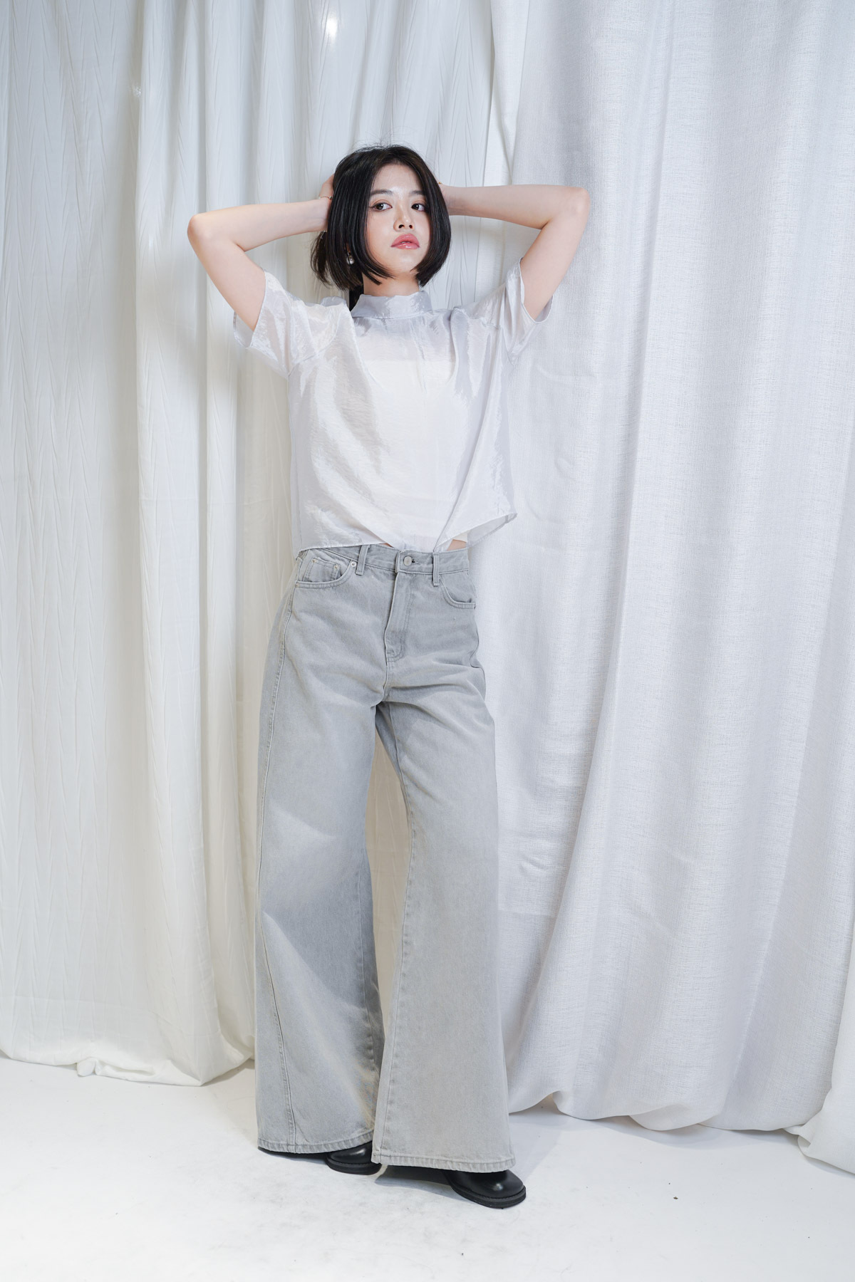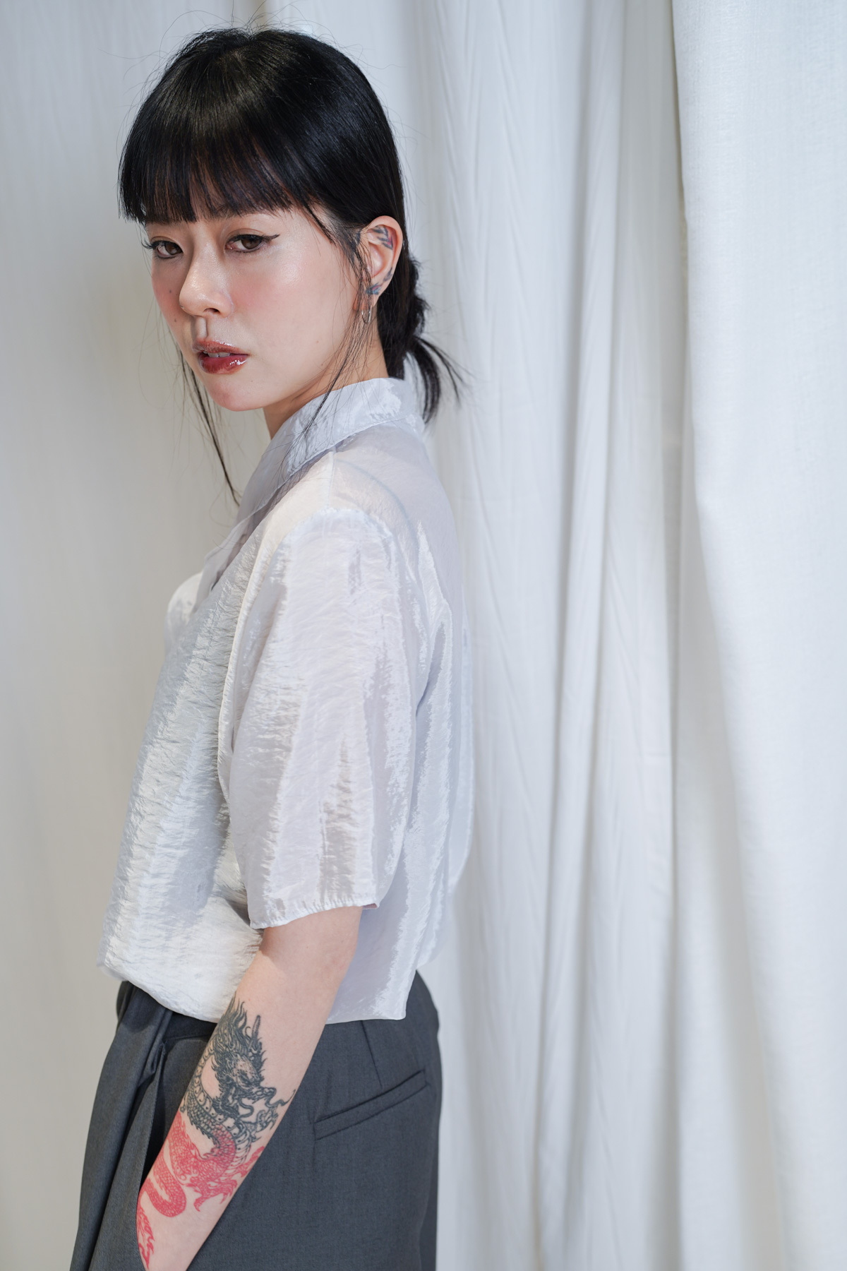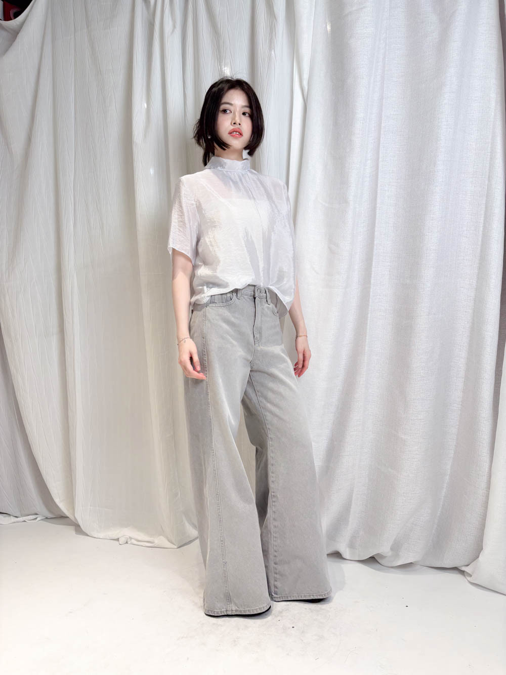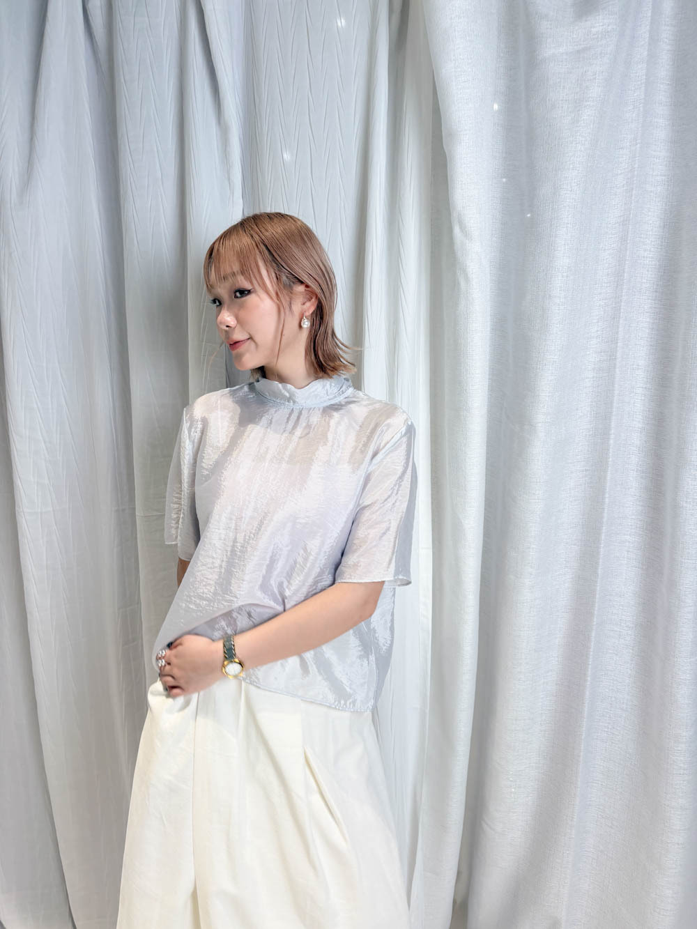 珍珠藍光澤嘅微透布料非常高級 極簡奢華