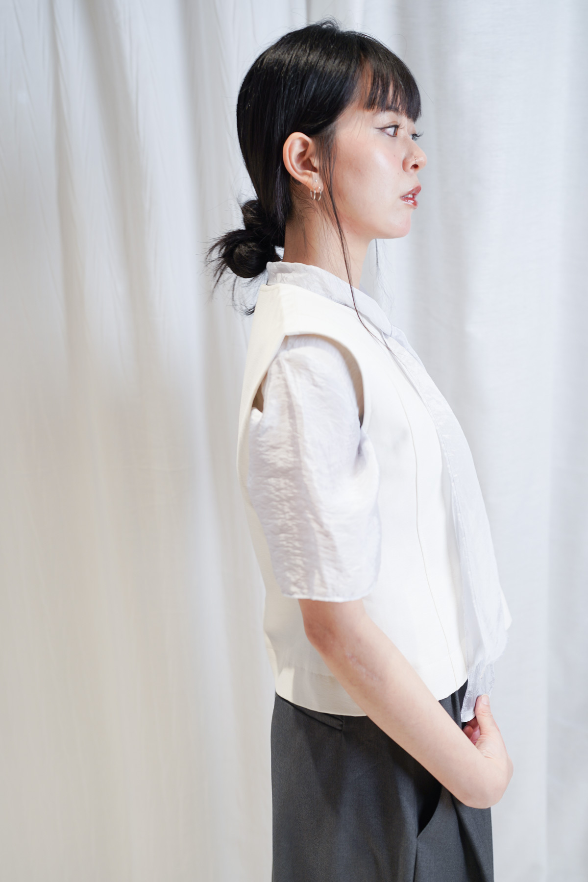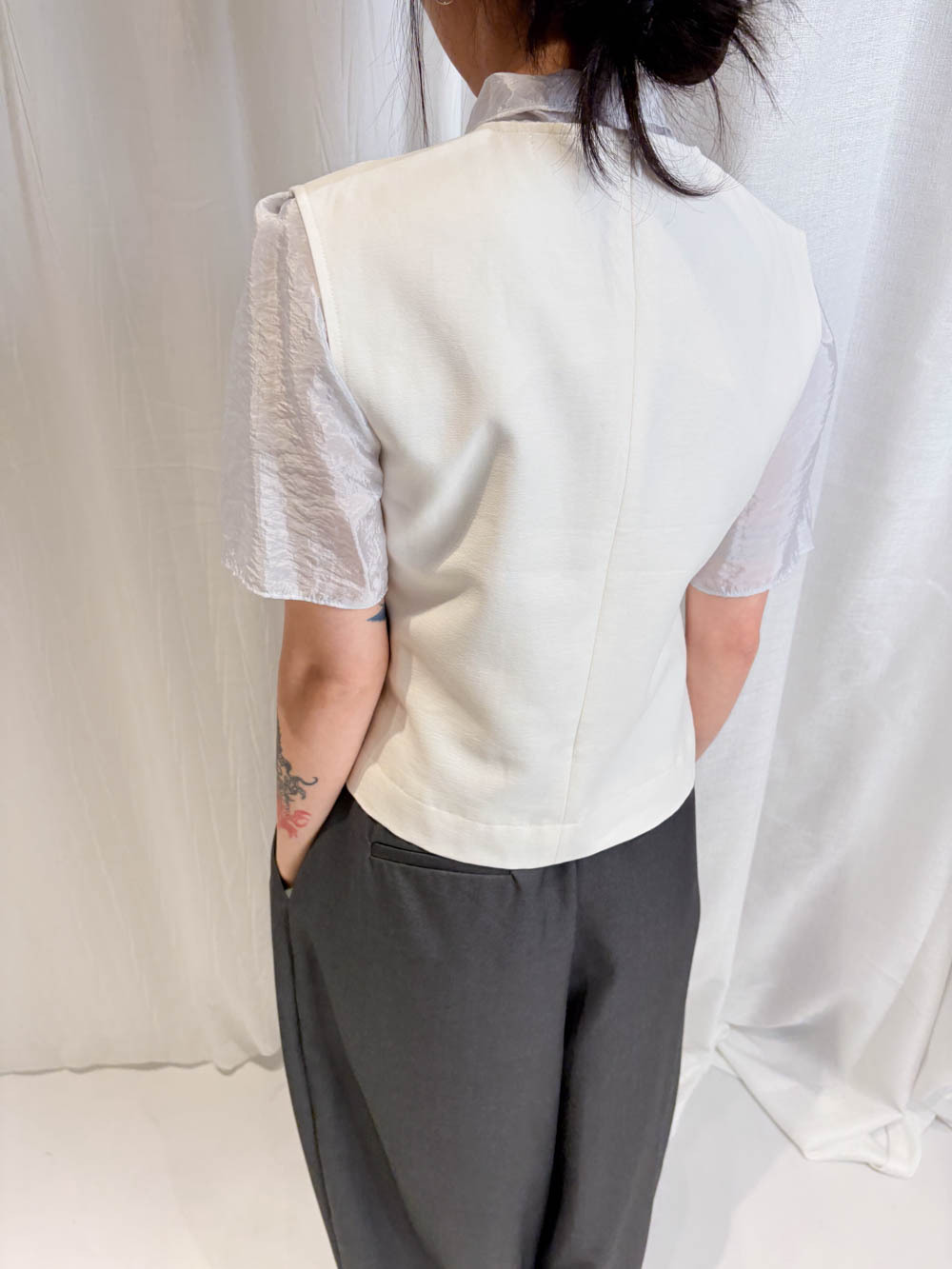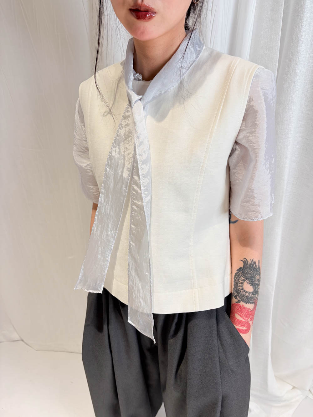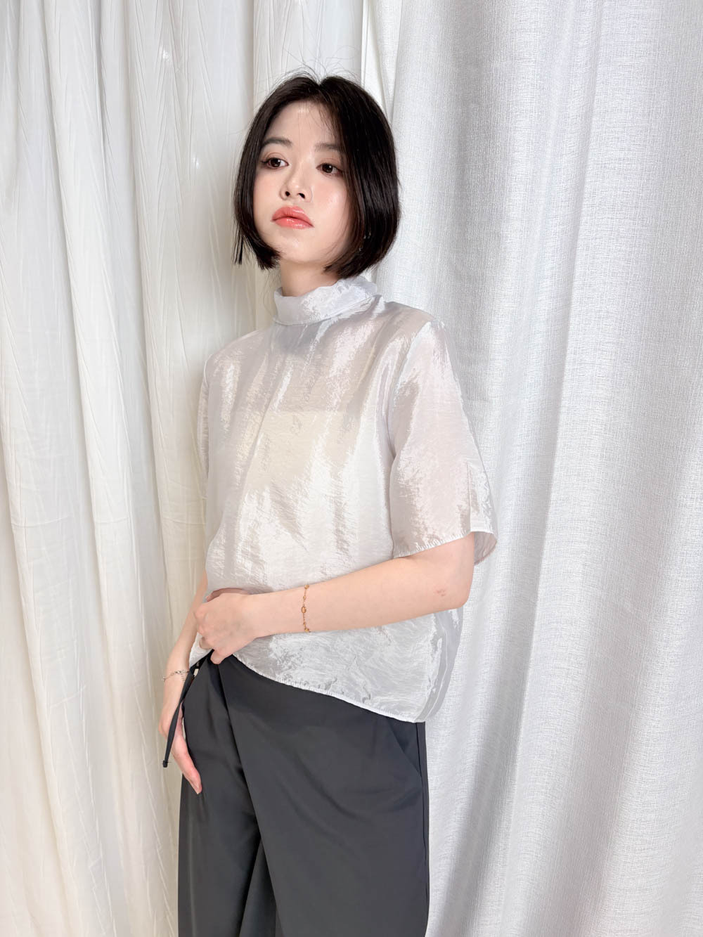 /微透而不露 精緻嘅透膚度恰到好處 內搭一件簡單背心 就能營造出高級嘅層次感