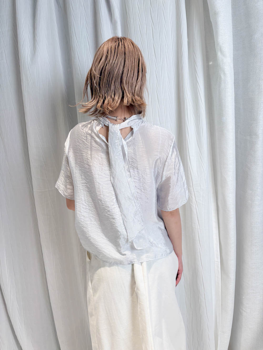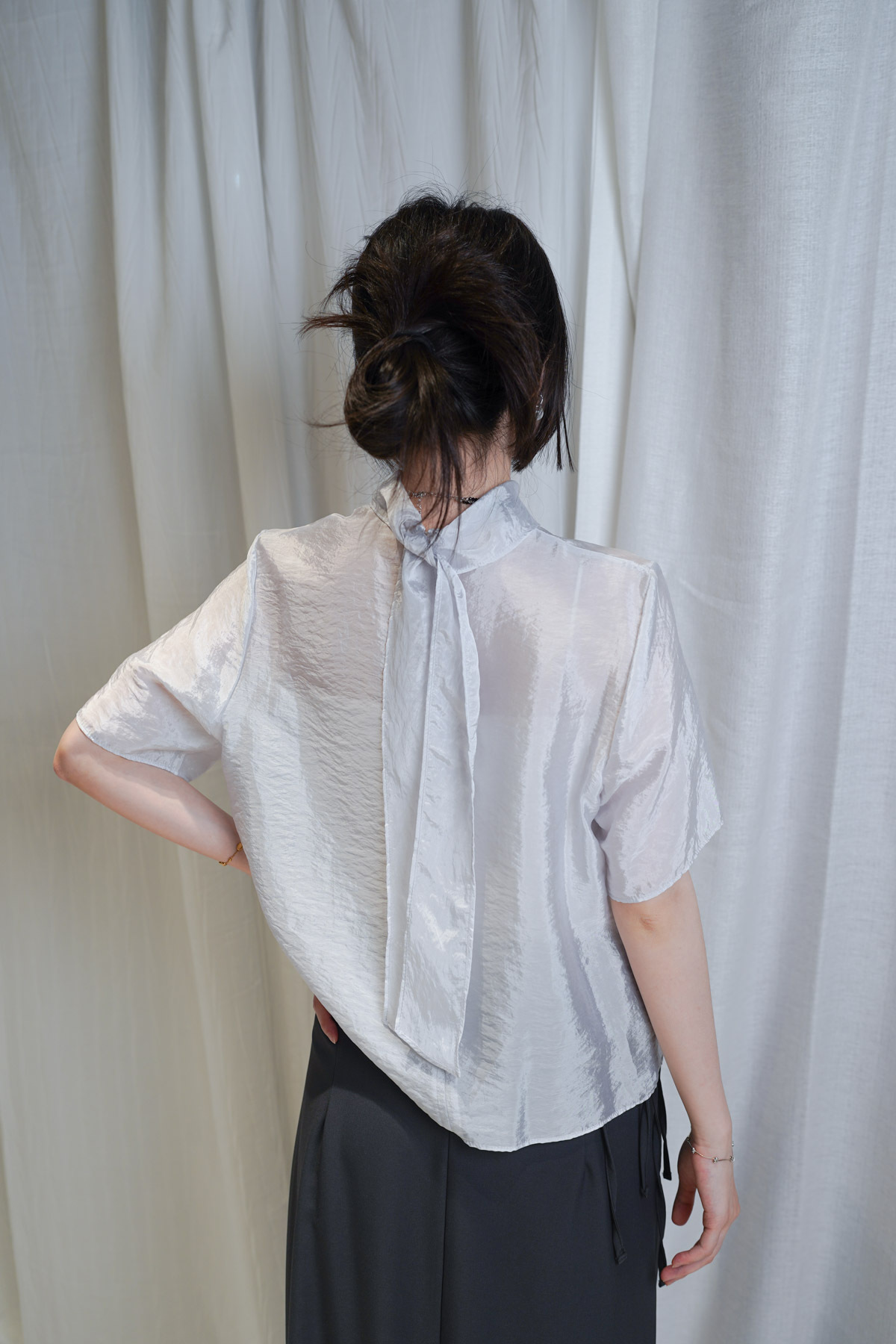 /綁帶細節:可以自由調節頸部鬆緊 垂墜嘅帶子喺背後或前方都能增加動態美