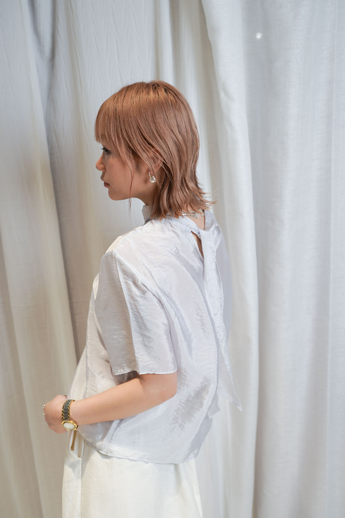 /珠光布料 襯托膚色 展現出一種原始而純粹嘅質感美