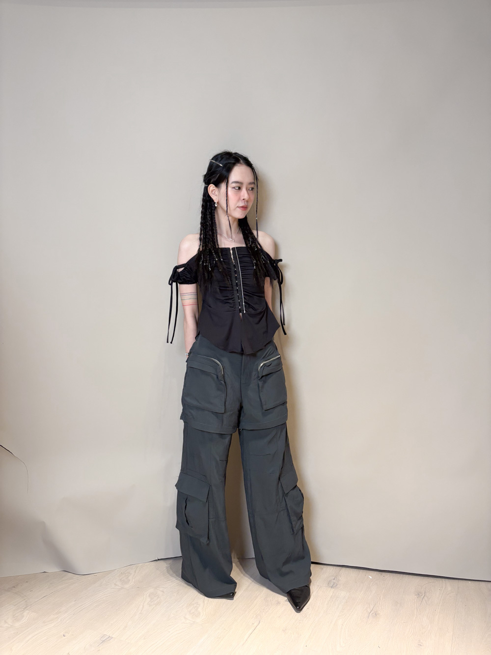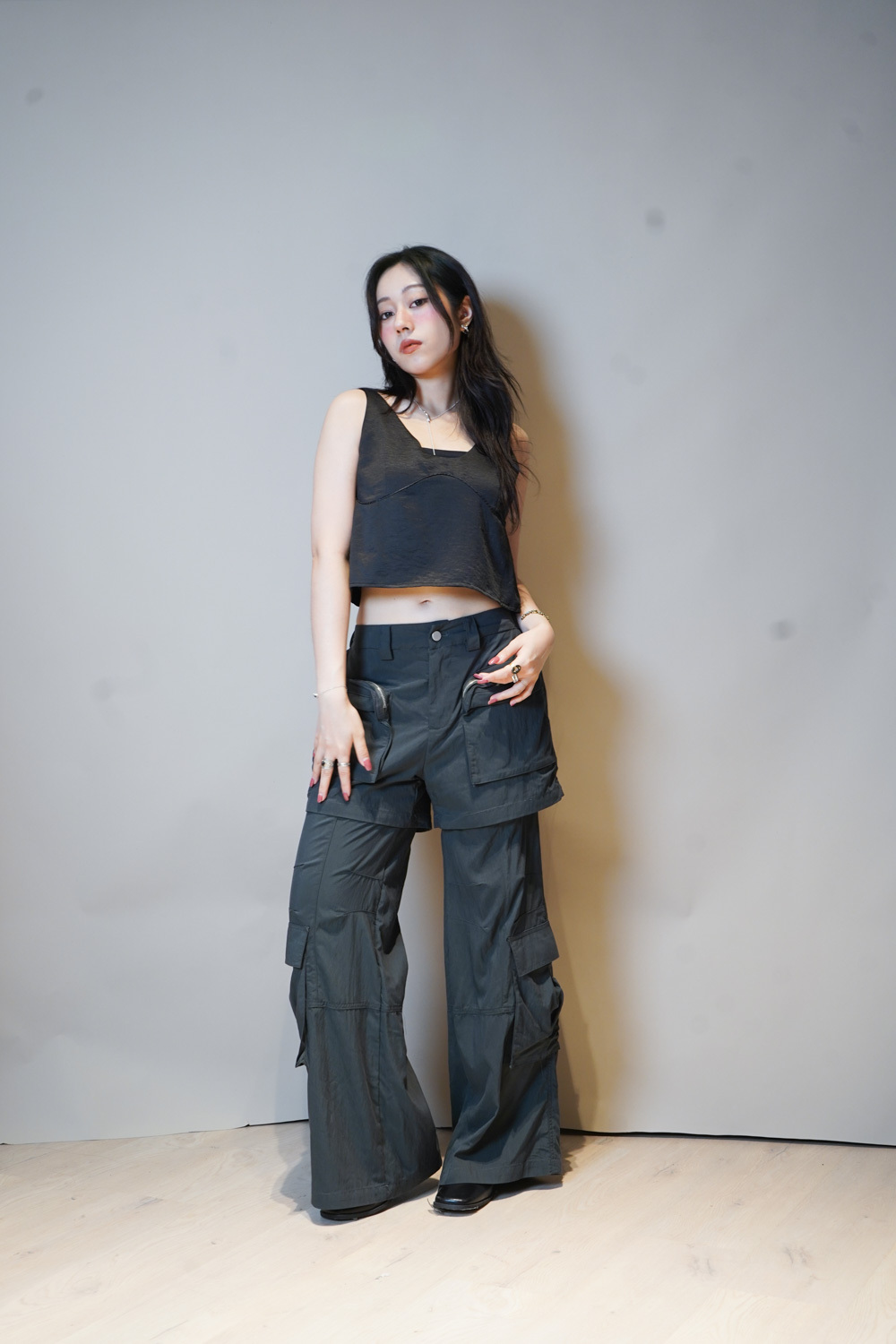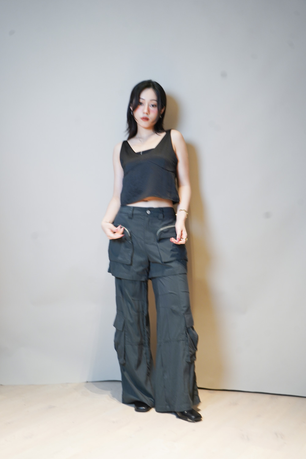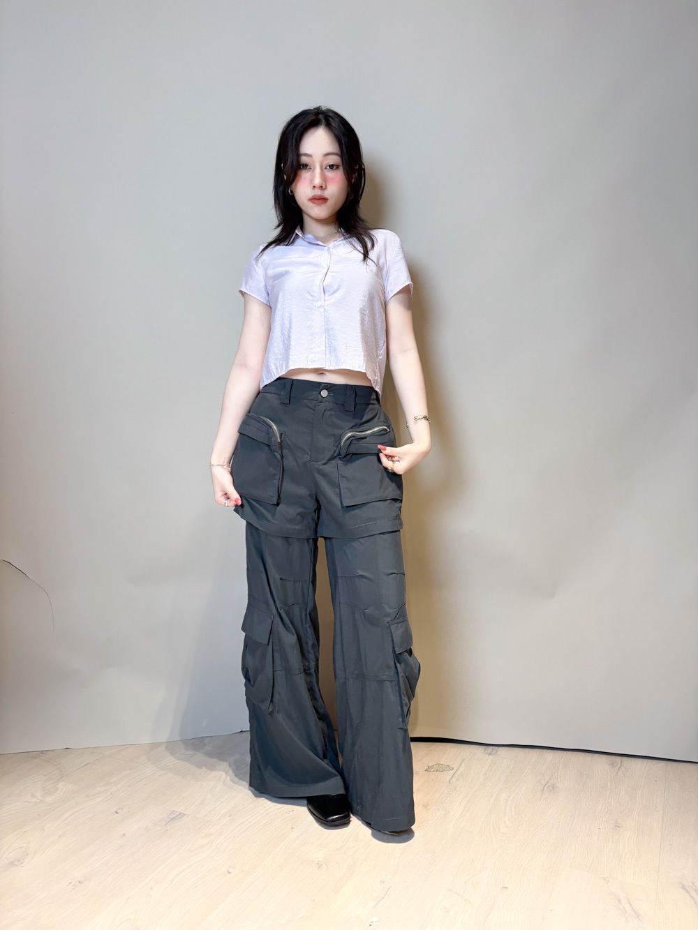Love~2 ways straight leg cargo pants with 3D pockets - Free size