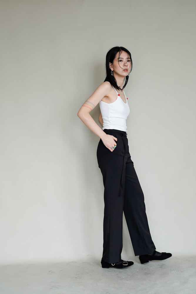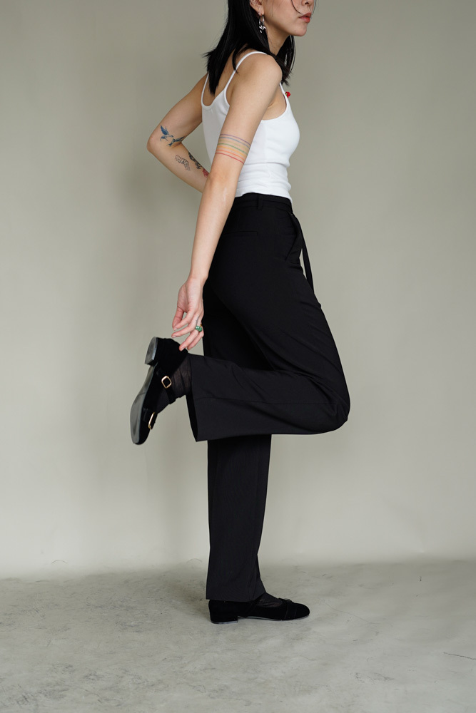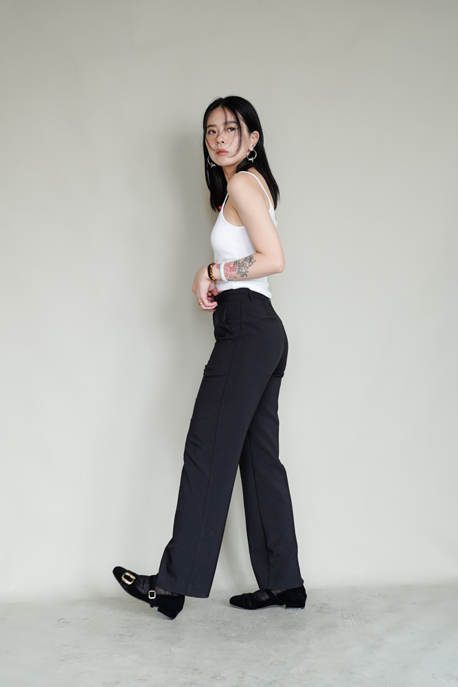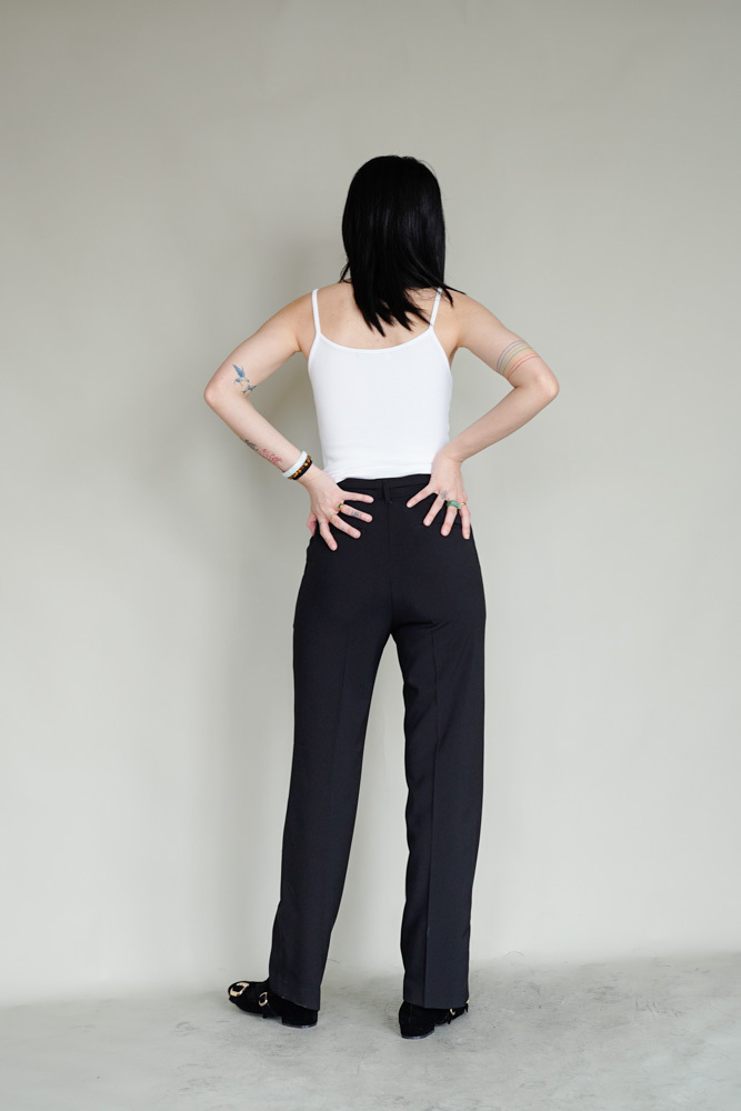 S -Waist: 64cm (25”) / Hip: 86 cm (34”) / Length: 100cm / Rise: 30cm / Thigh Width: 25cm / Hem:21cm