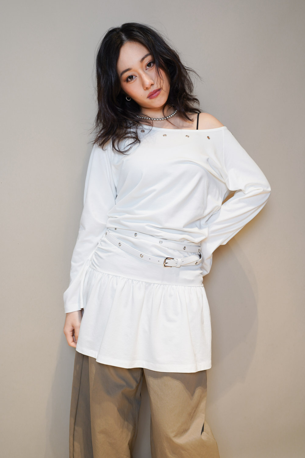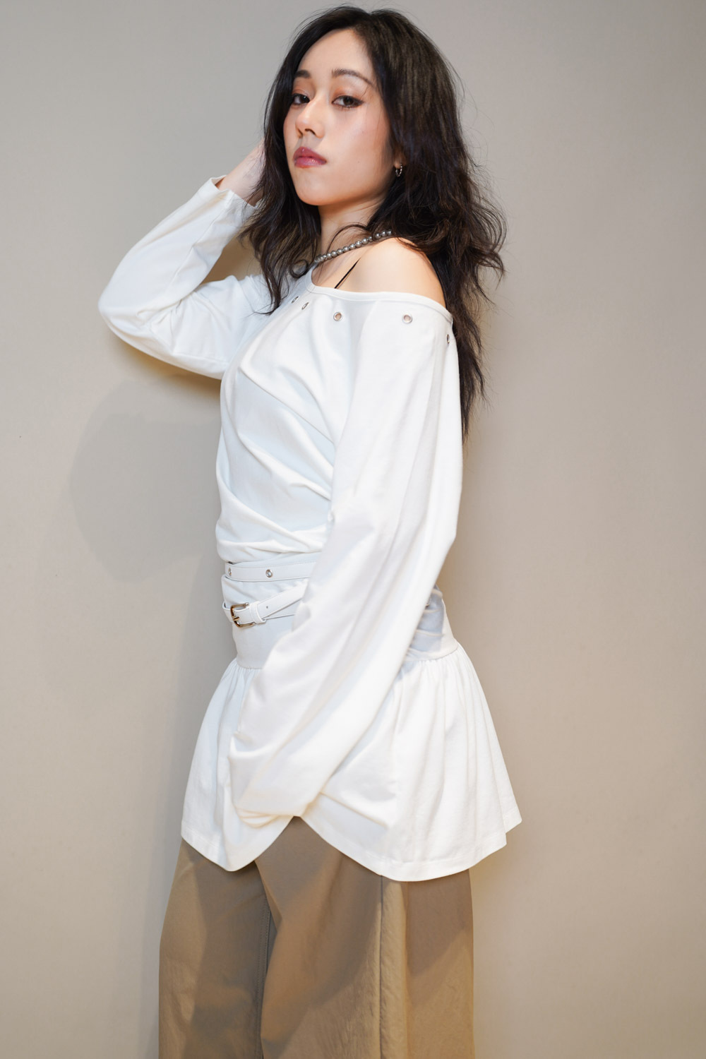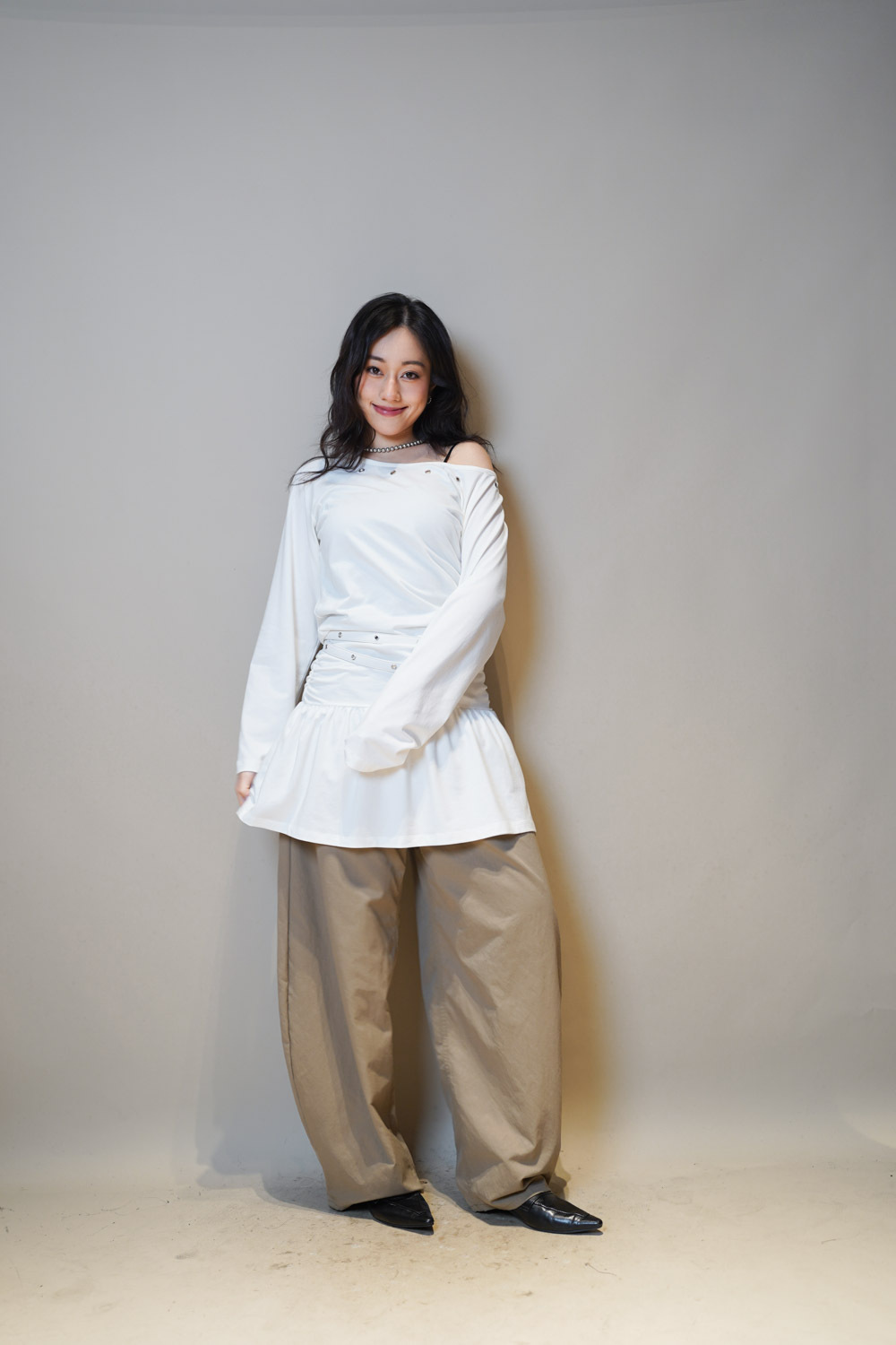 腰間皺摺設計 修飾小腹線條/