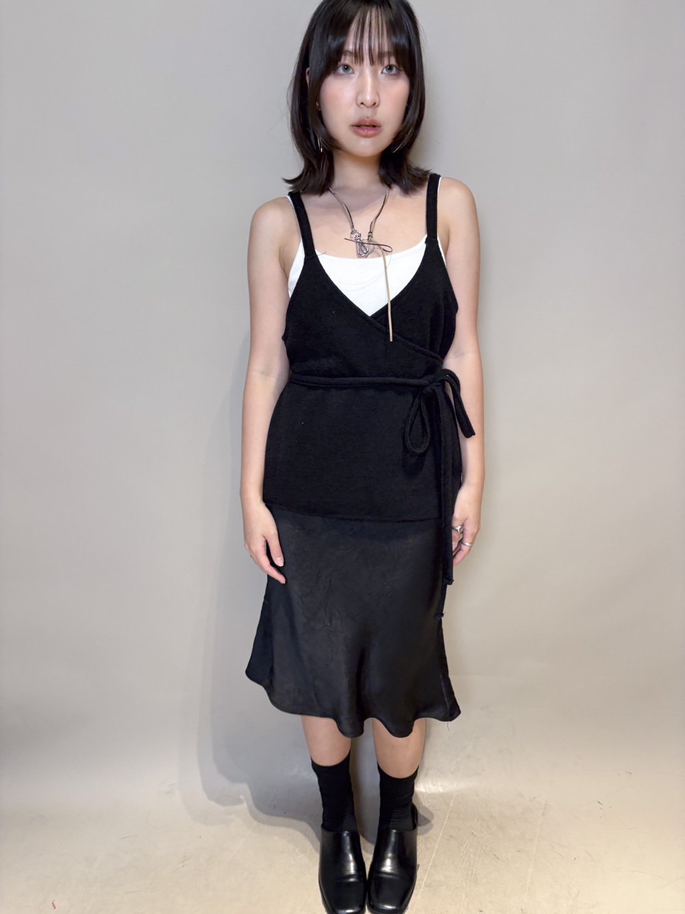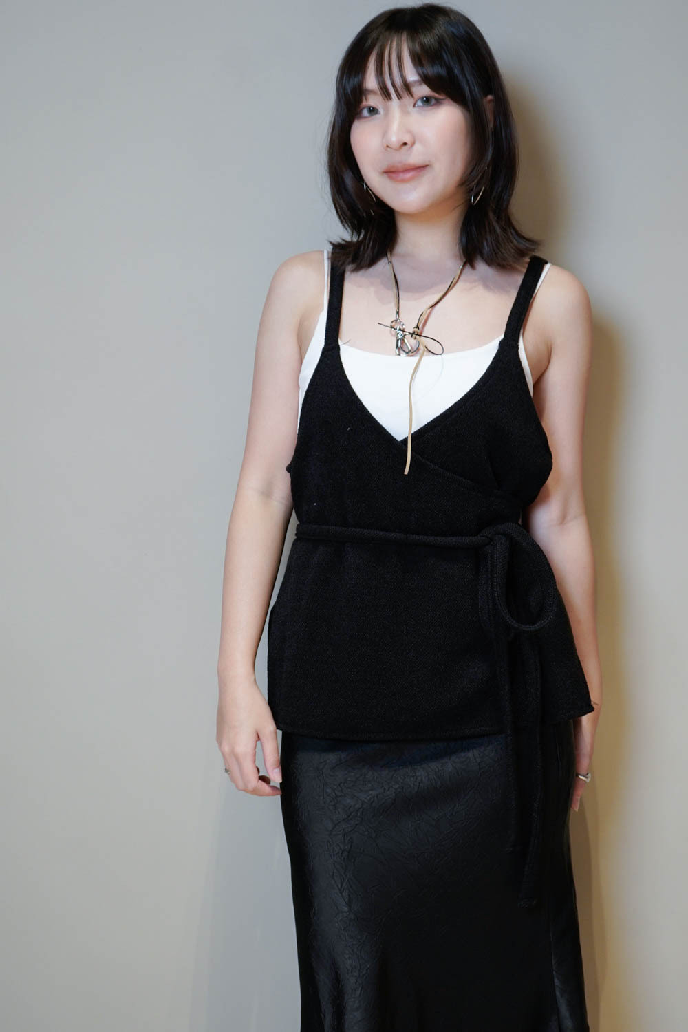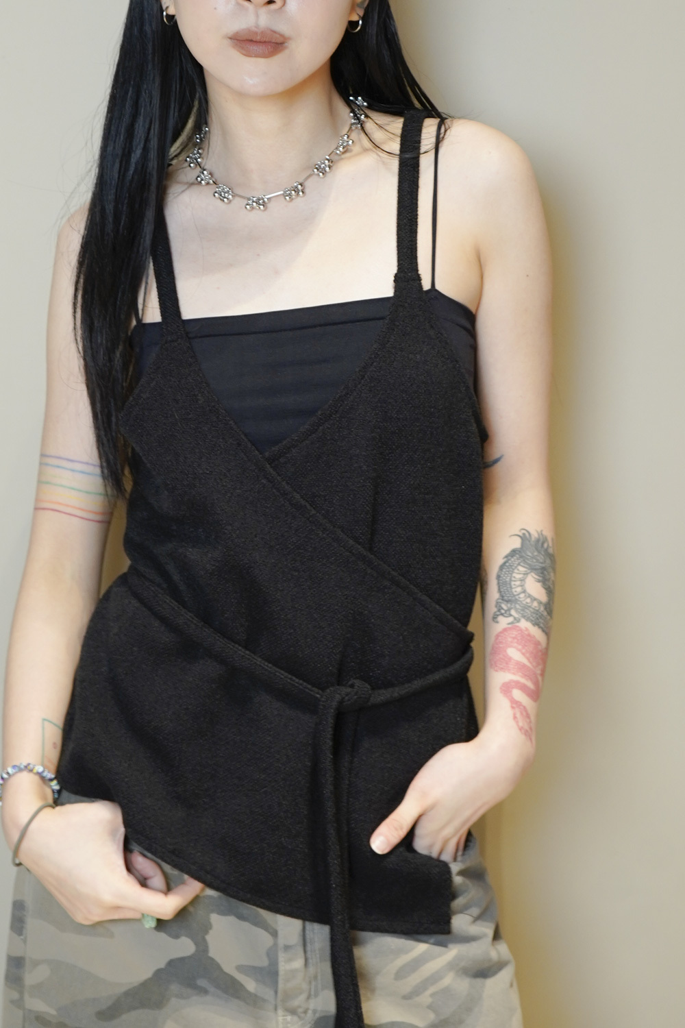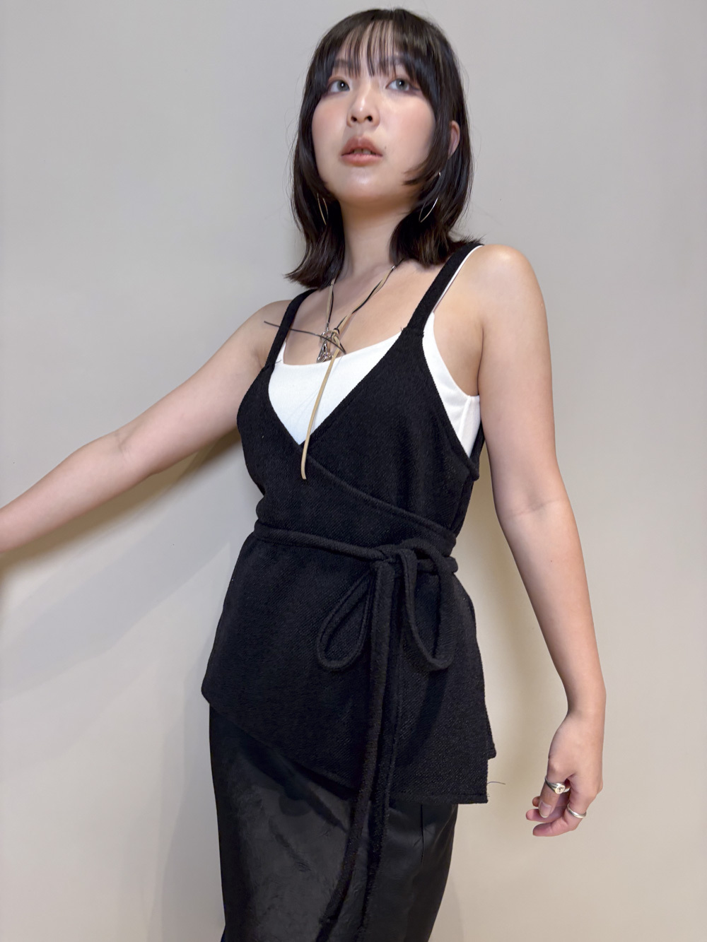 Cross wrapping long vest (GREY/BLACK)
