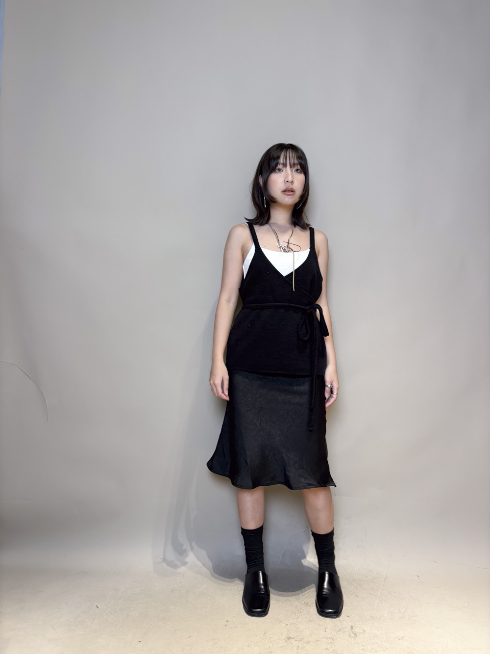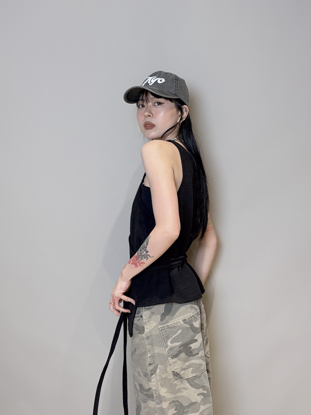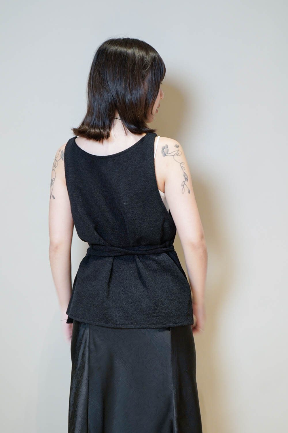 Cross wrapping long vest (GREY/BLACK)