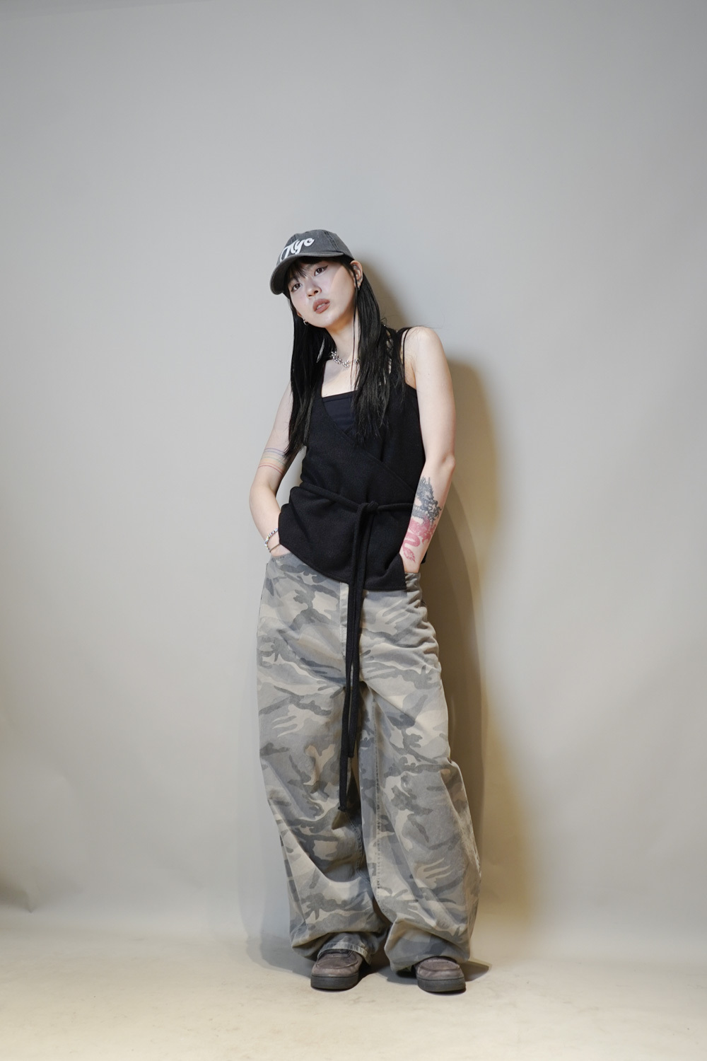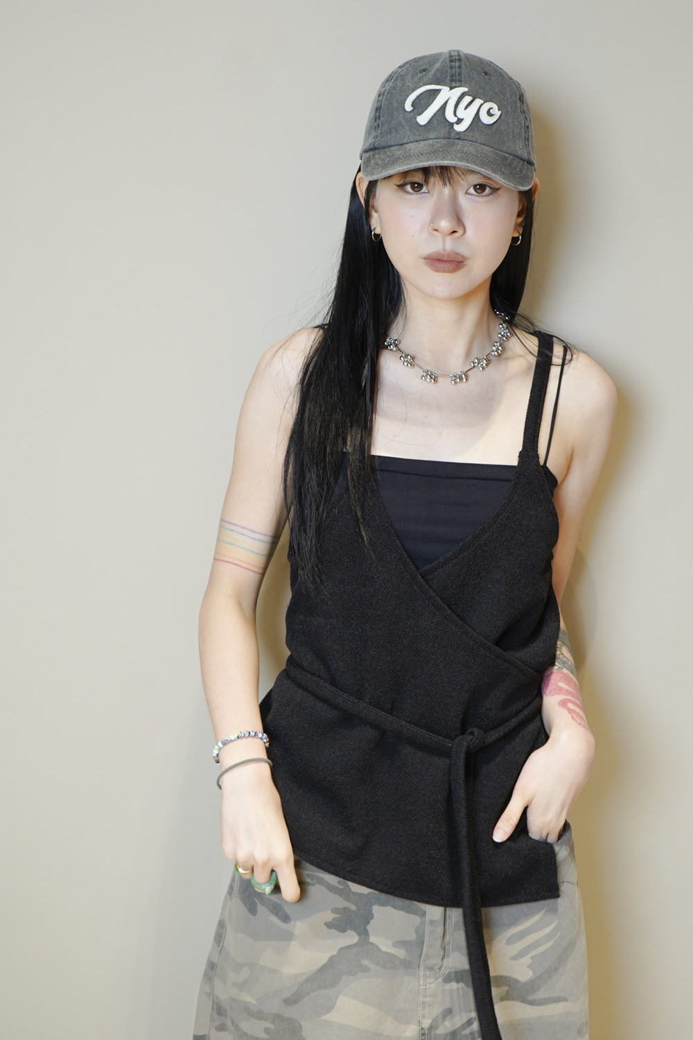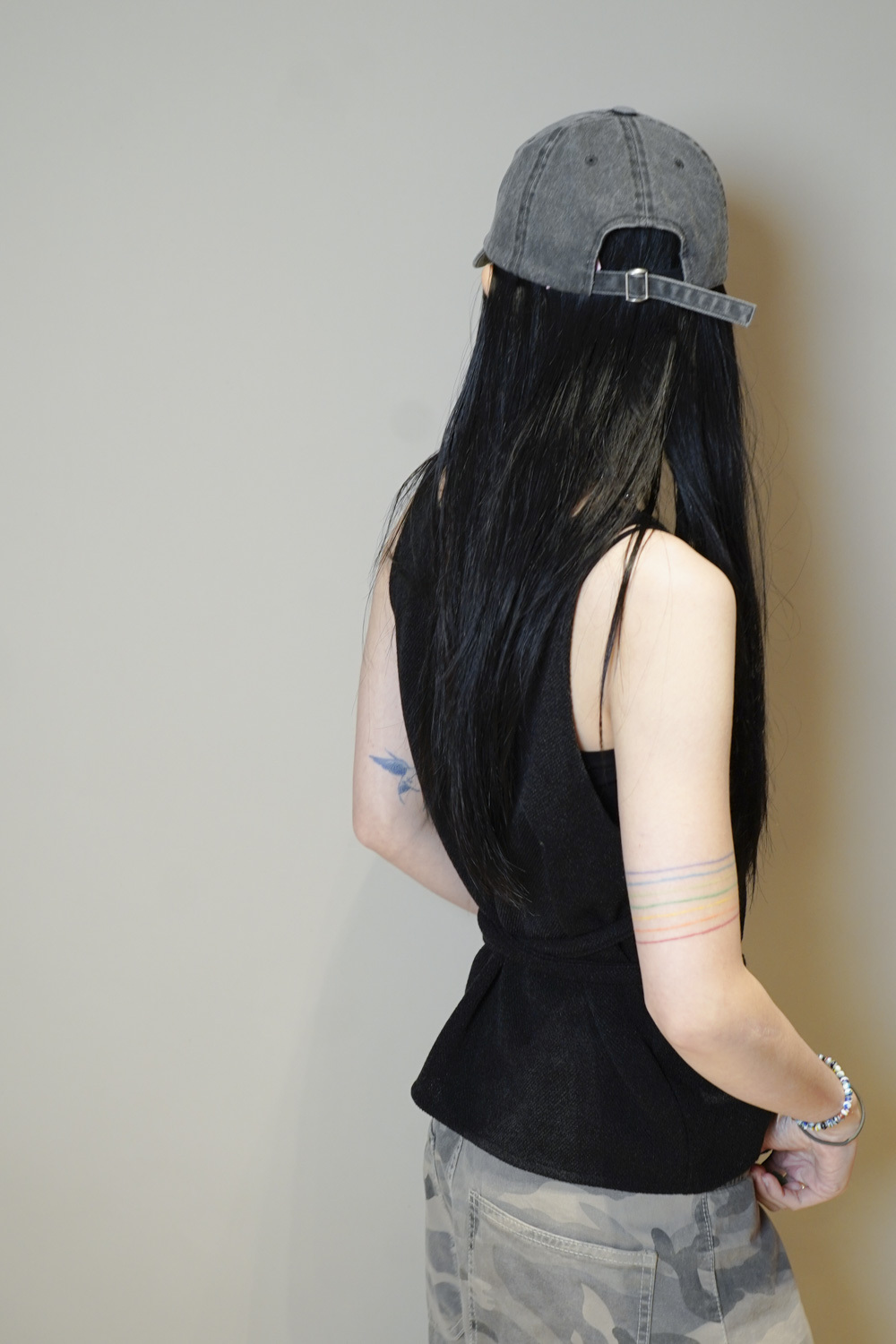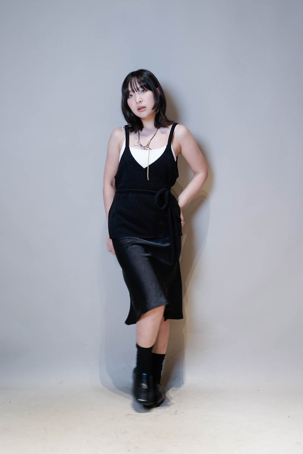 Cross wrapping long vest (GREY/BLACK)