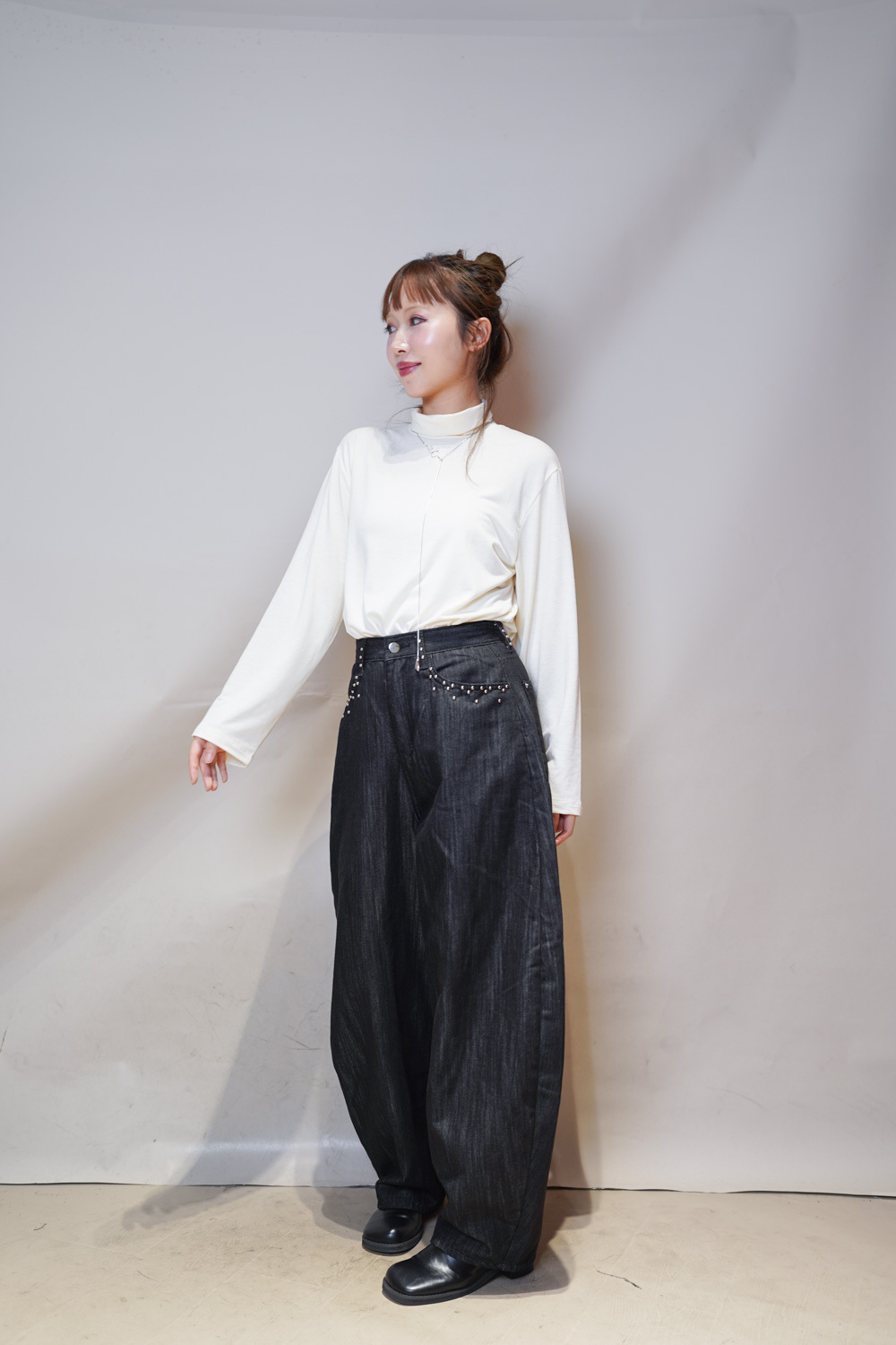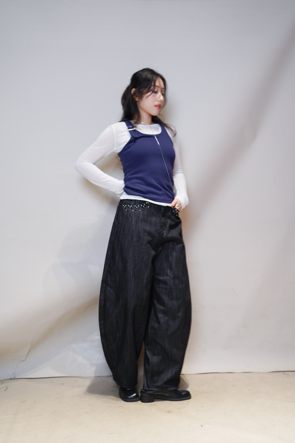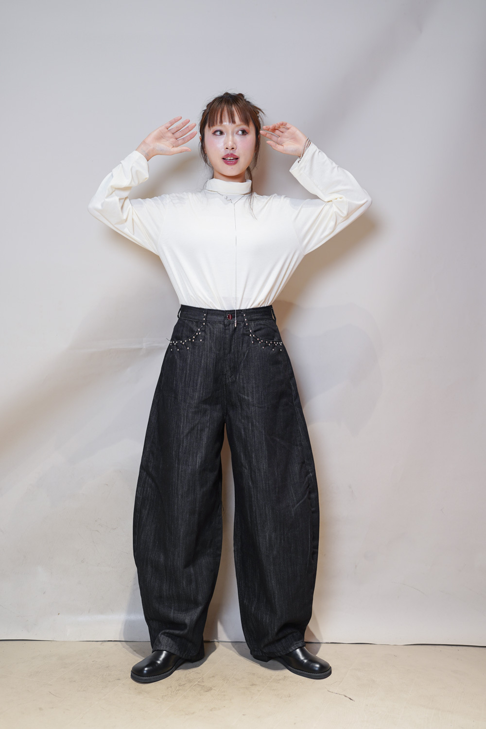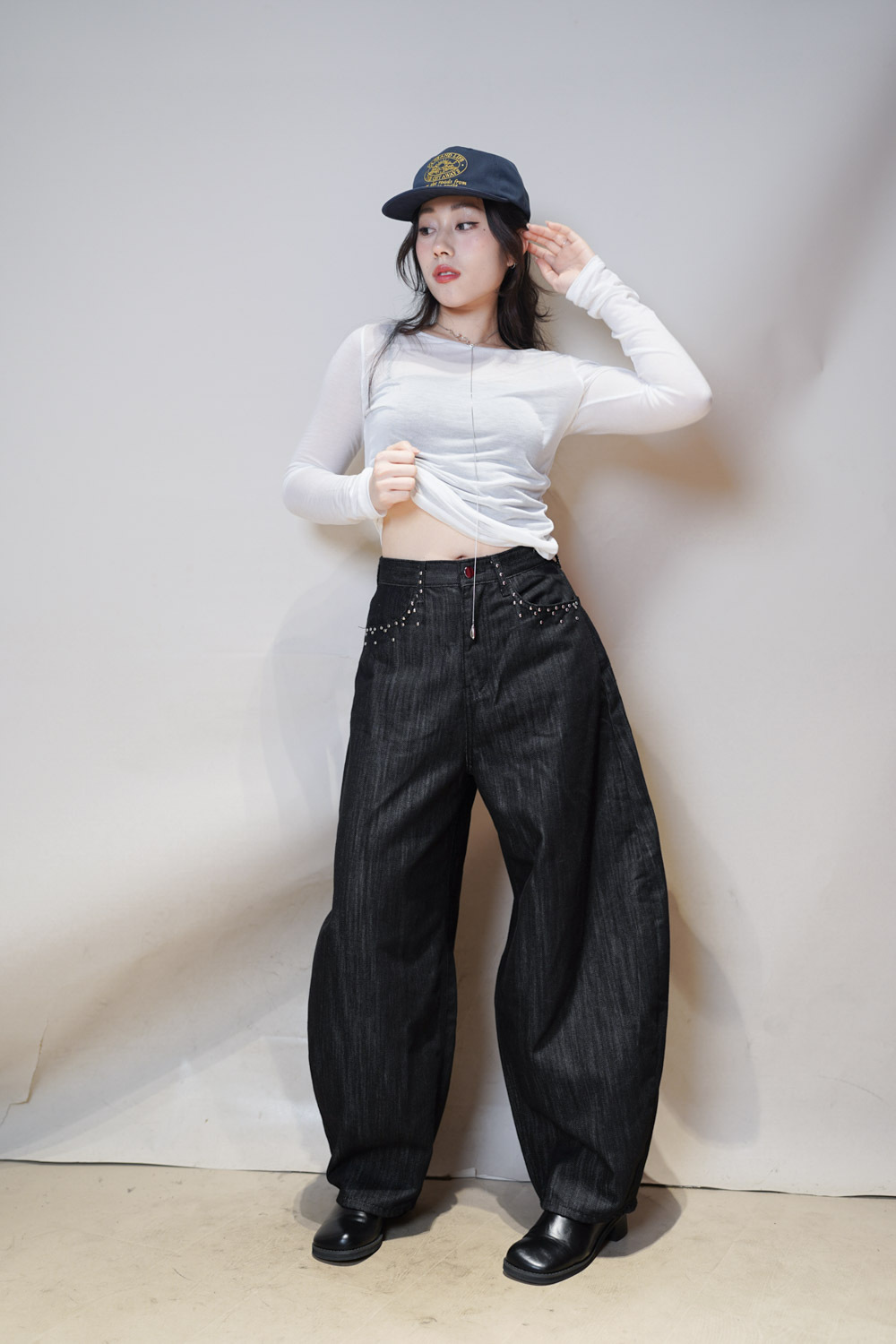 Love~Dotted metal rivet soft summer baggy jeans (S/M/L)