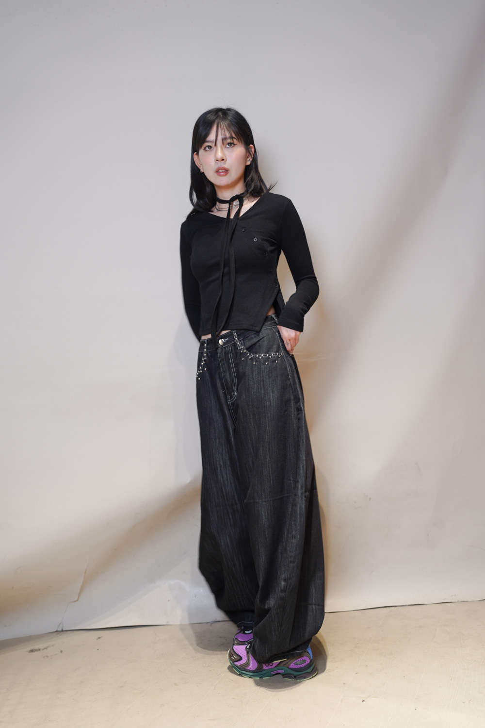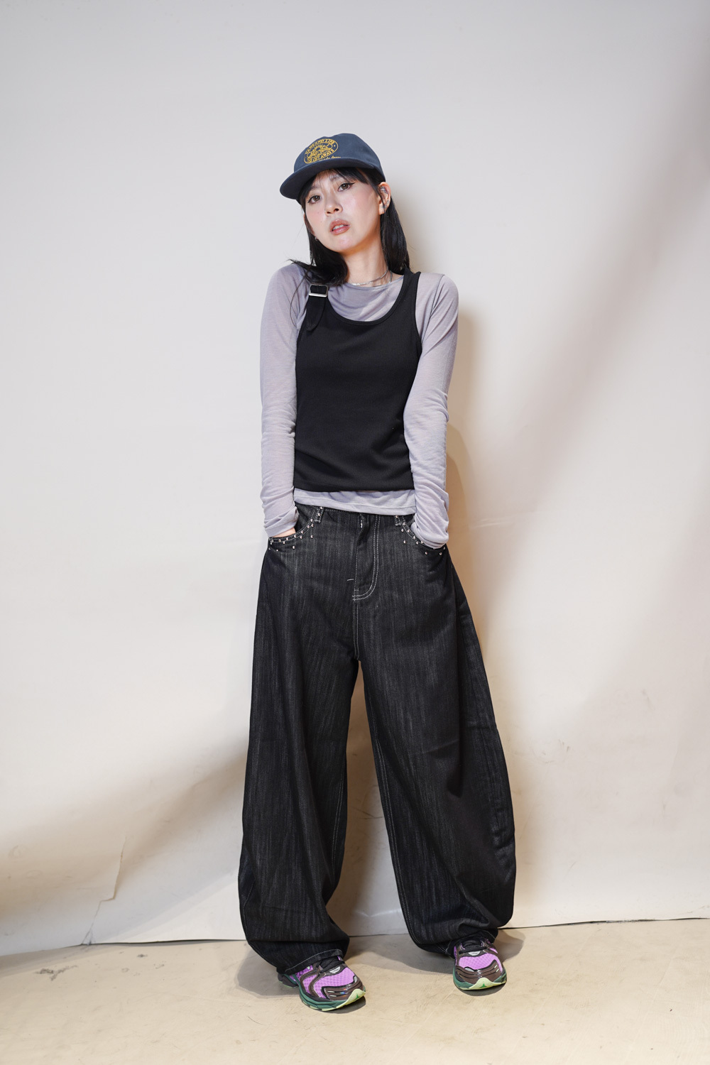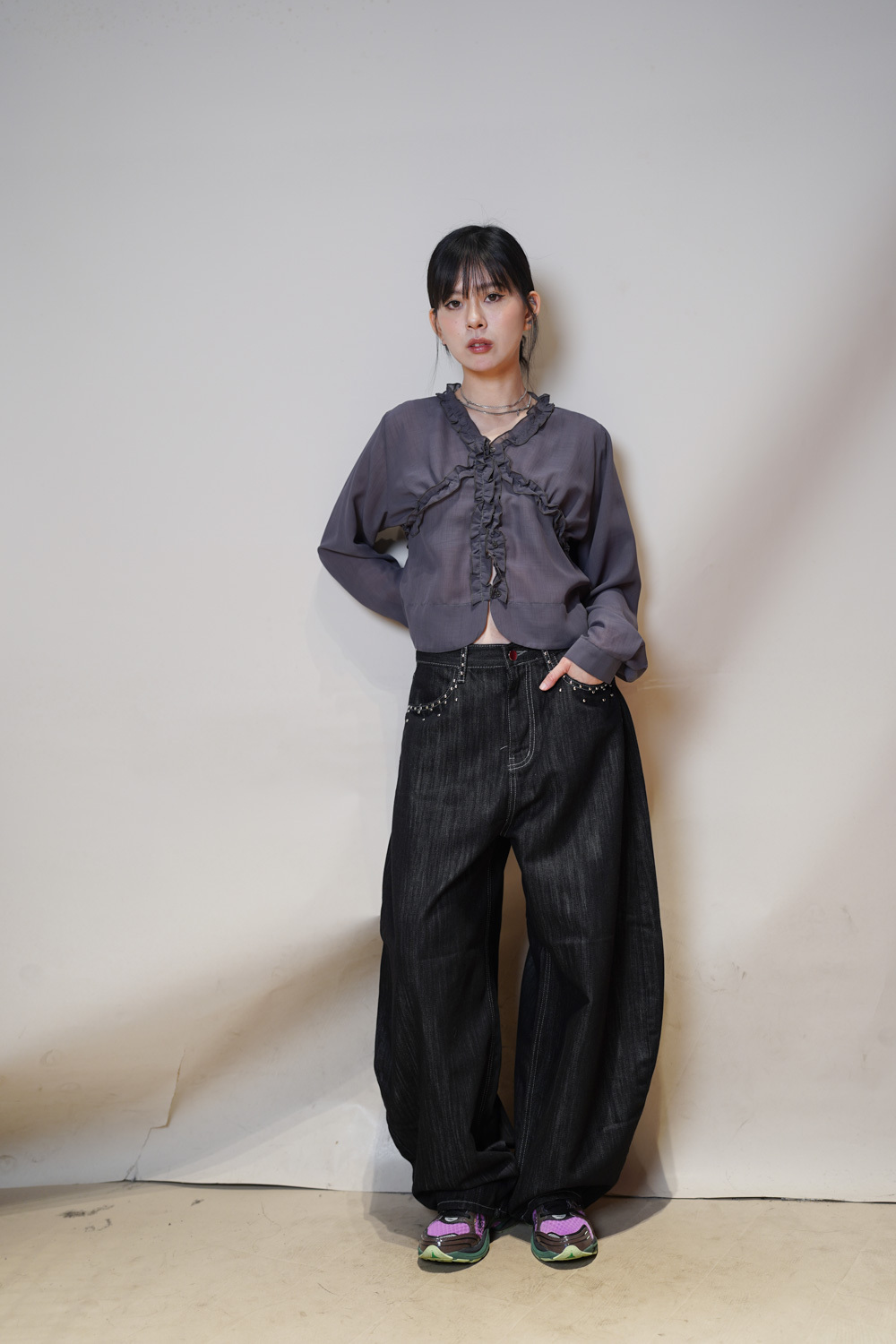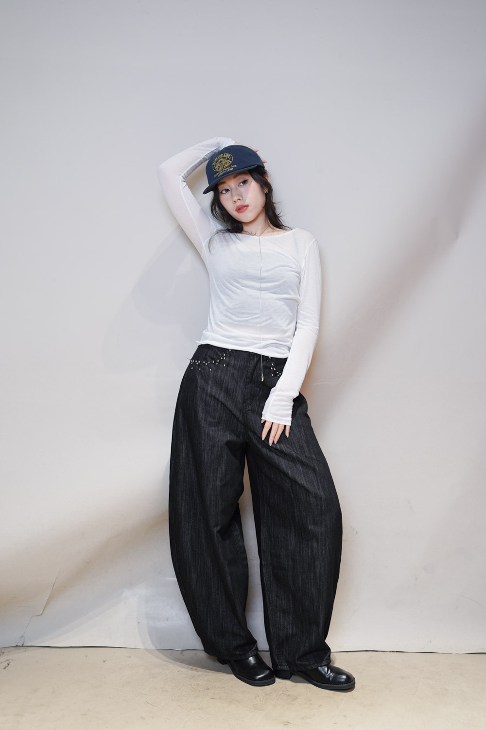 Love~Dotted metal rivet soft summer baggy jeans (S/M/L)