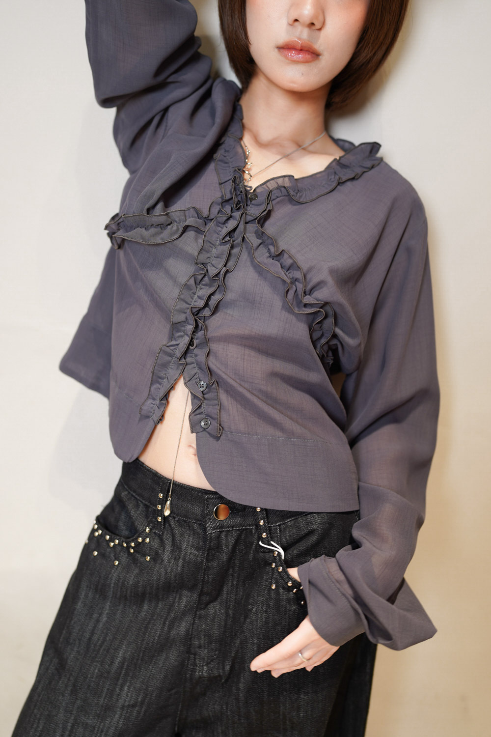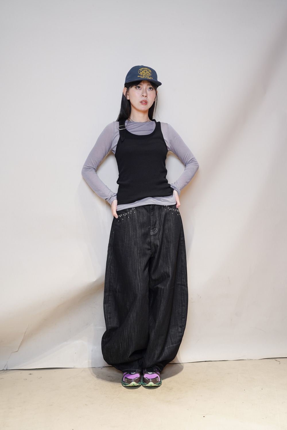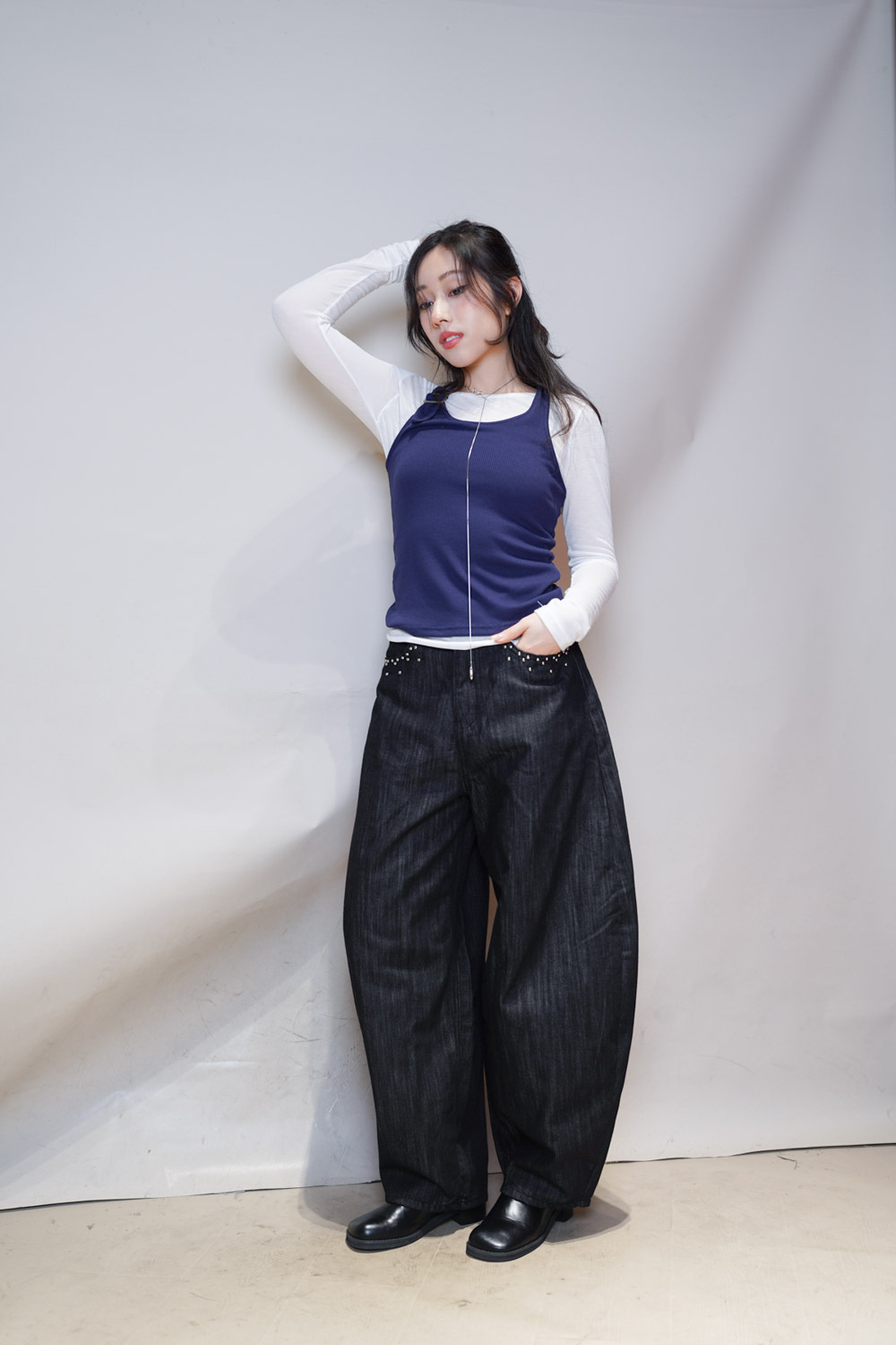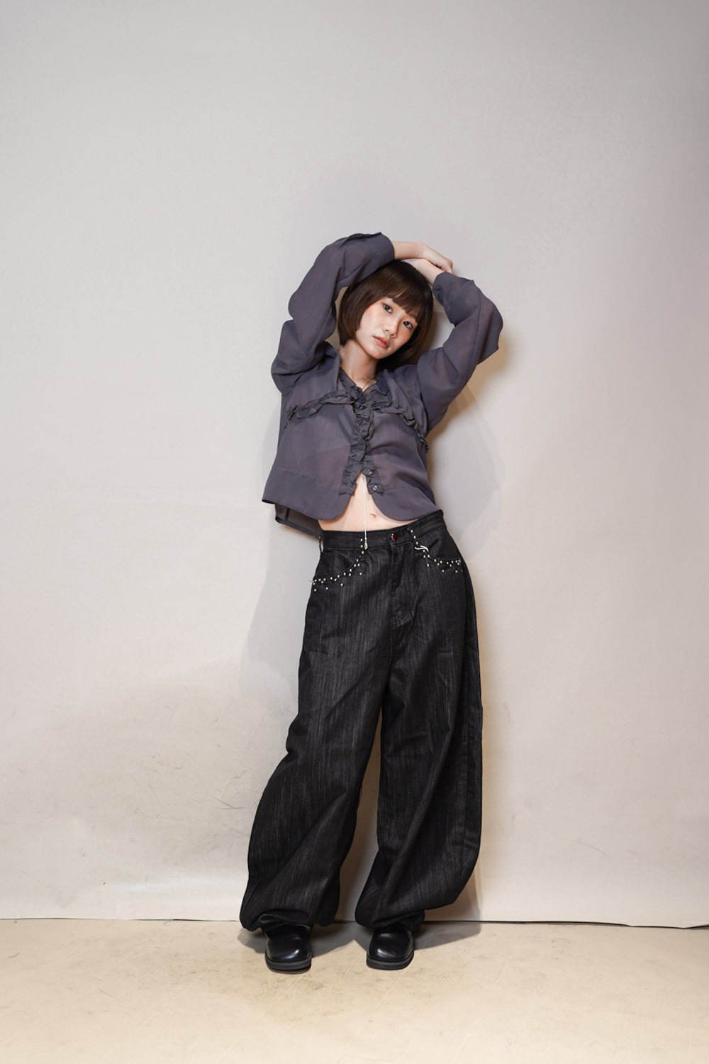 Love~Dotted metal rivet soft summer baggy jeans (S/M/L)