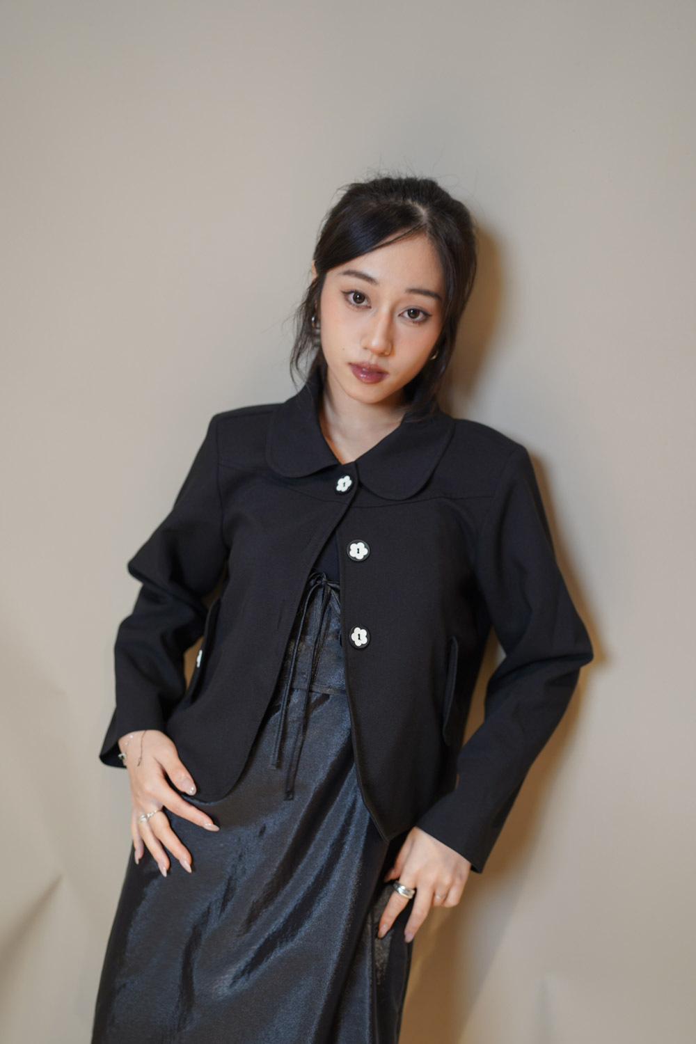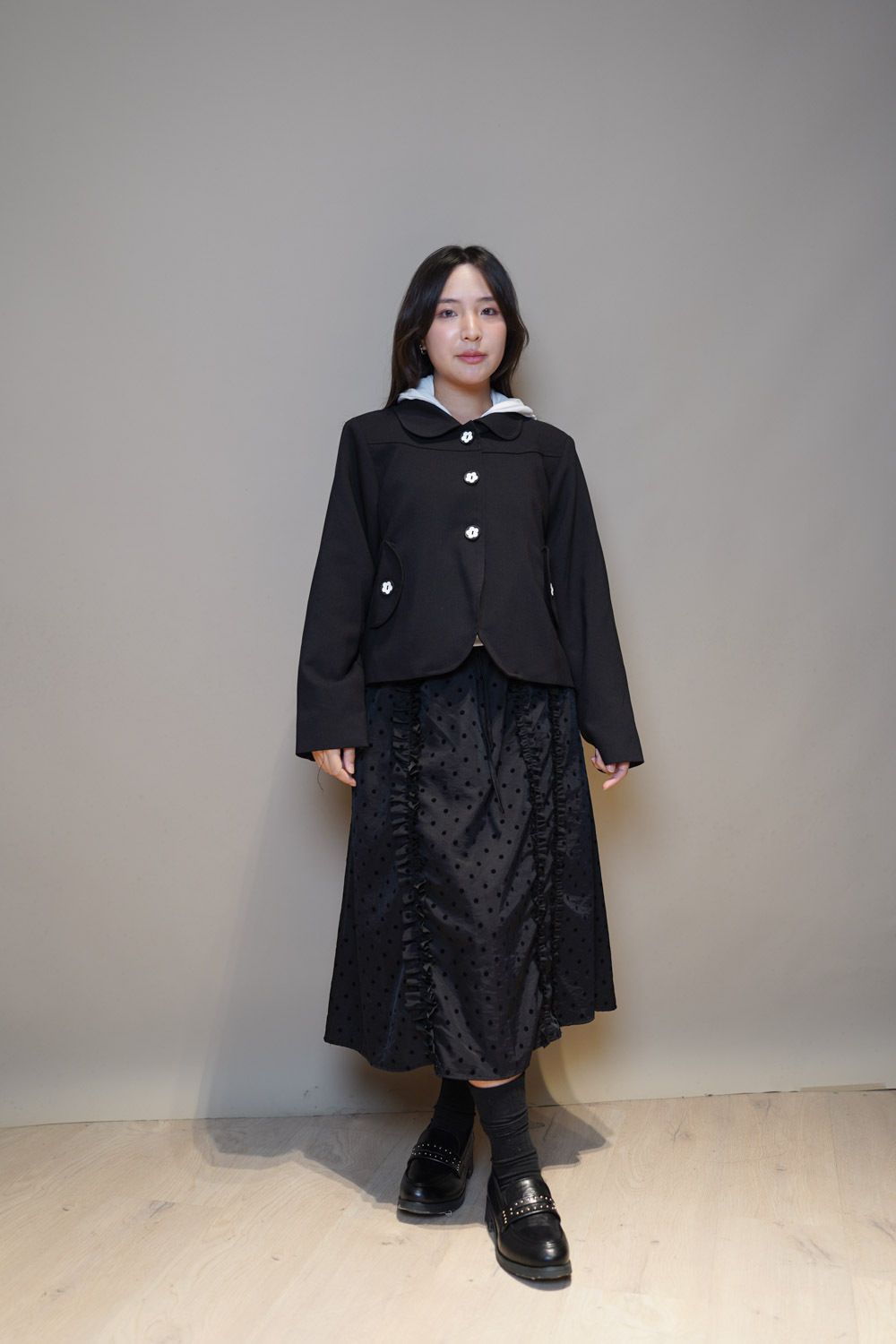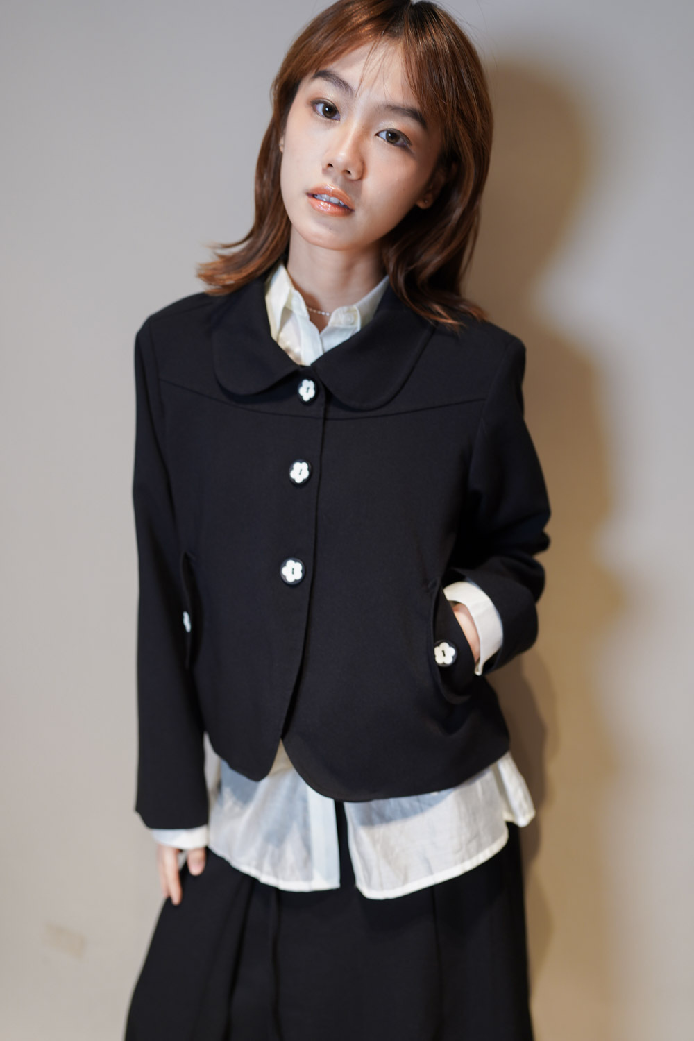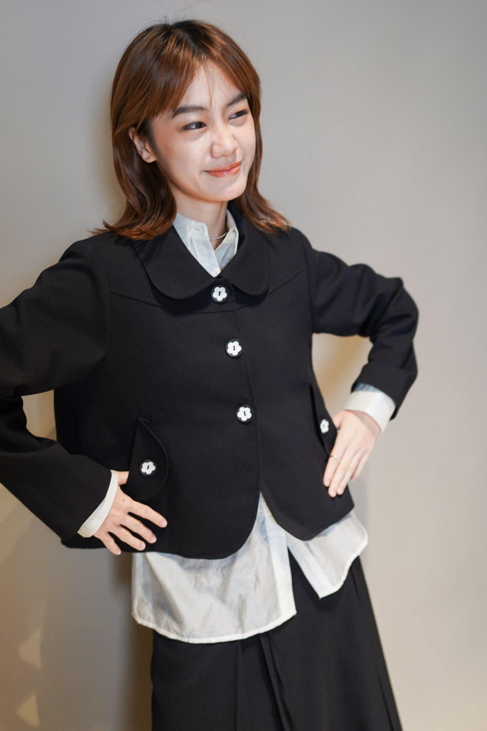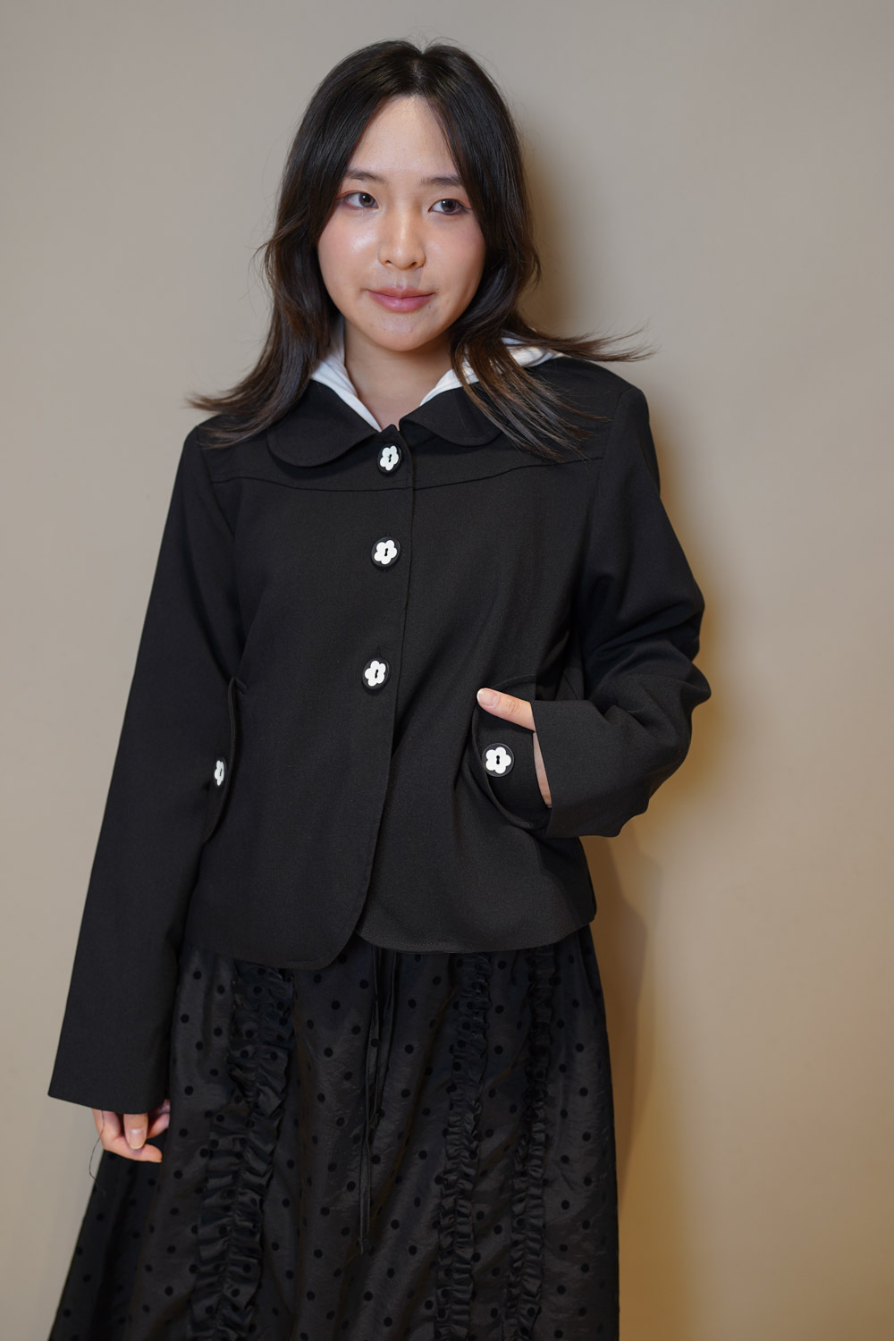 深灰底白花圓形鈕扣 中和西裝外套的正式感/ 可愛少女減齡