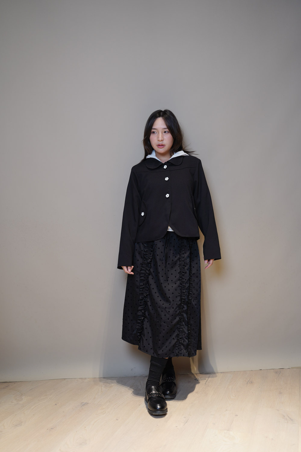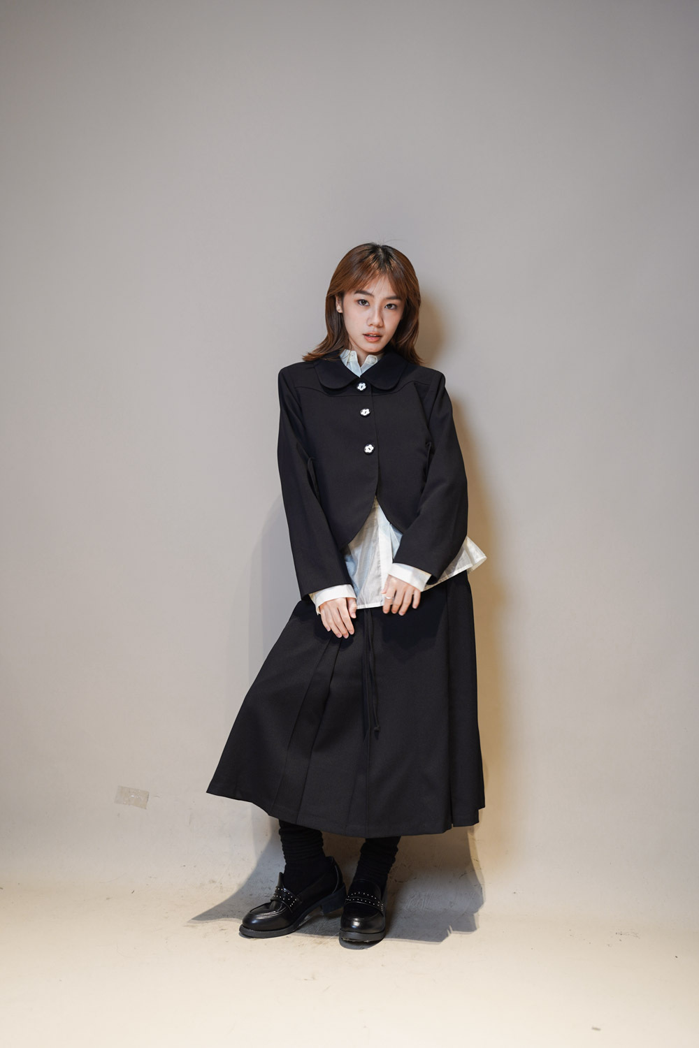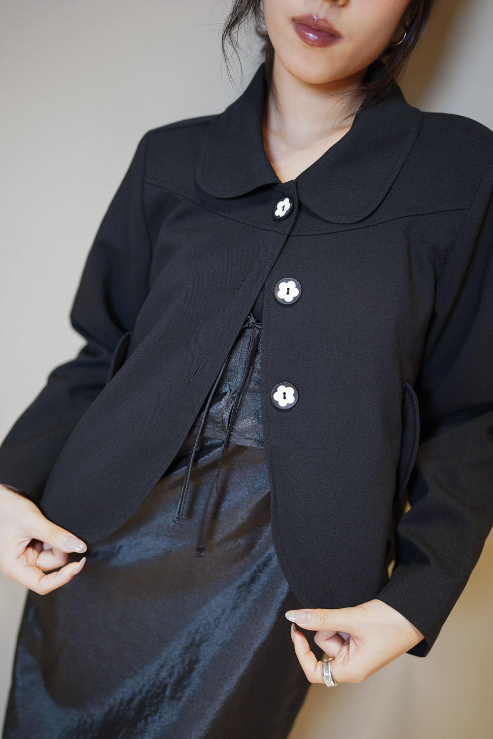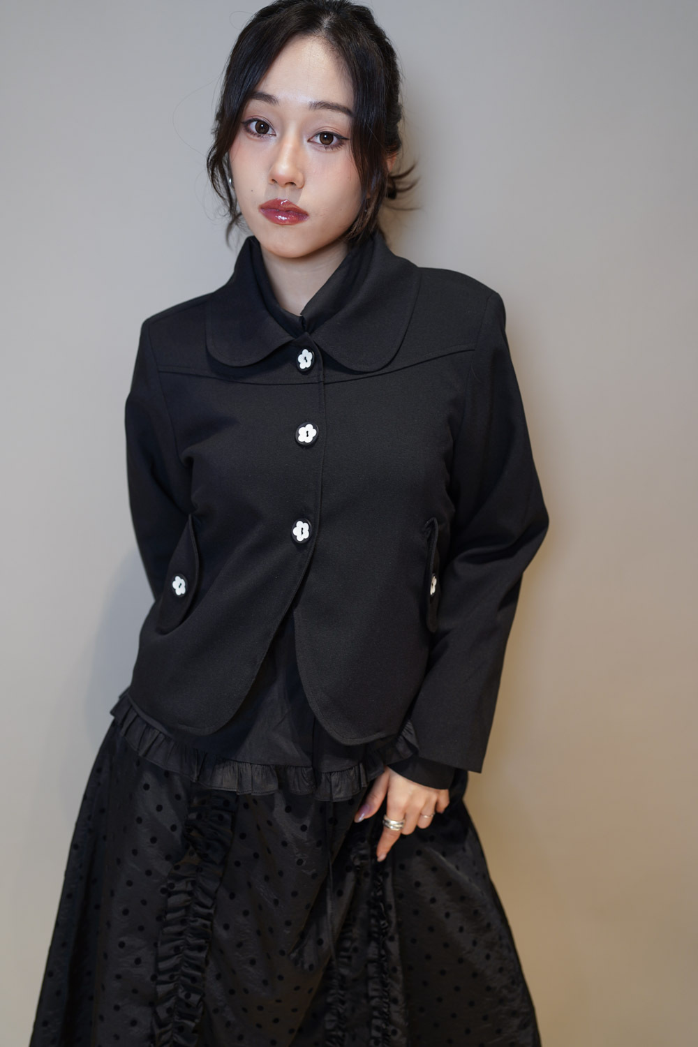 深灰底白花圓形鈕扣 中和西裝外套的正式感/ 可愛少女減齡