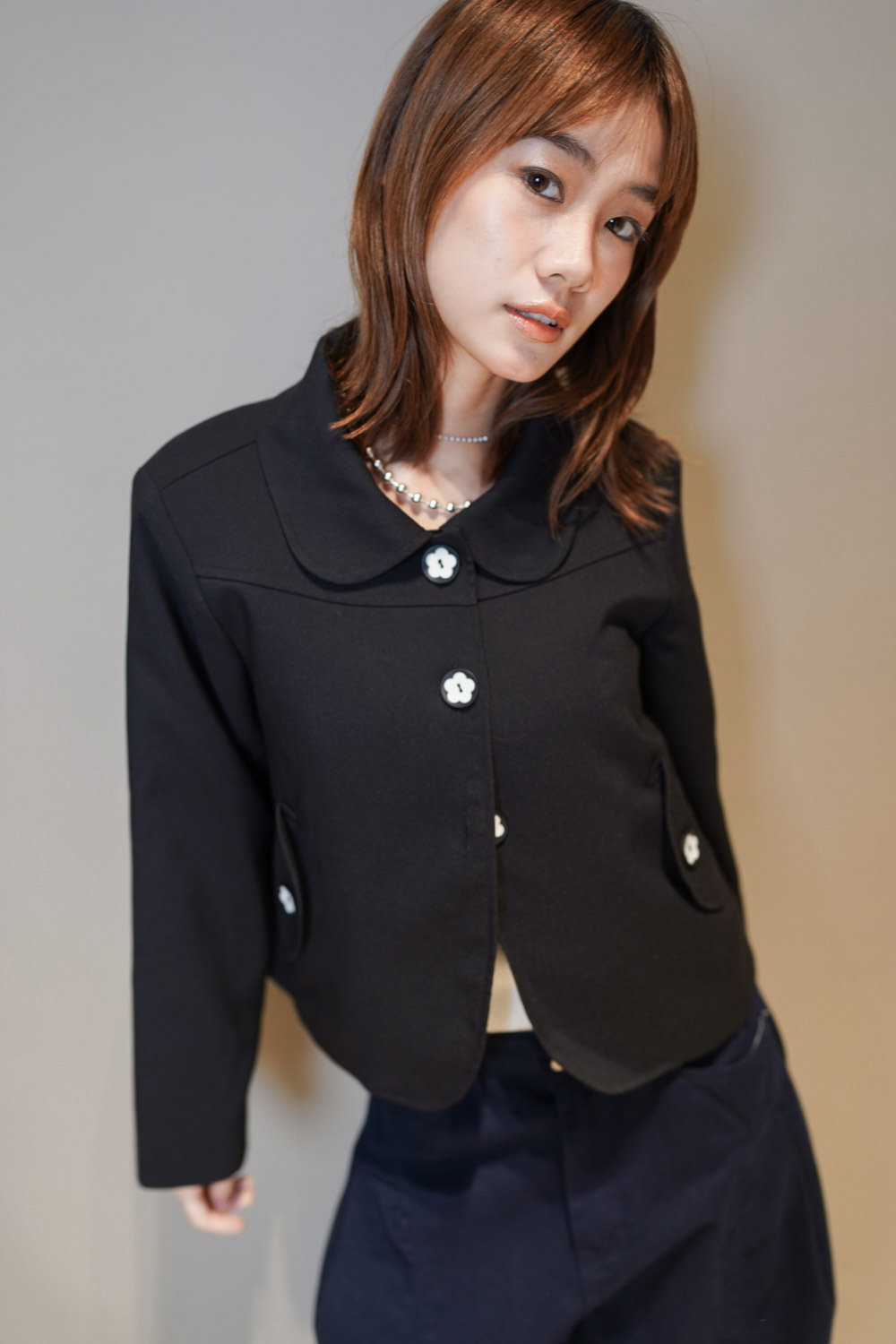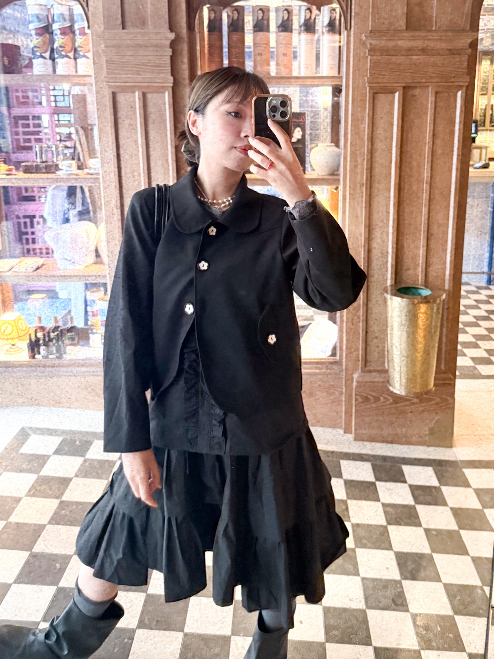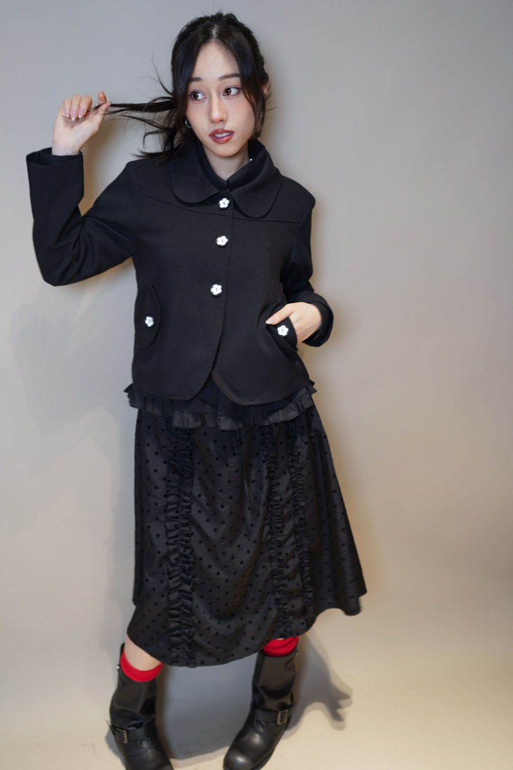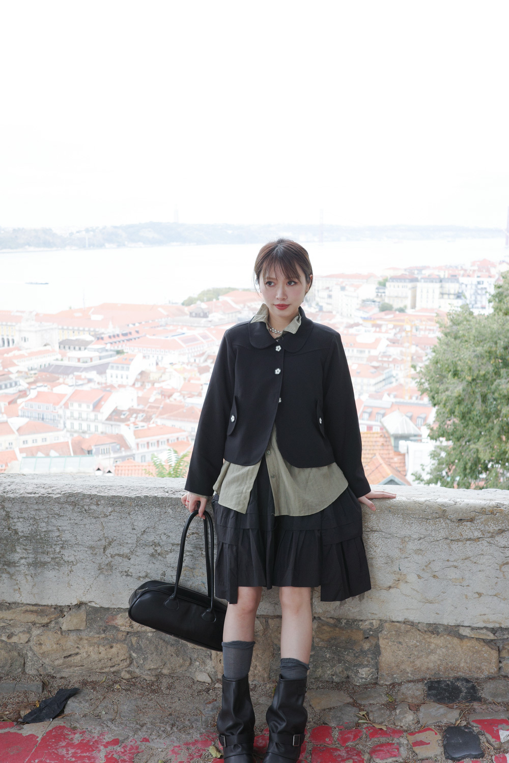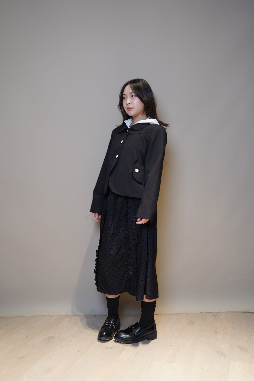 深灰底白花圓形鈕扣 中和西裝外套的正式感/ 可愛少女減齡