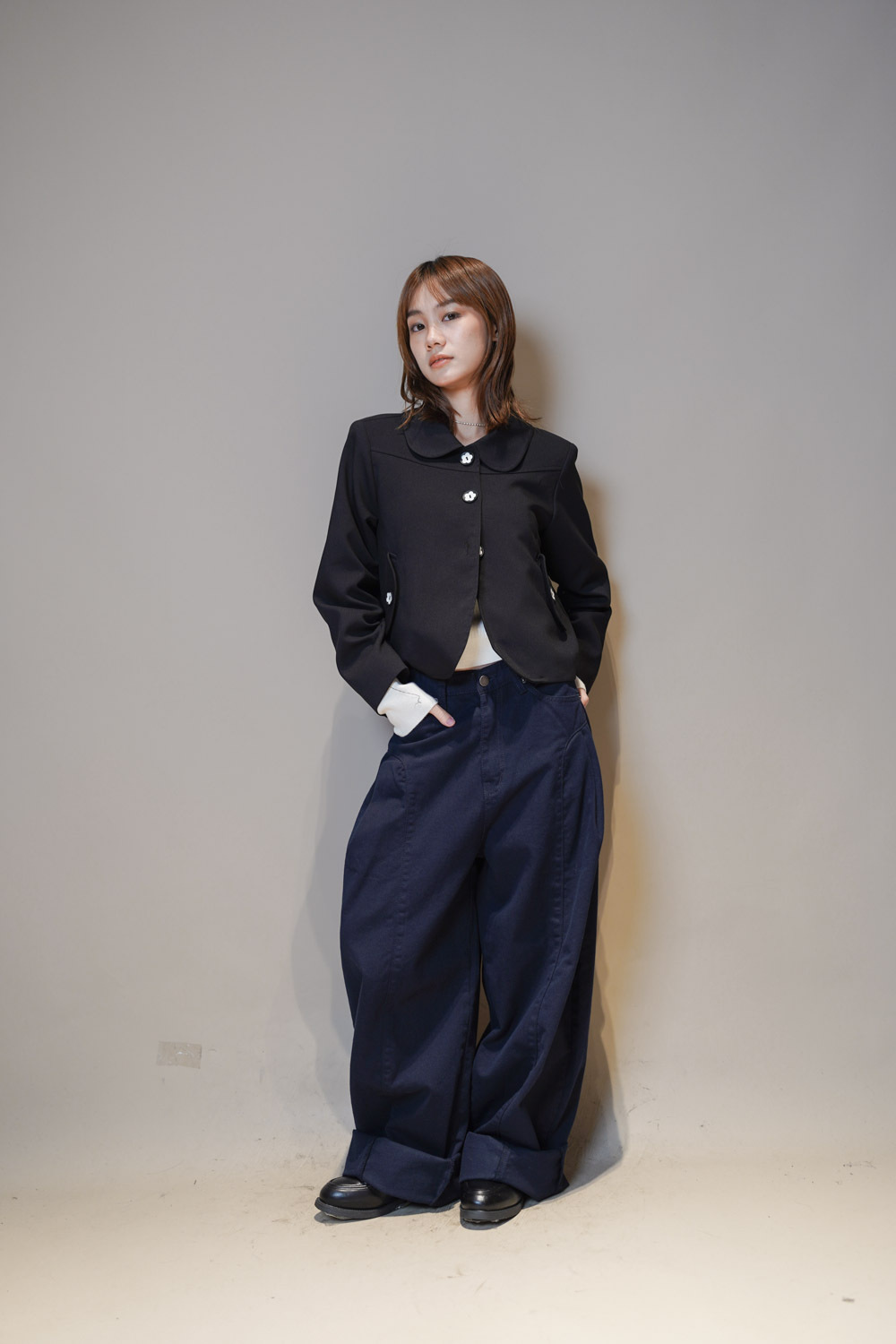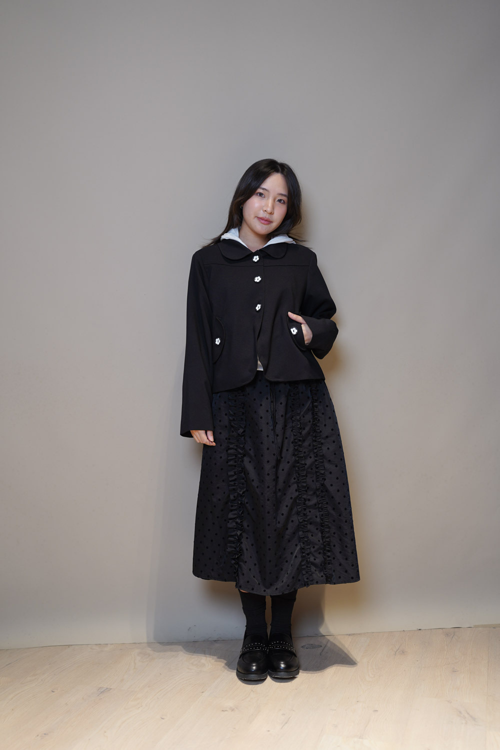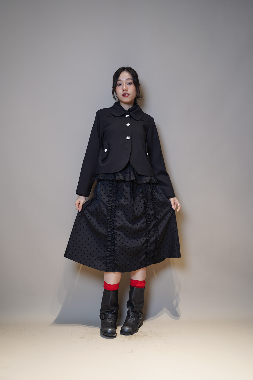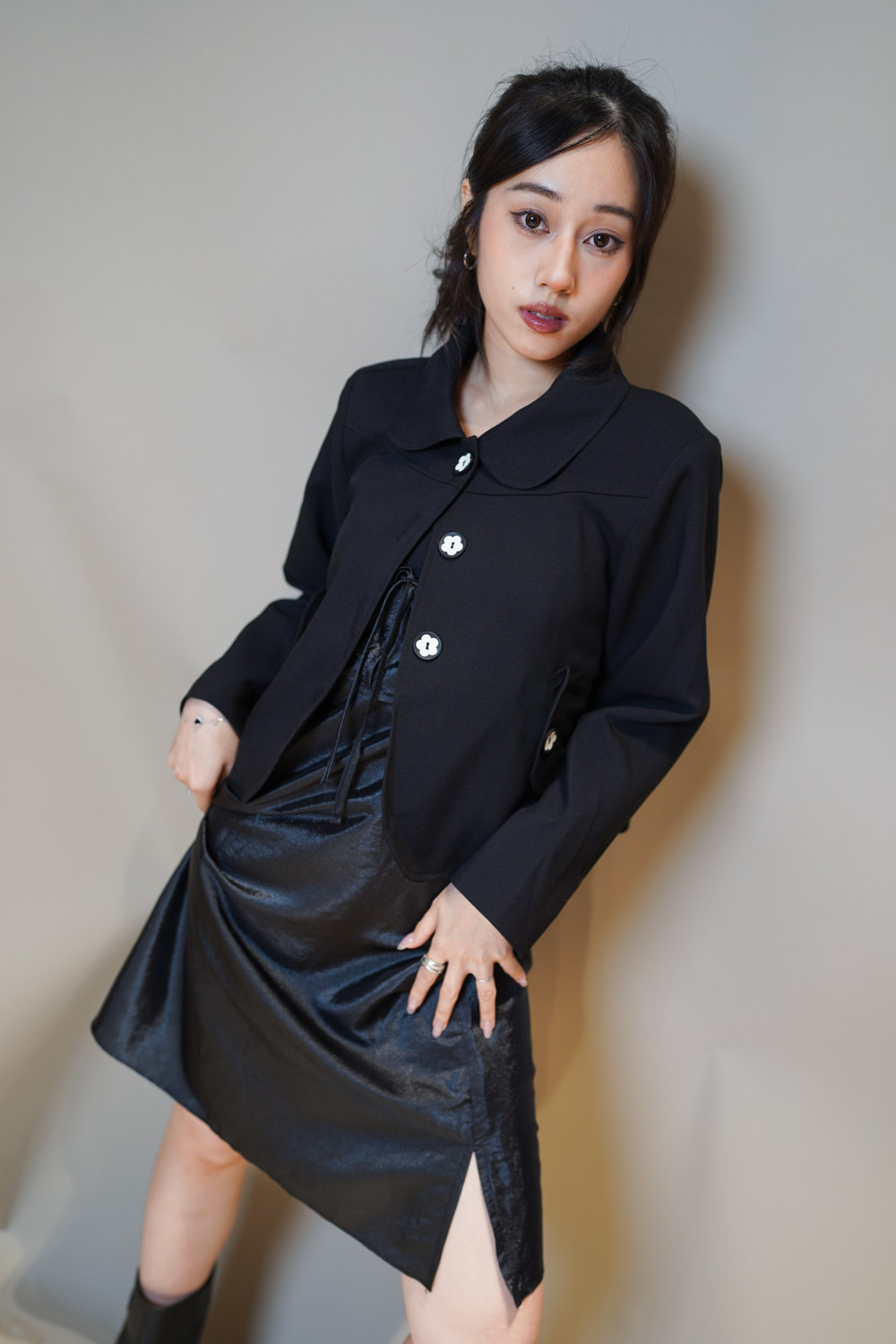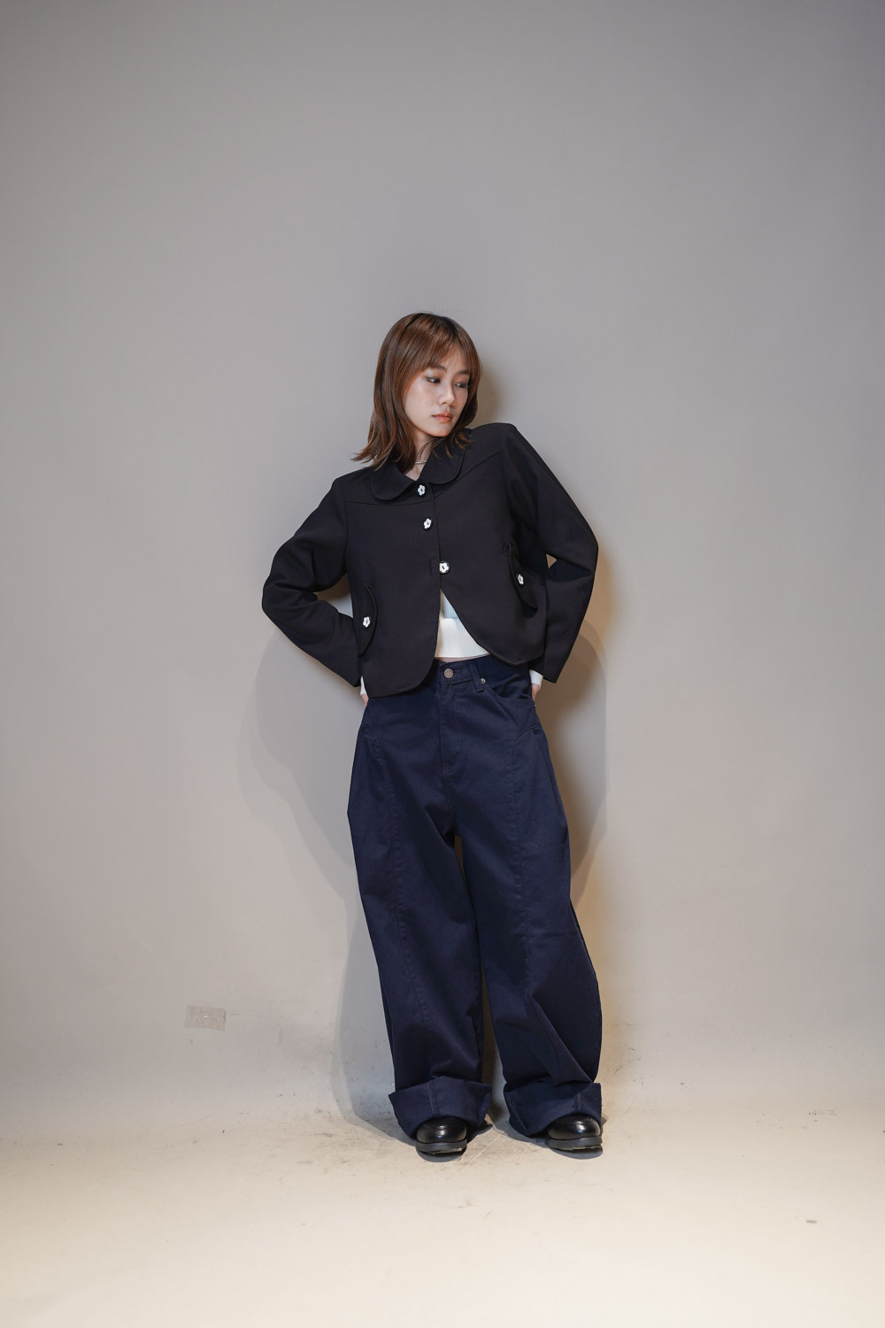深灰底白花圓形鈕扣 中和西裝外套的正式感/ 可愛少女減齡