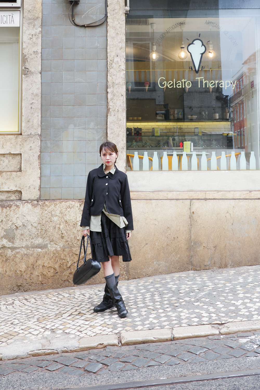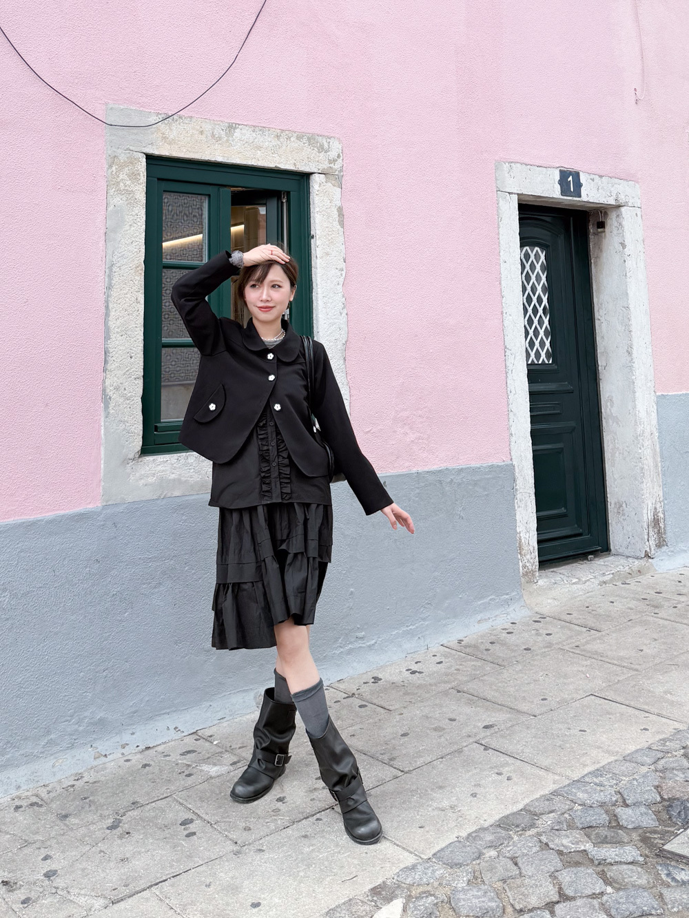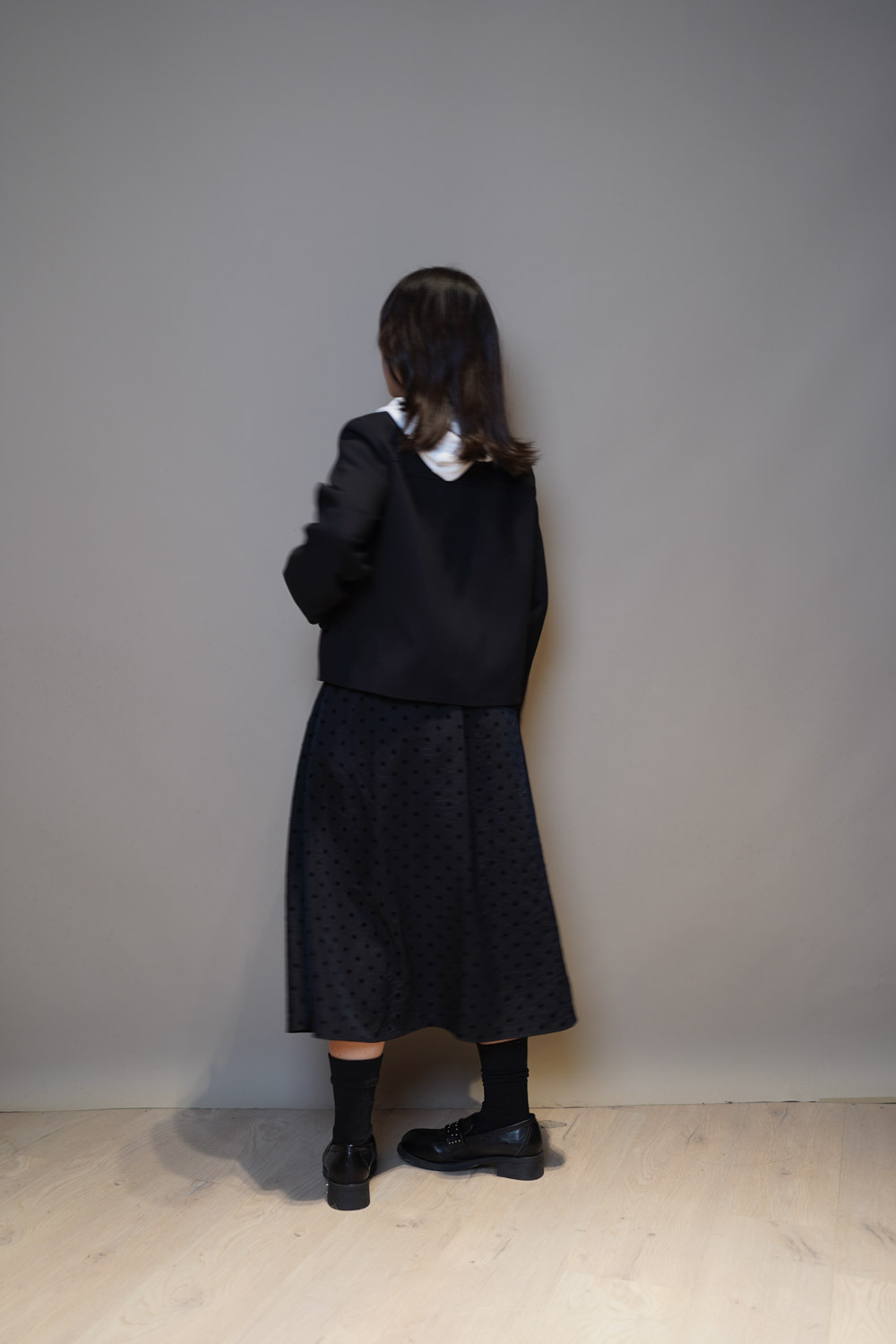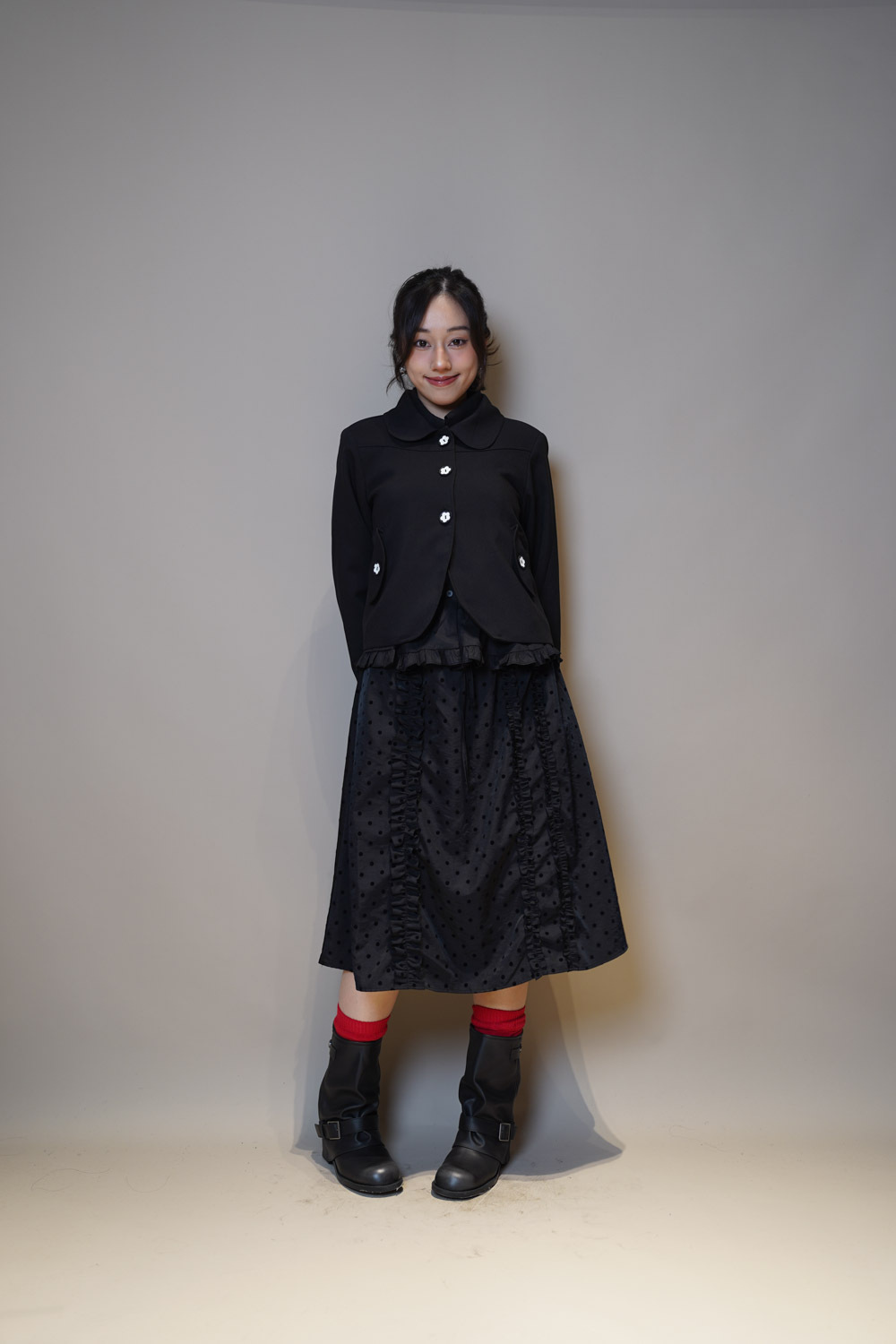 深灰底白花圓形鈕扣 中和西裝外套的正式感/ 可愛少女減齡