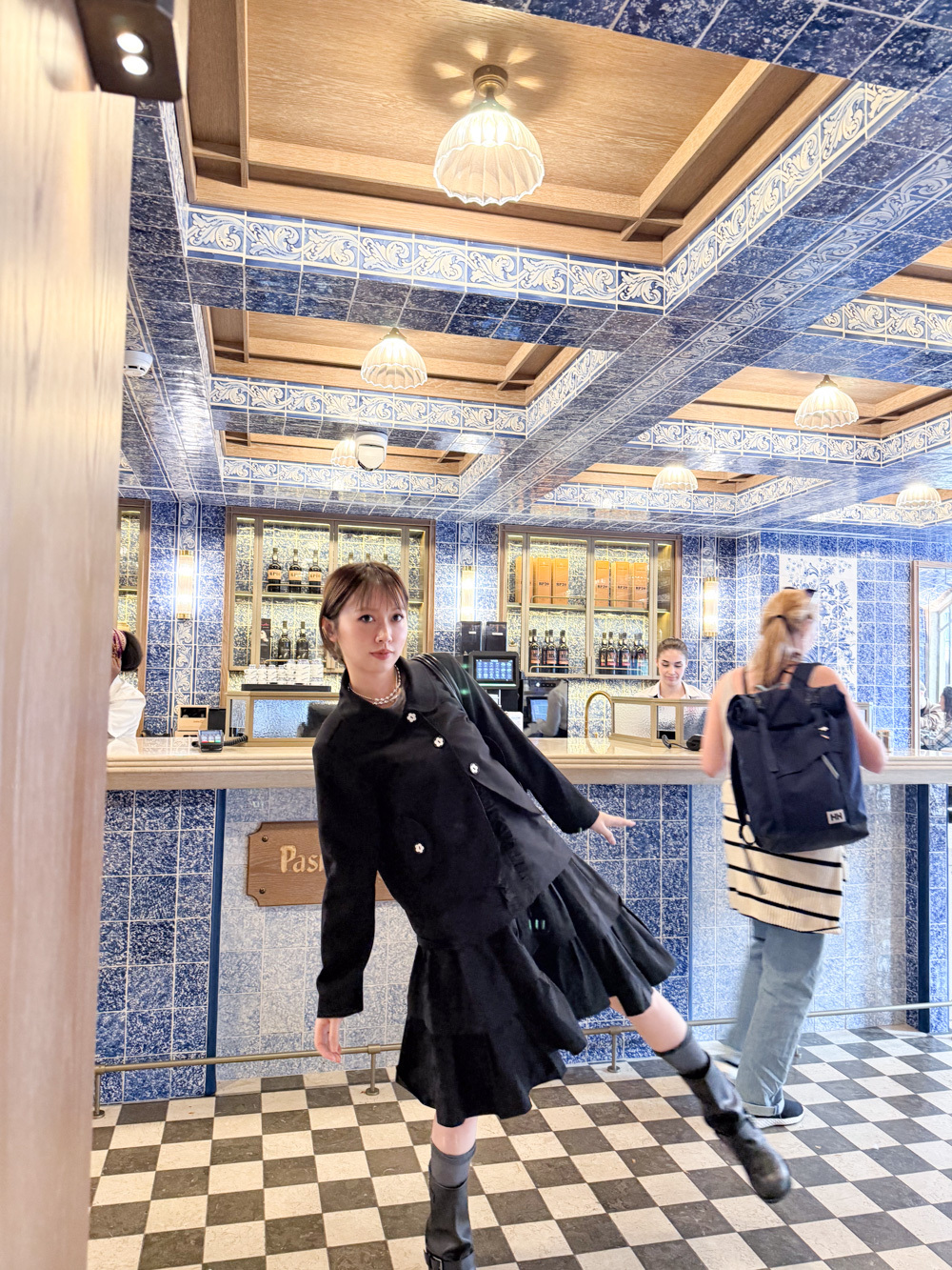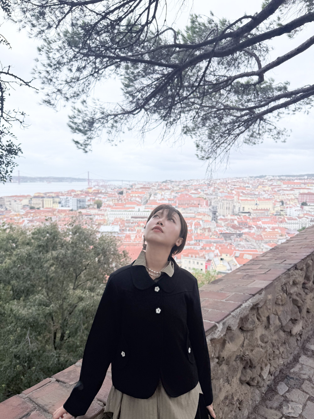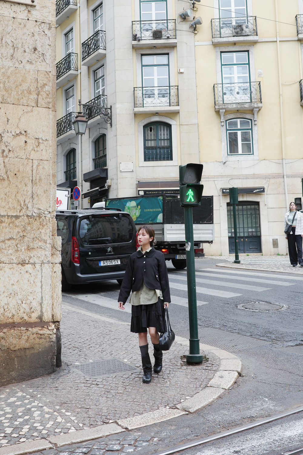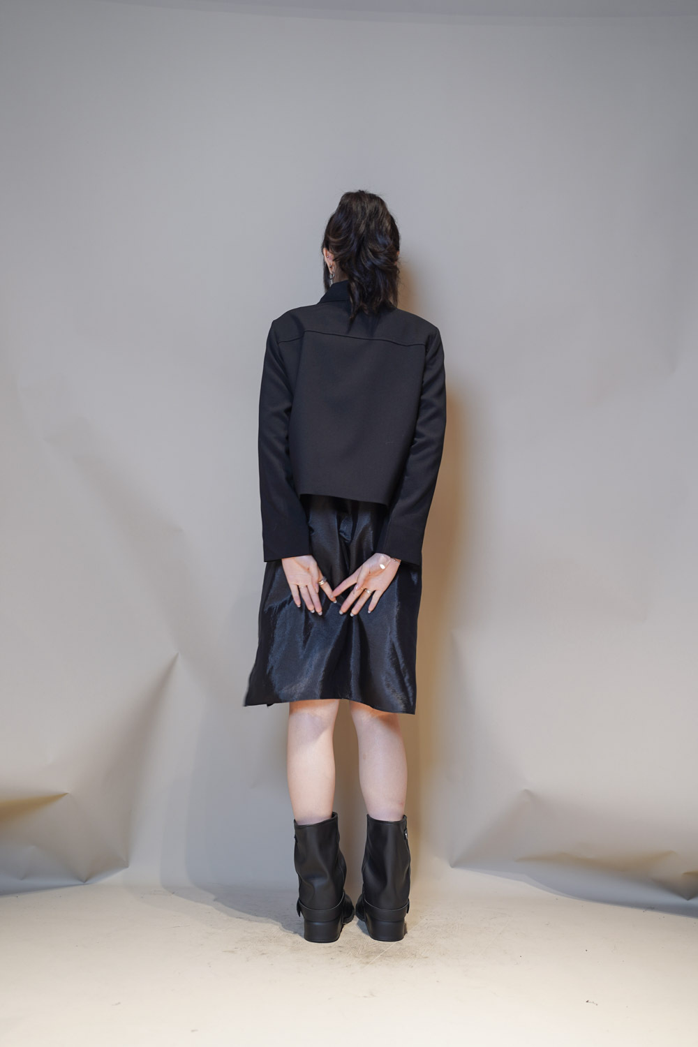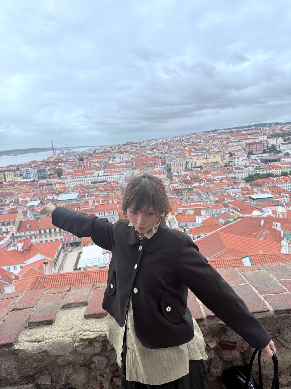 深灰底白花圓形鈕扣 中和西裝外套的正式感/ 可愛少女減齡