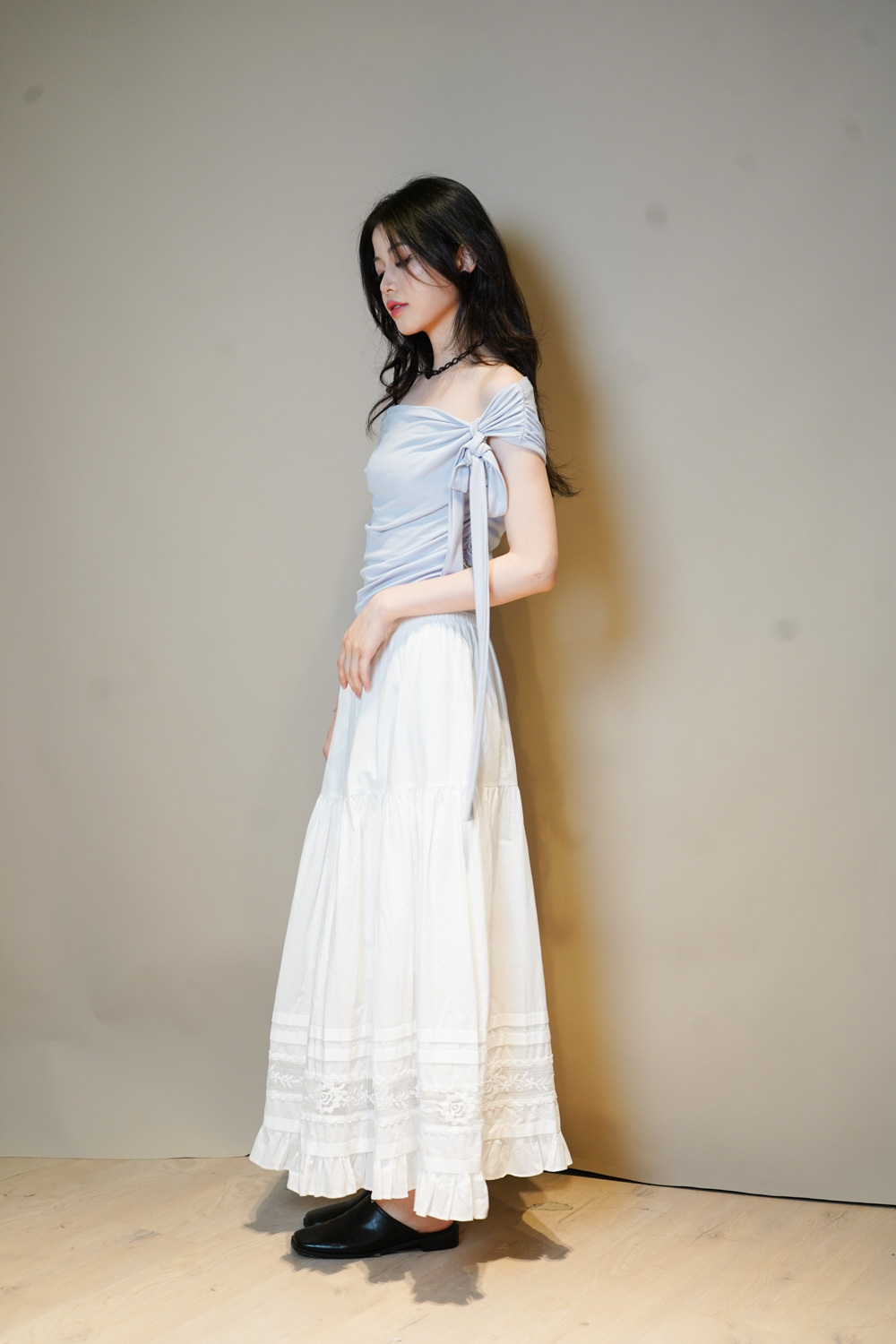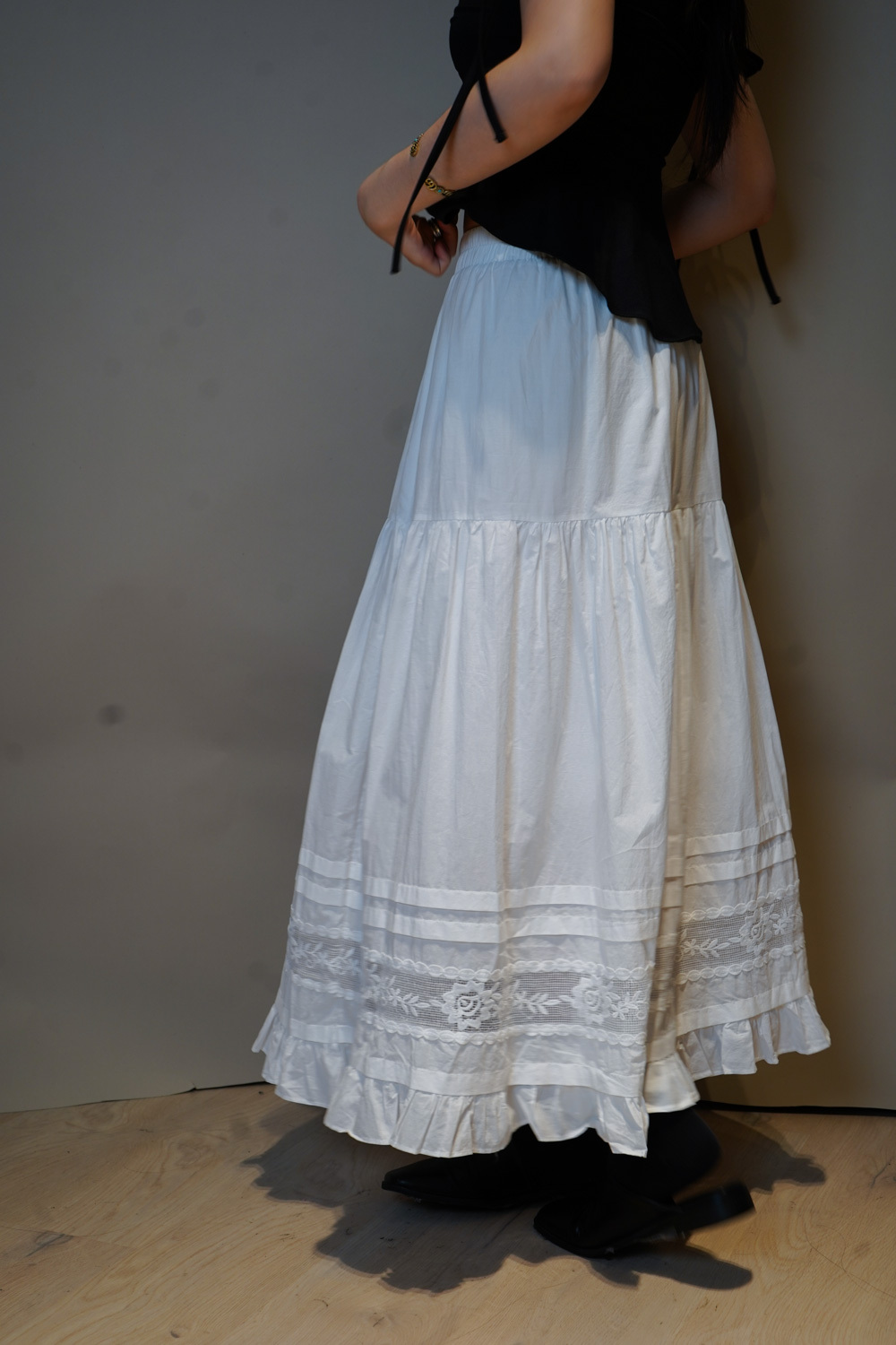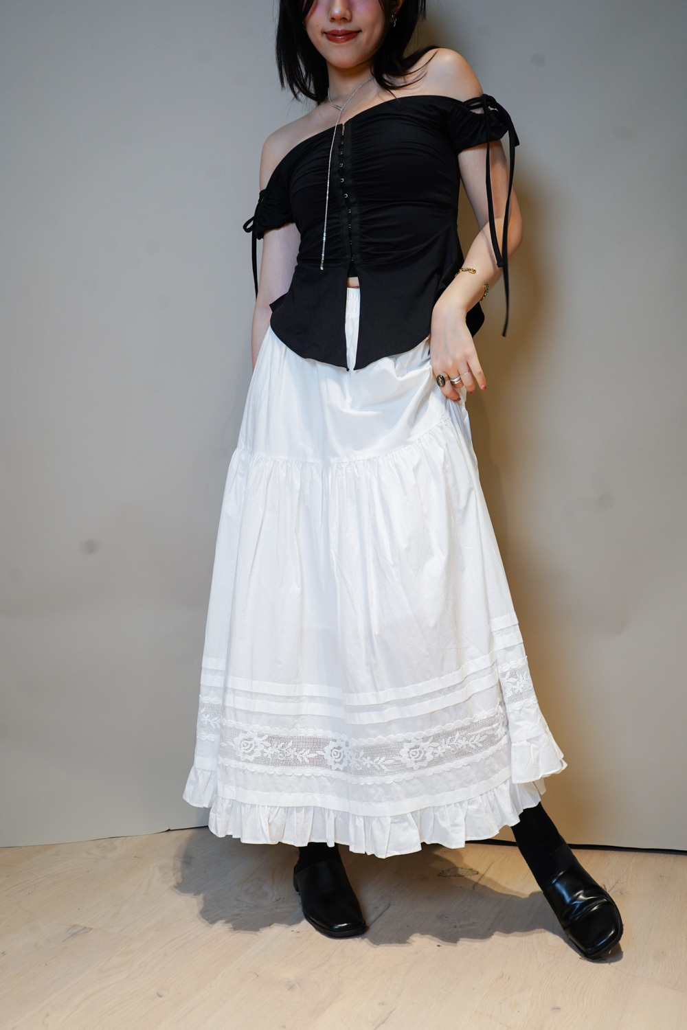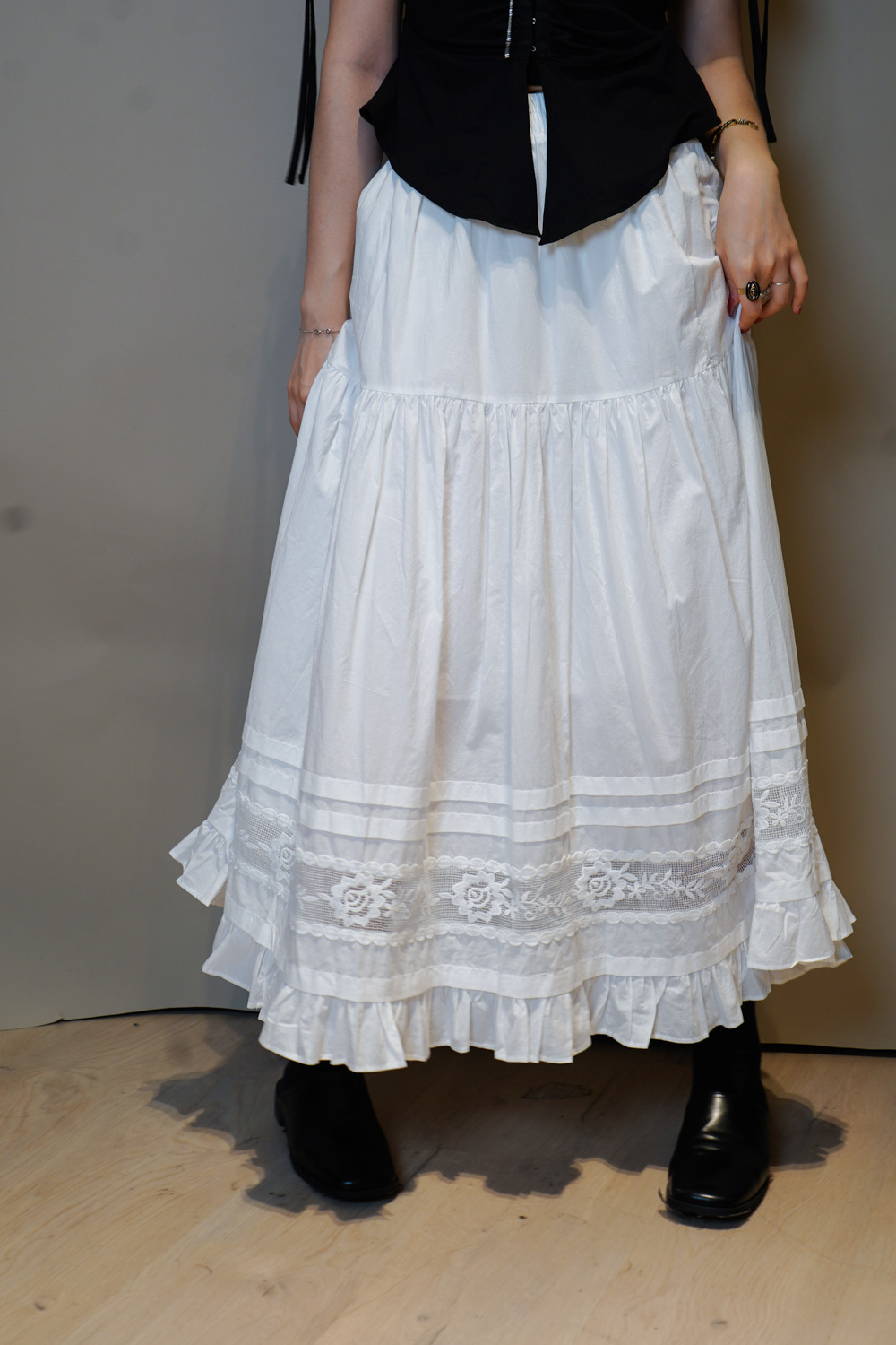 Love~france rose lace long white skirt - Free size