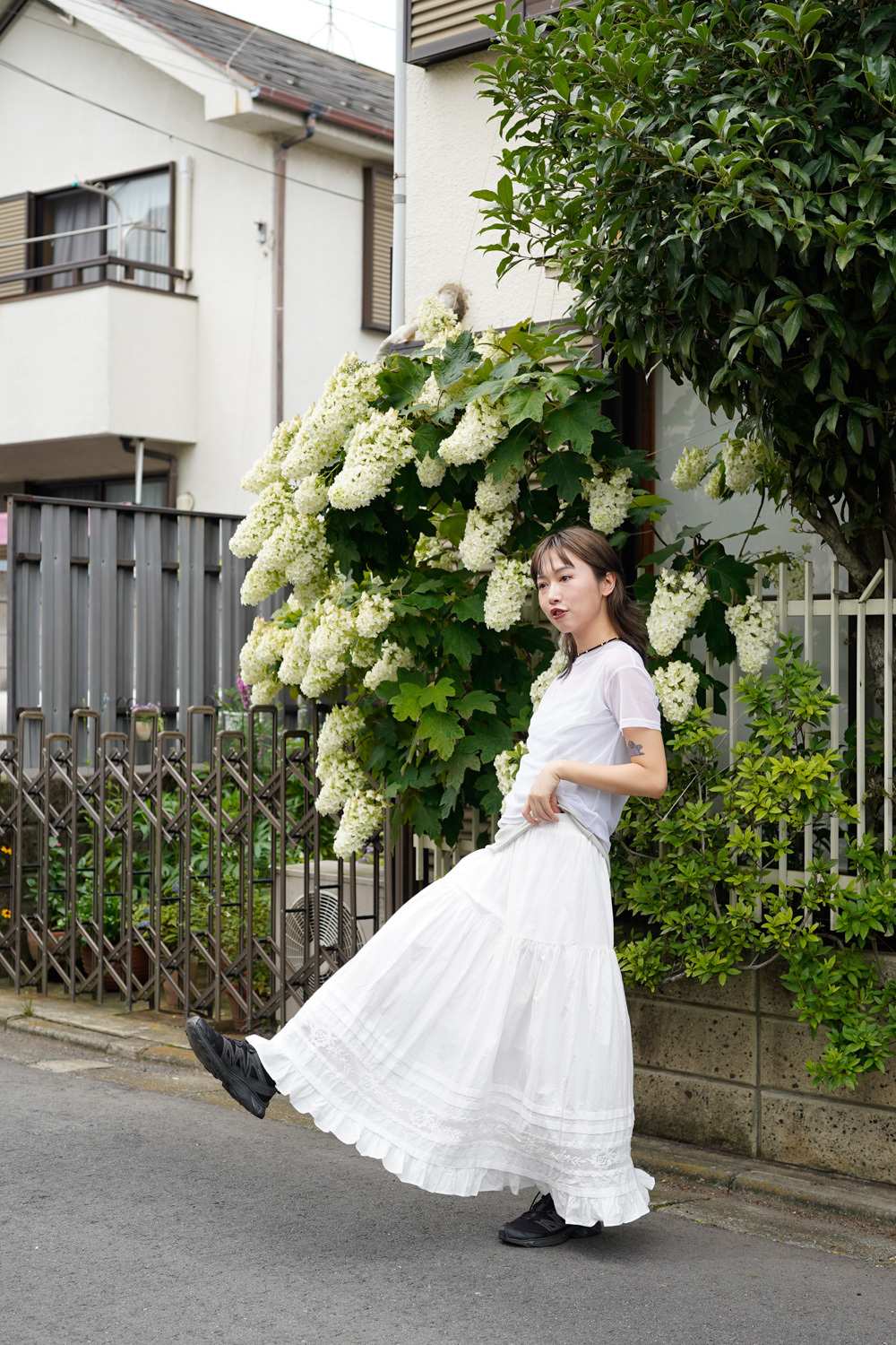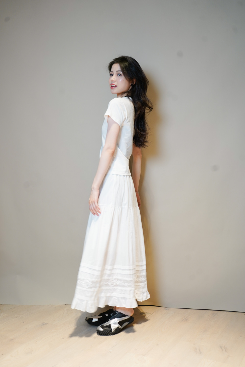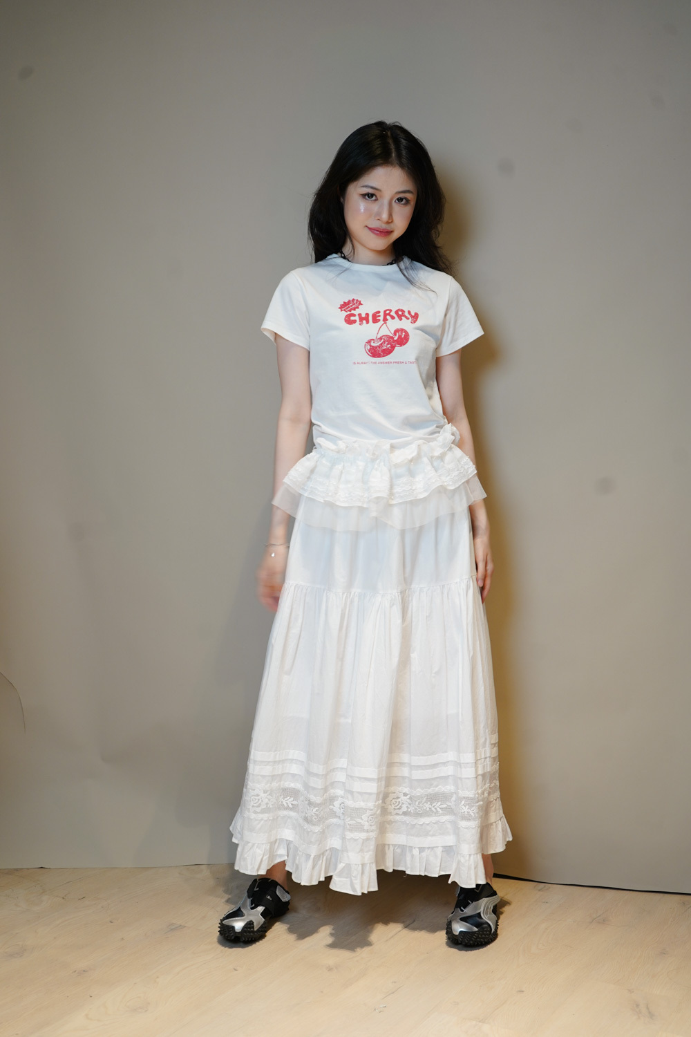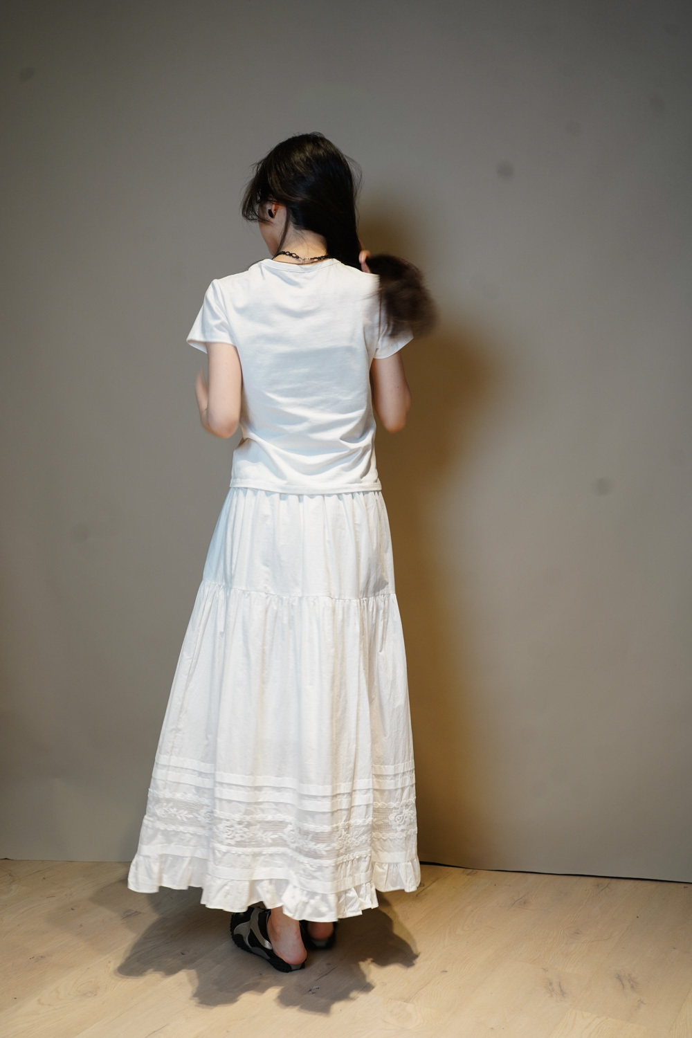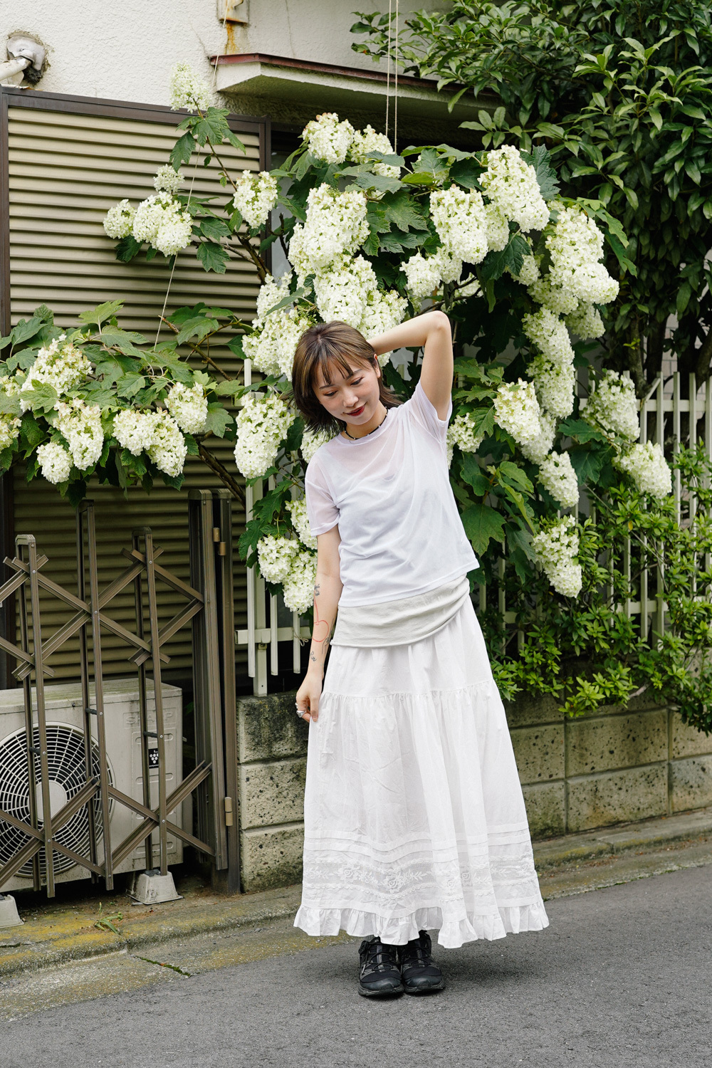Love~france rose lace long white skirt - Free size