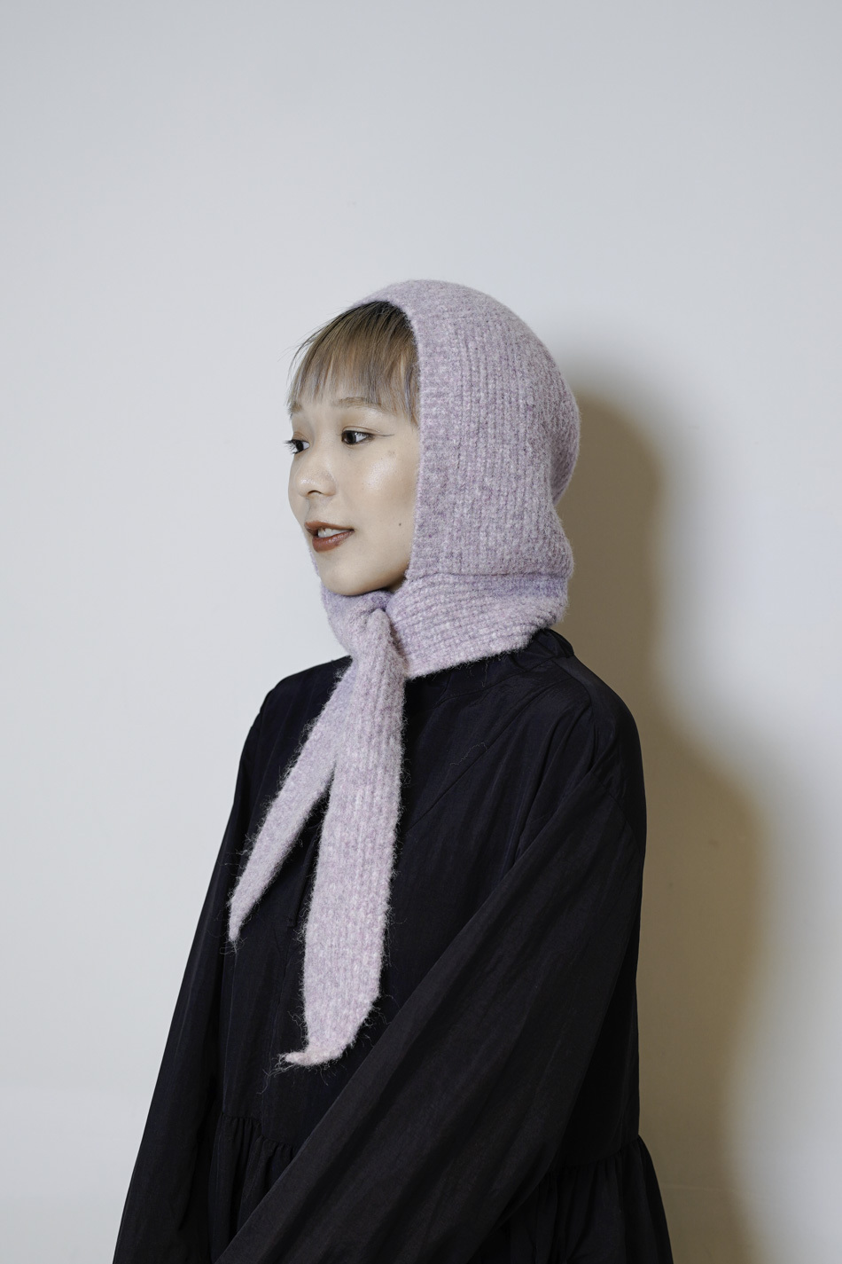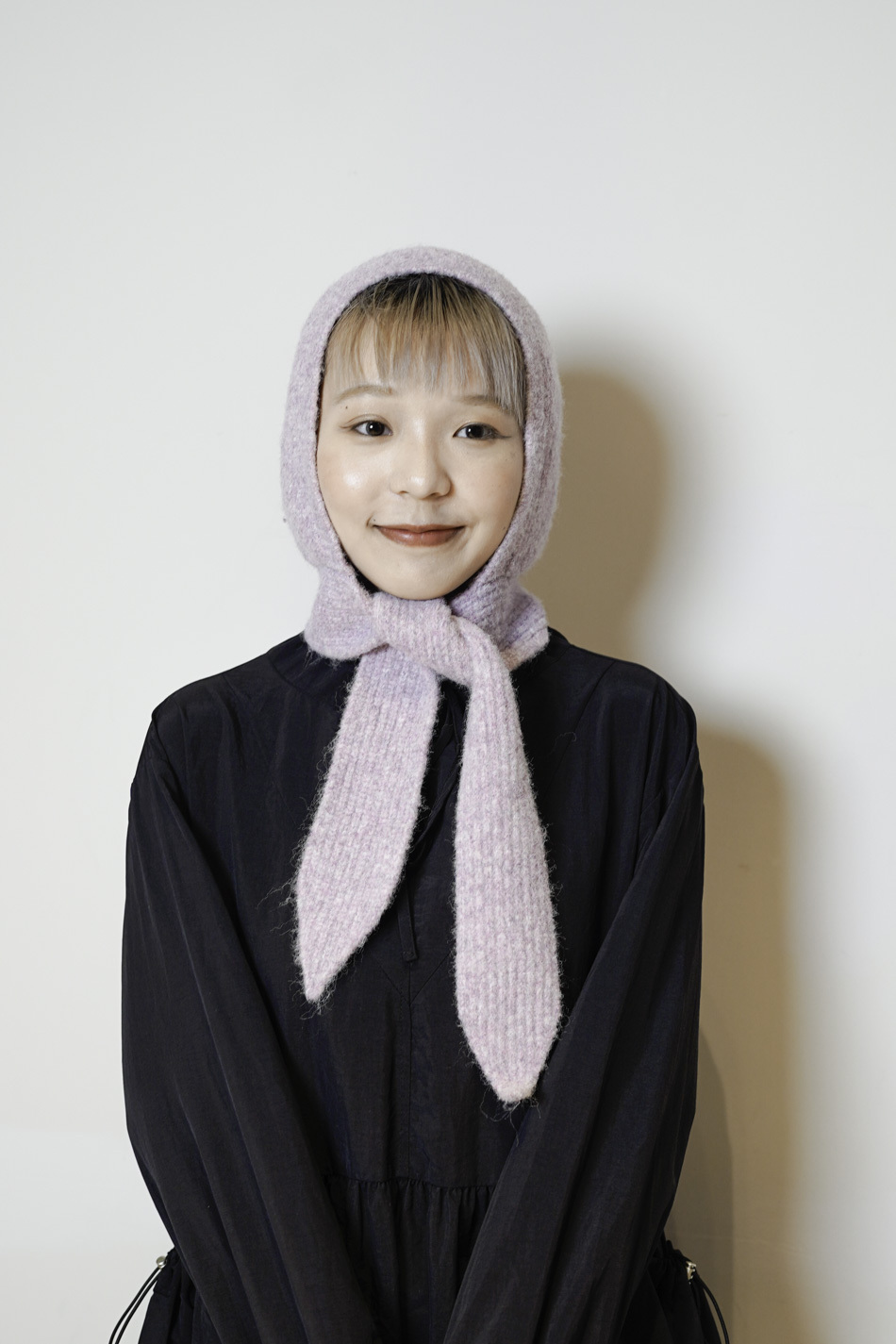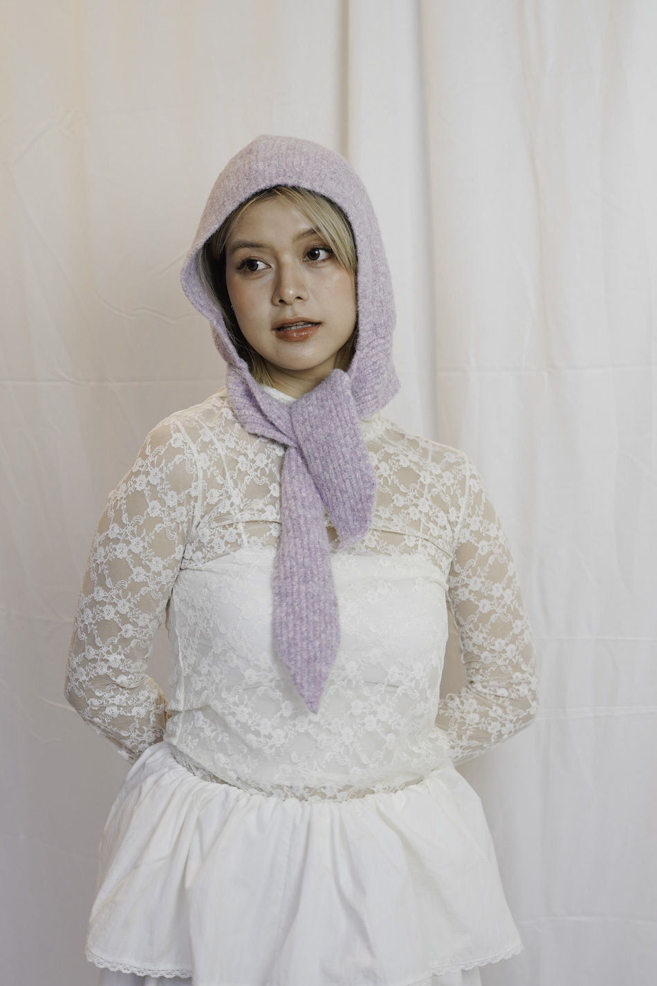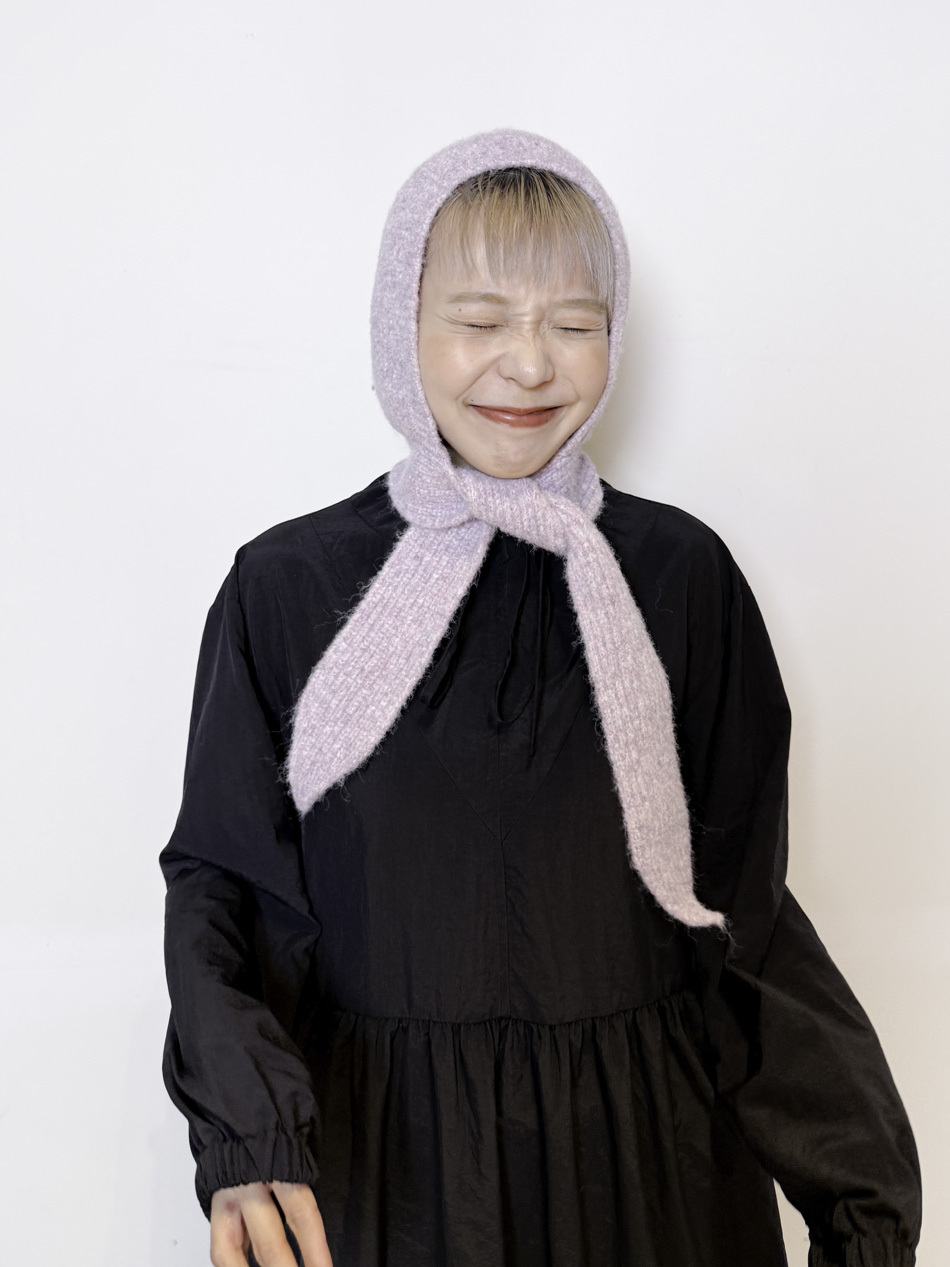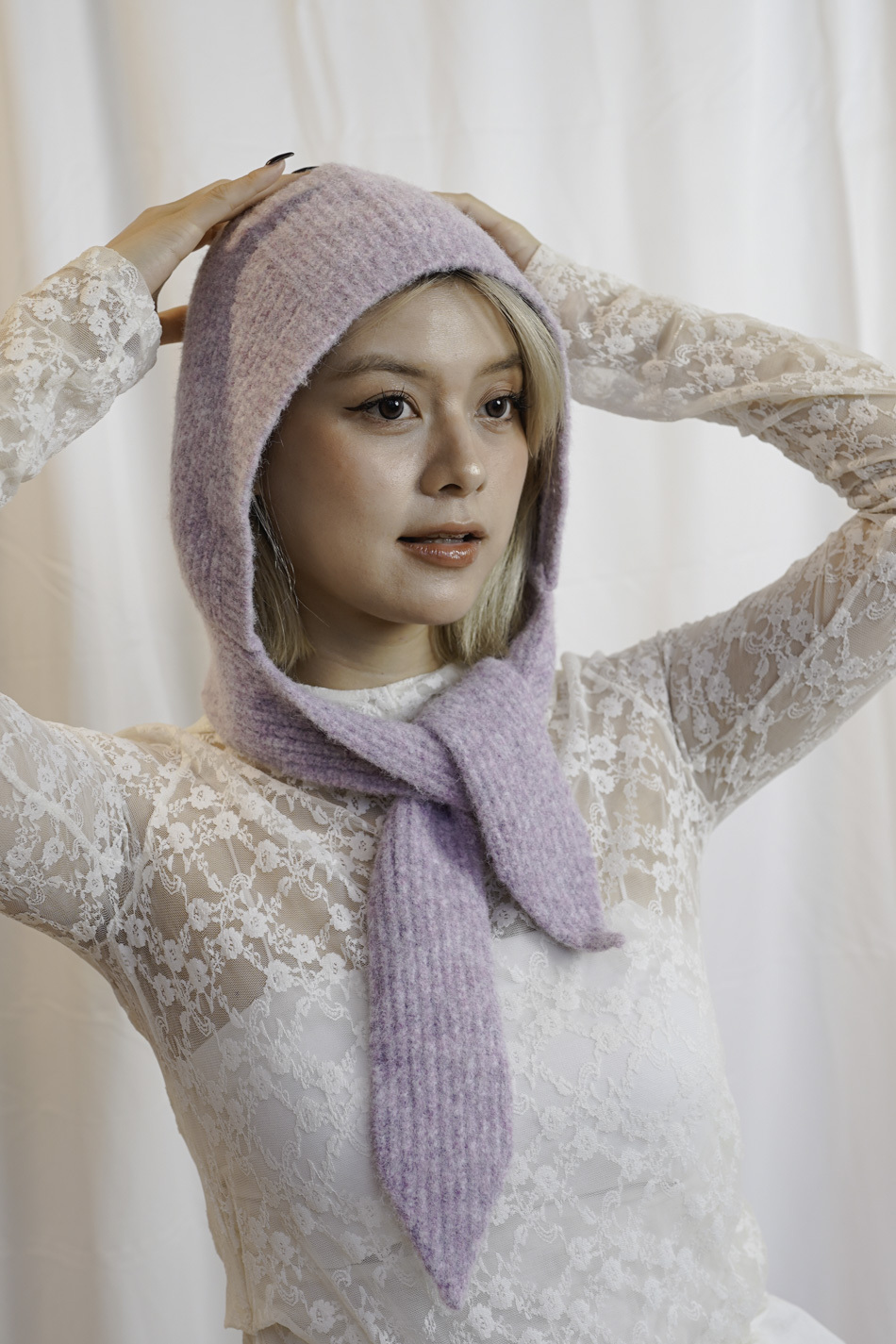 Kuromi hat with little scarf - 8% wool (PINK/GREY/BLUE)