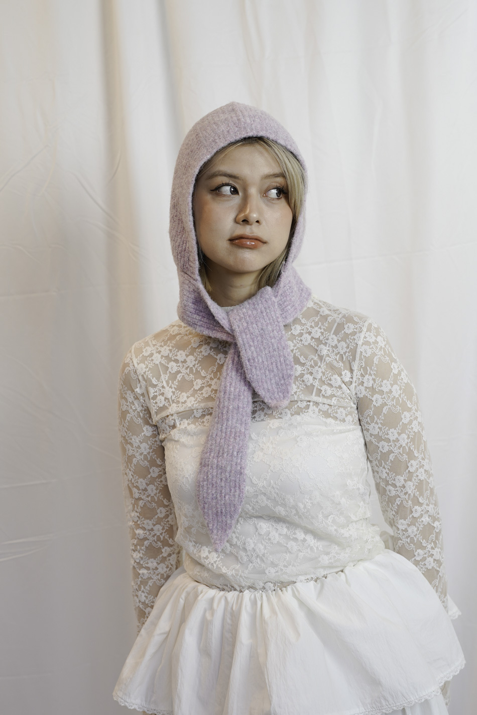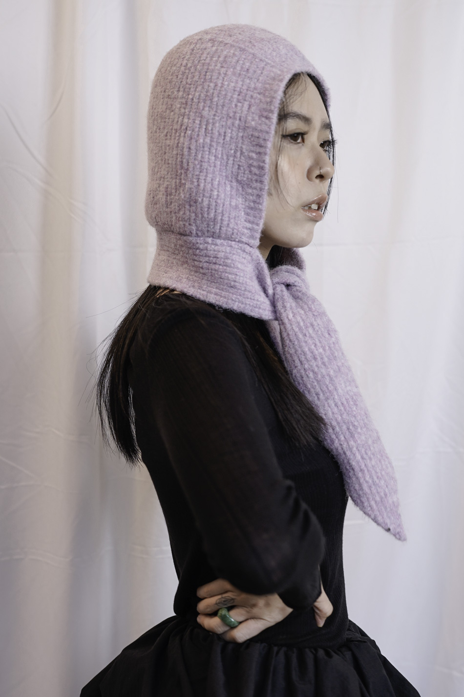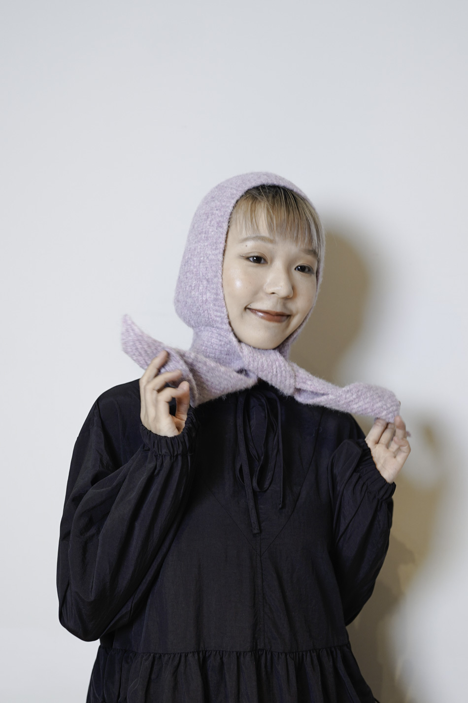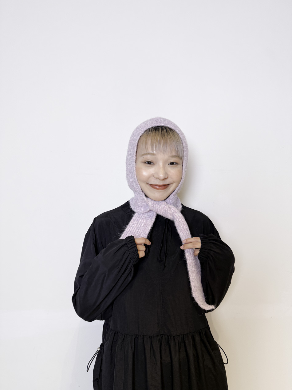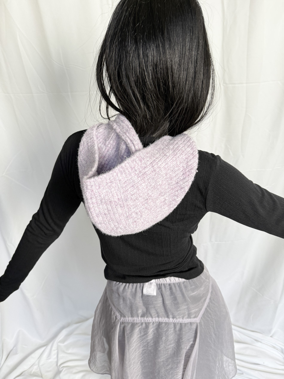 Kuromi hat with little scarf - 8% wool (PINK/GREY/BLUE)