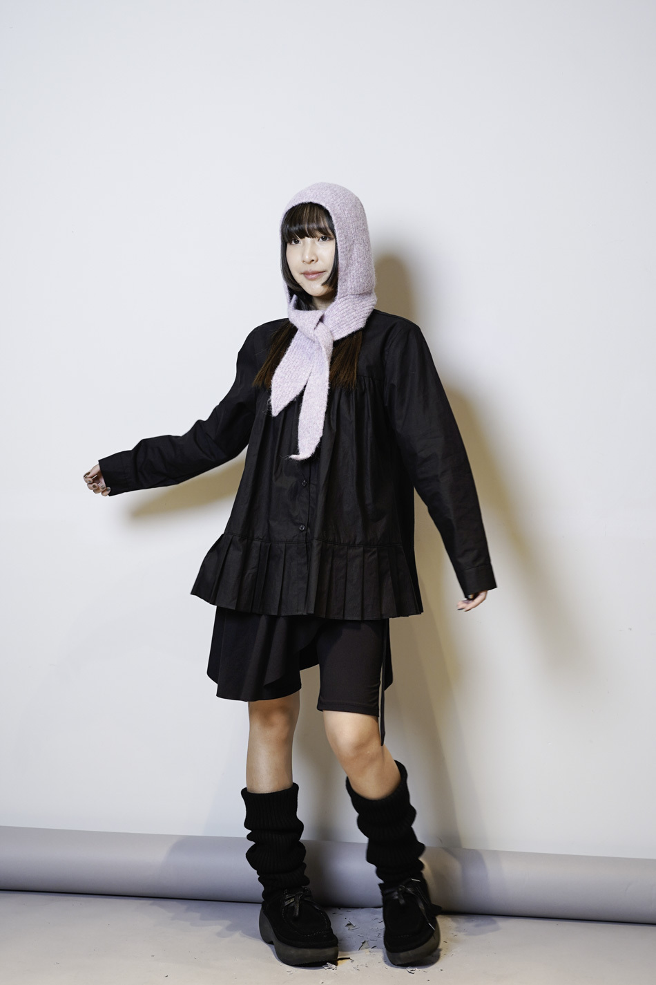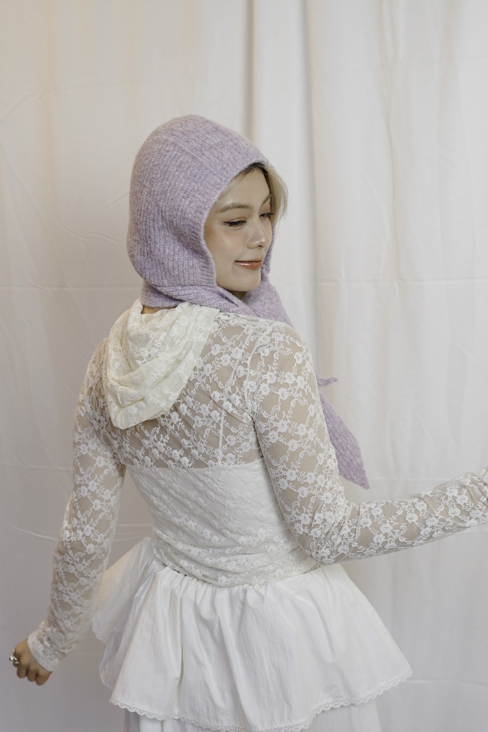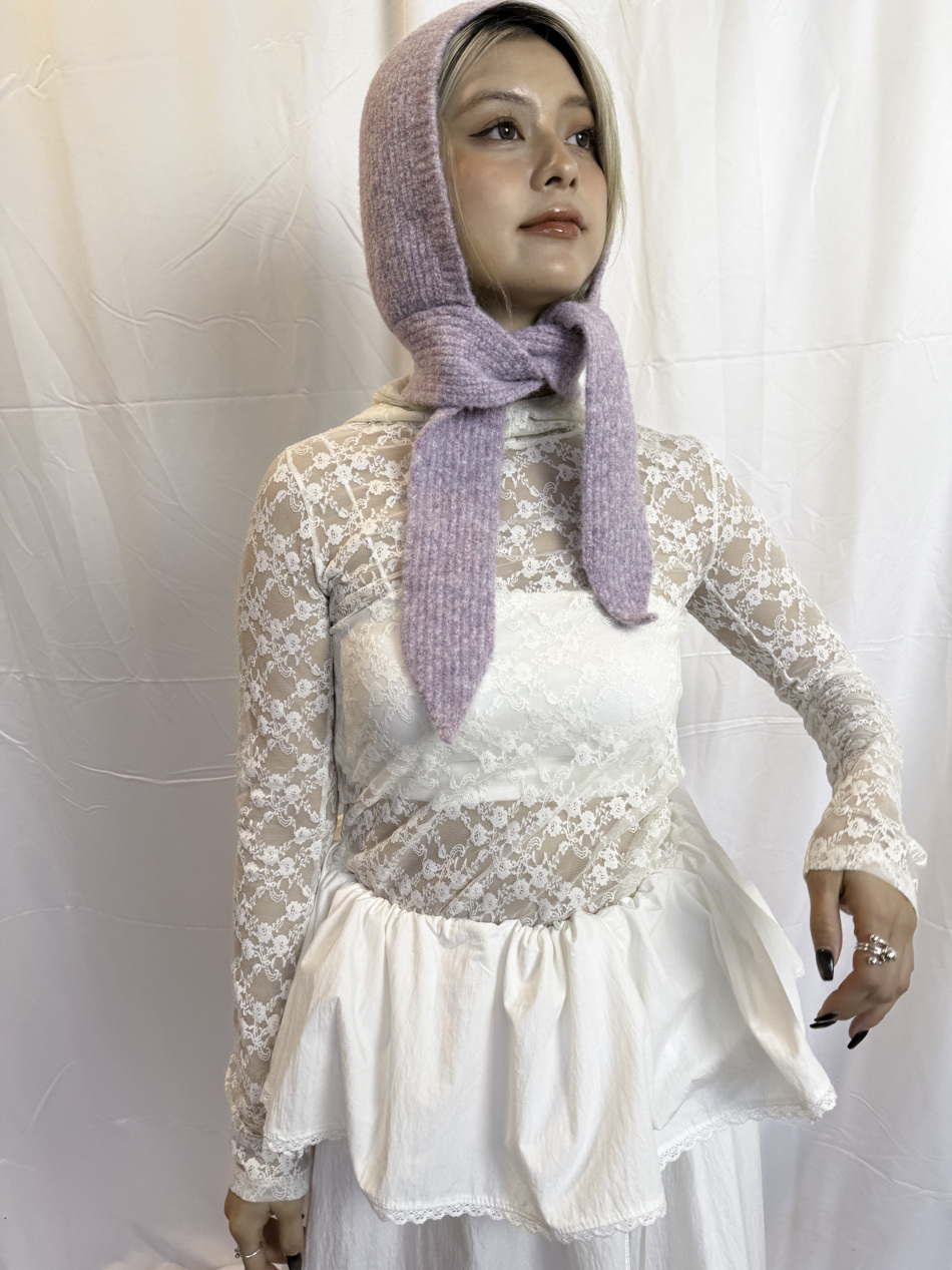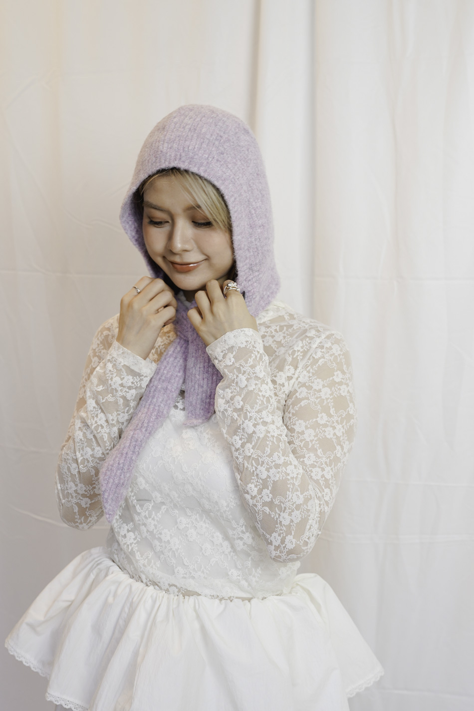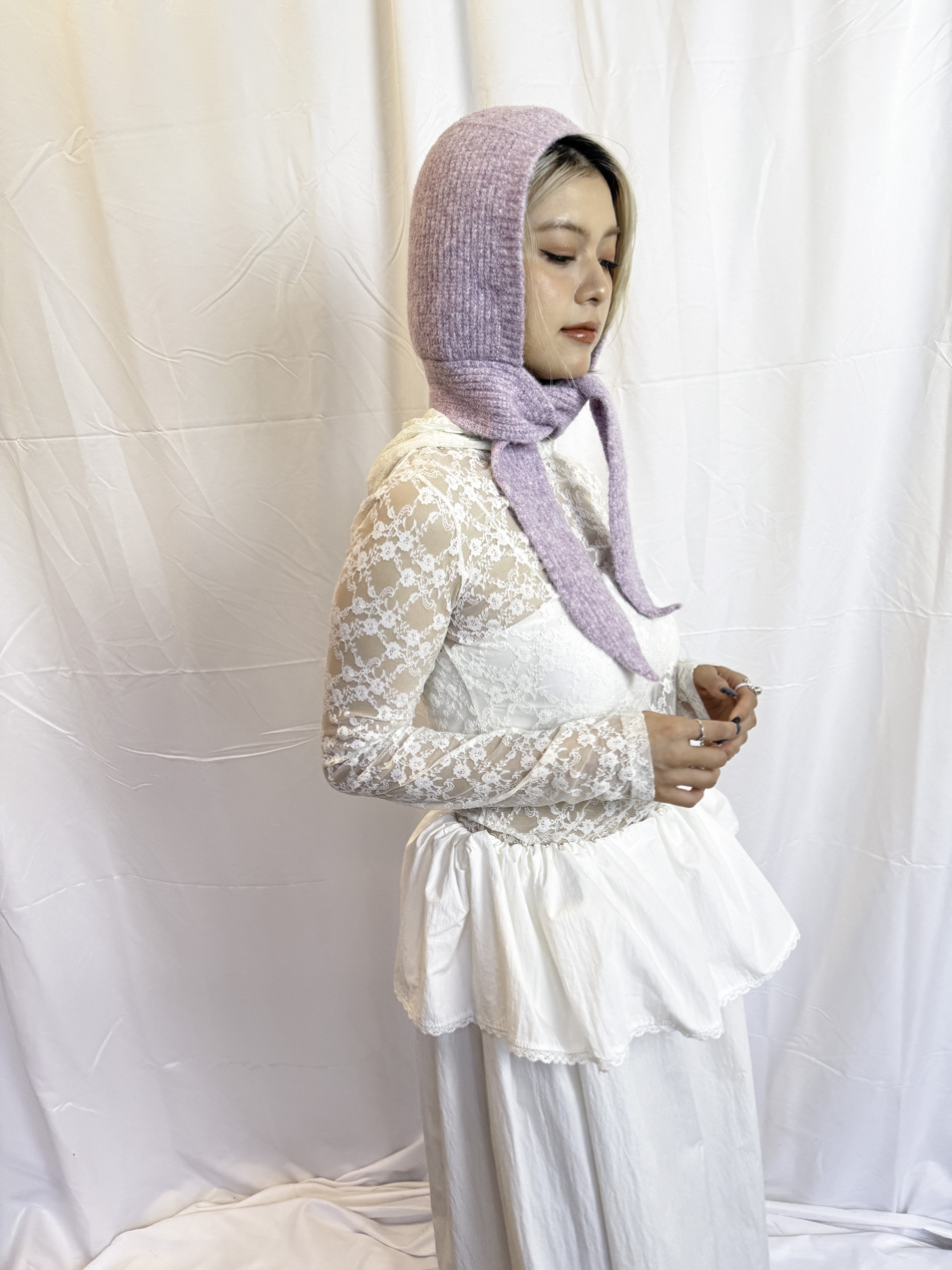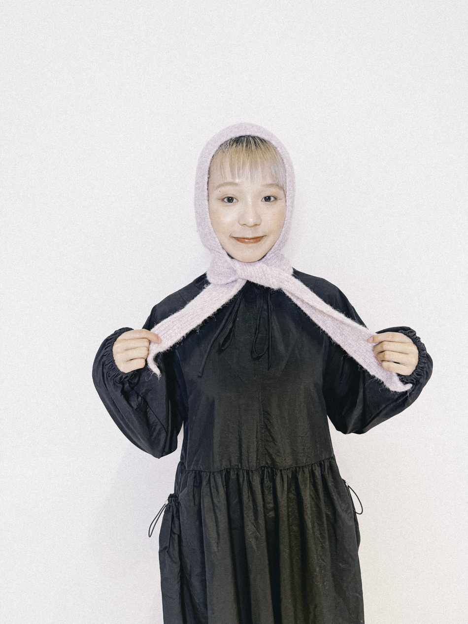 Kuromi hat with little scarf - 8% wool (PINK/GREY/BLUE)