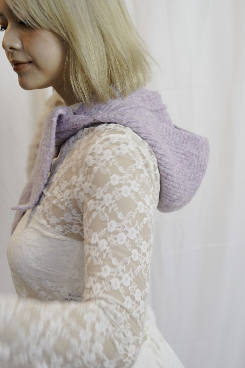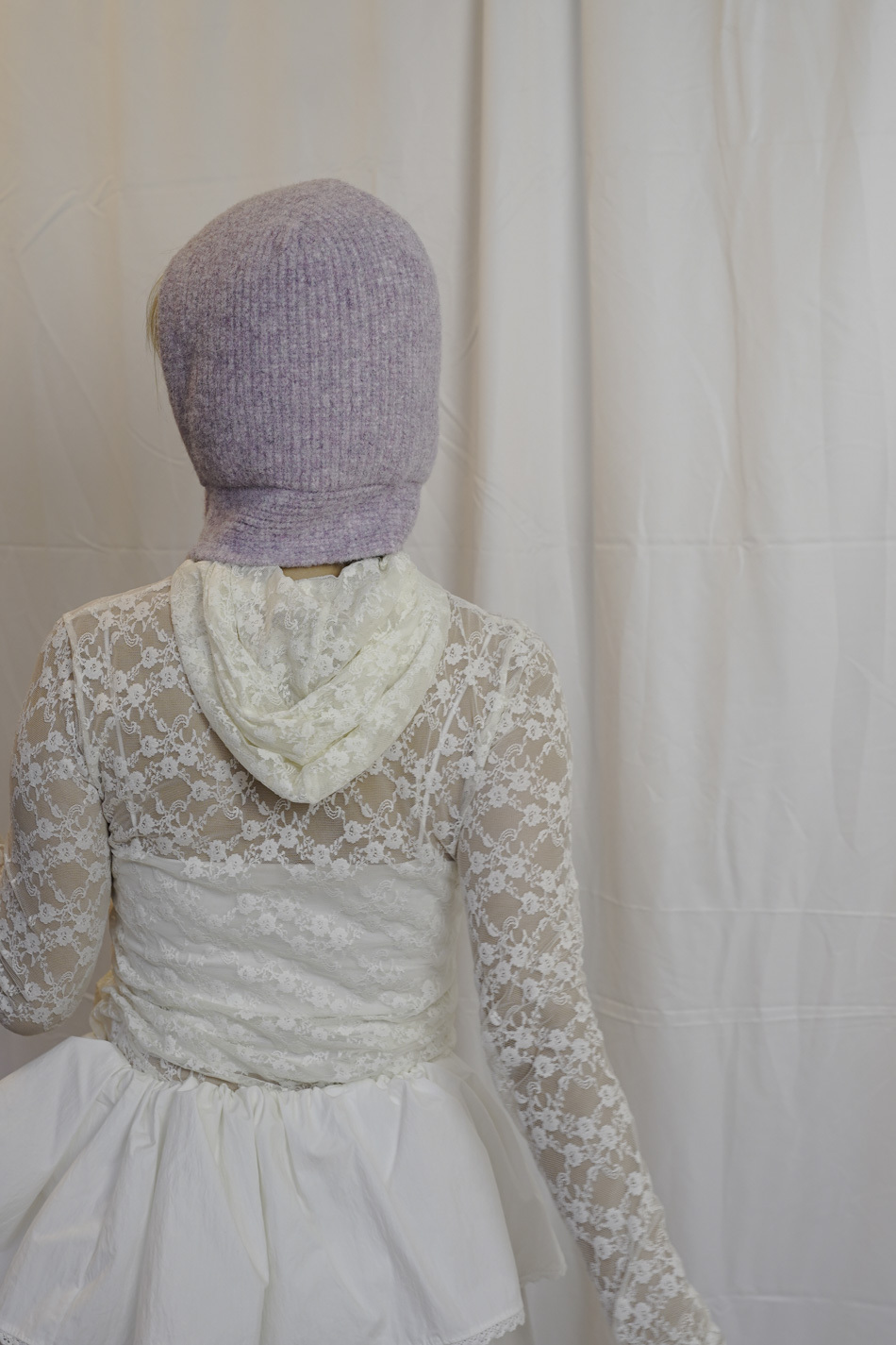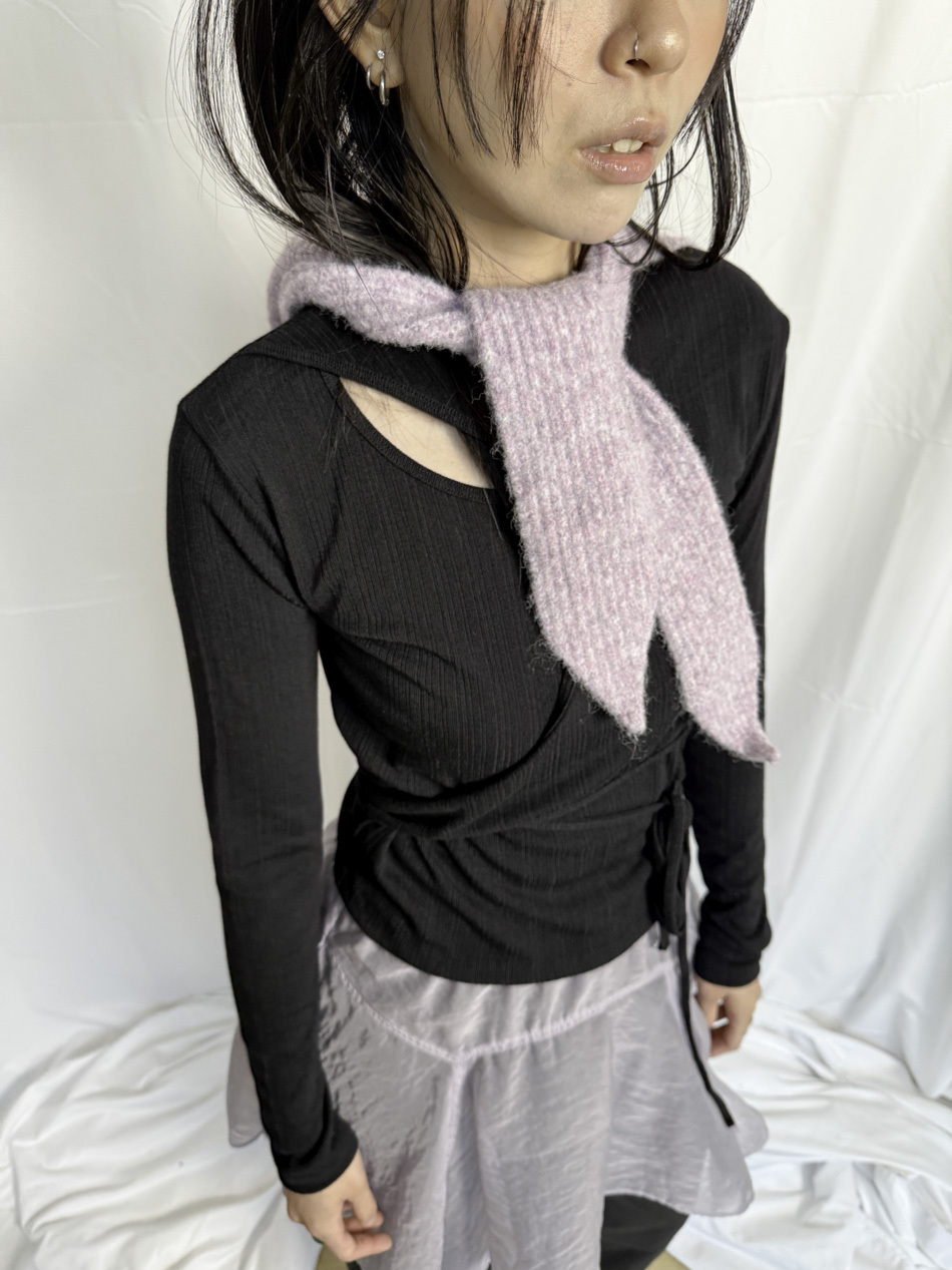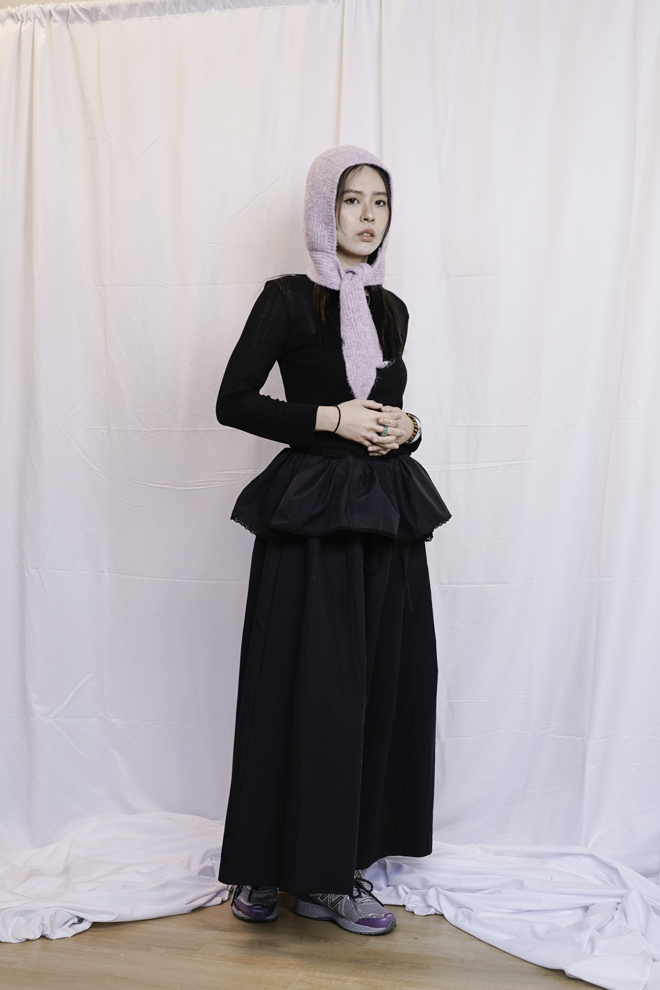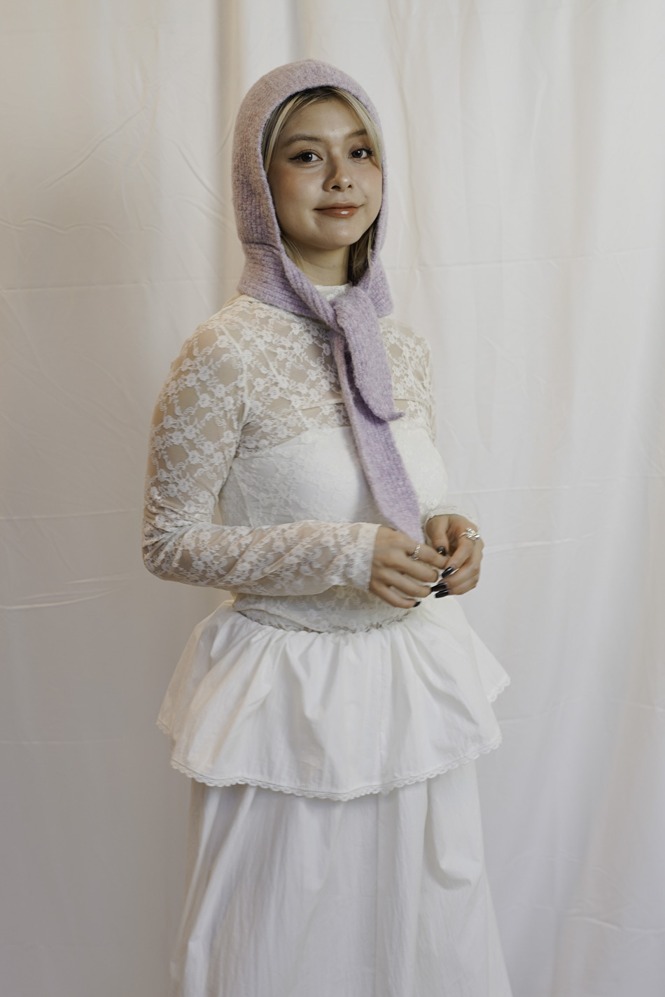 Kuromi hat with little scarf - 8% wool (PINK/GREY/BLUE)