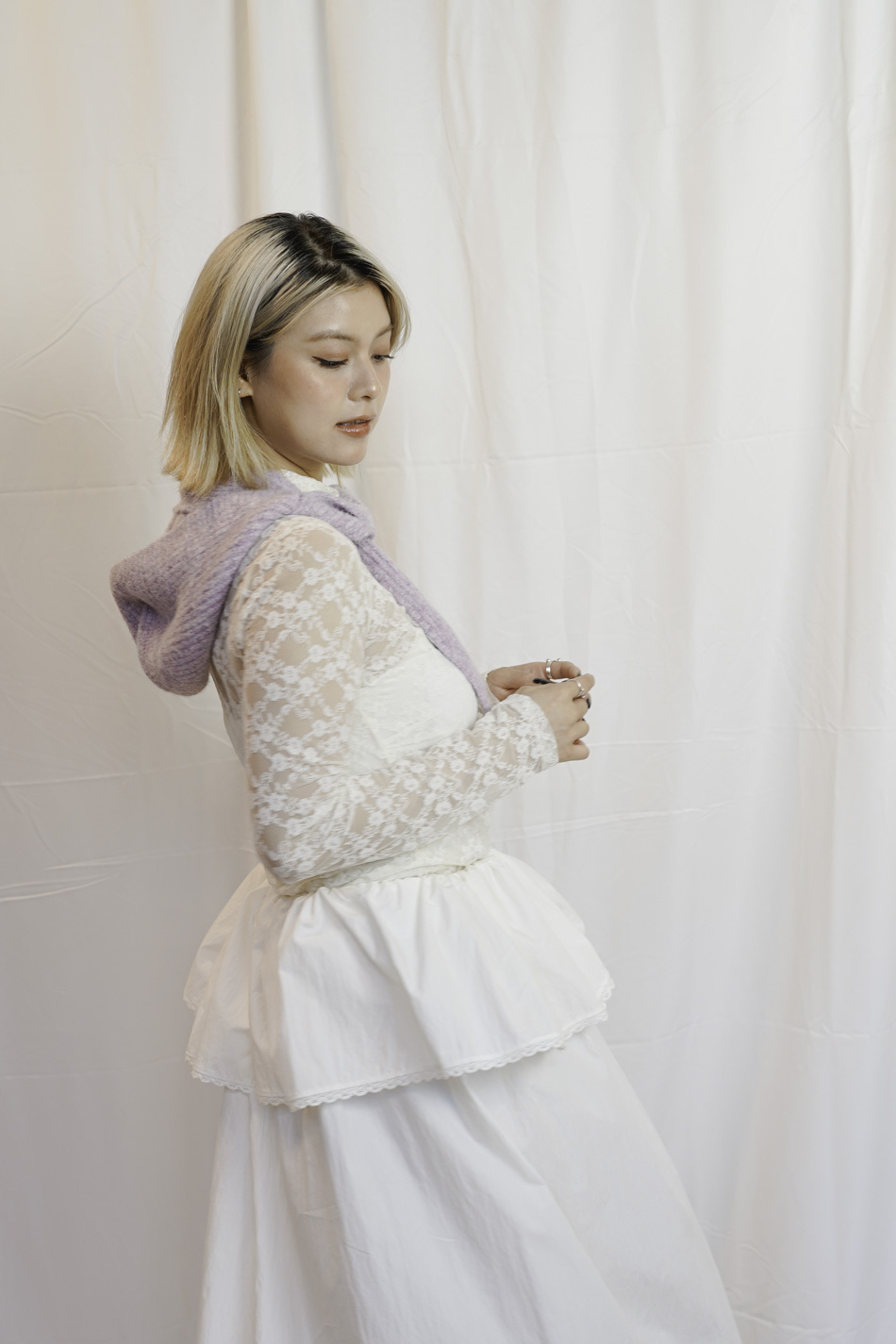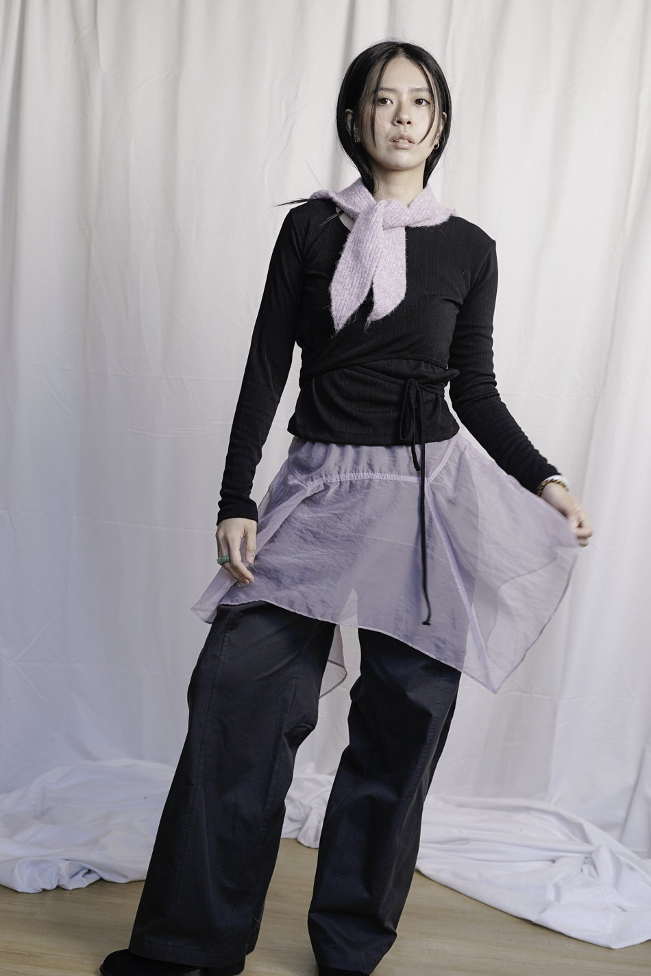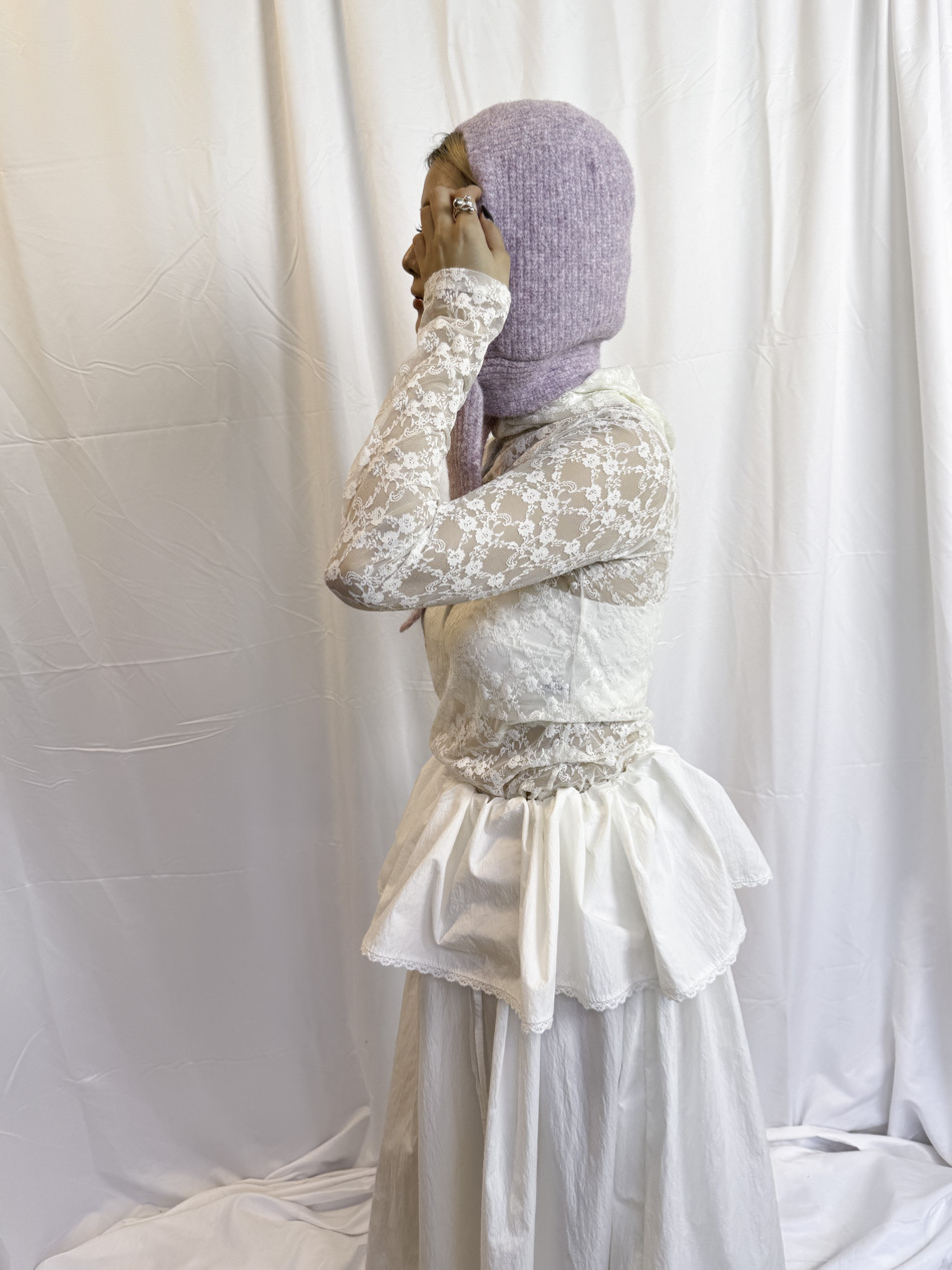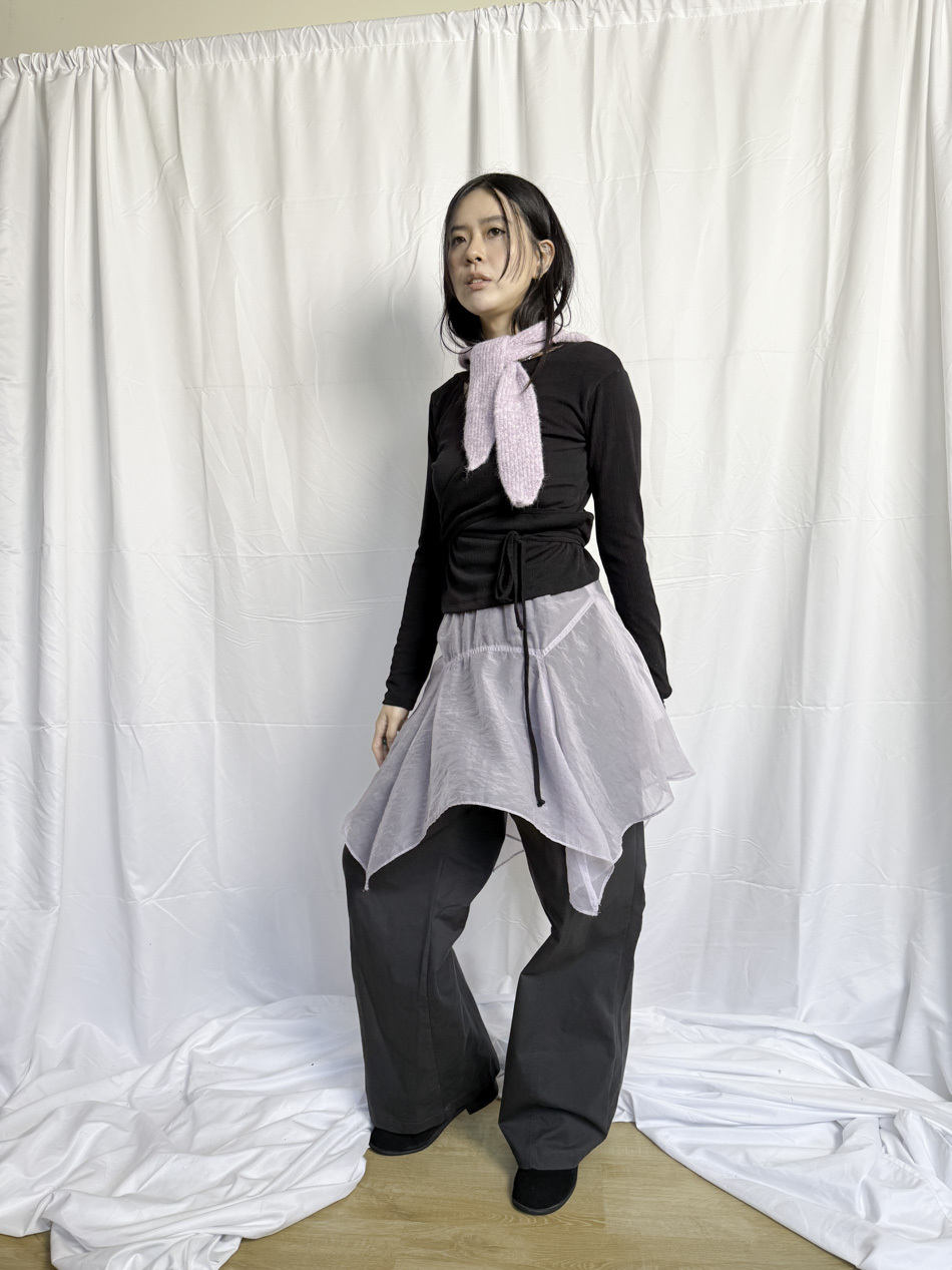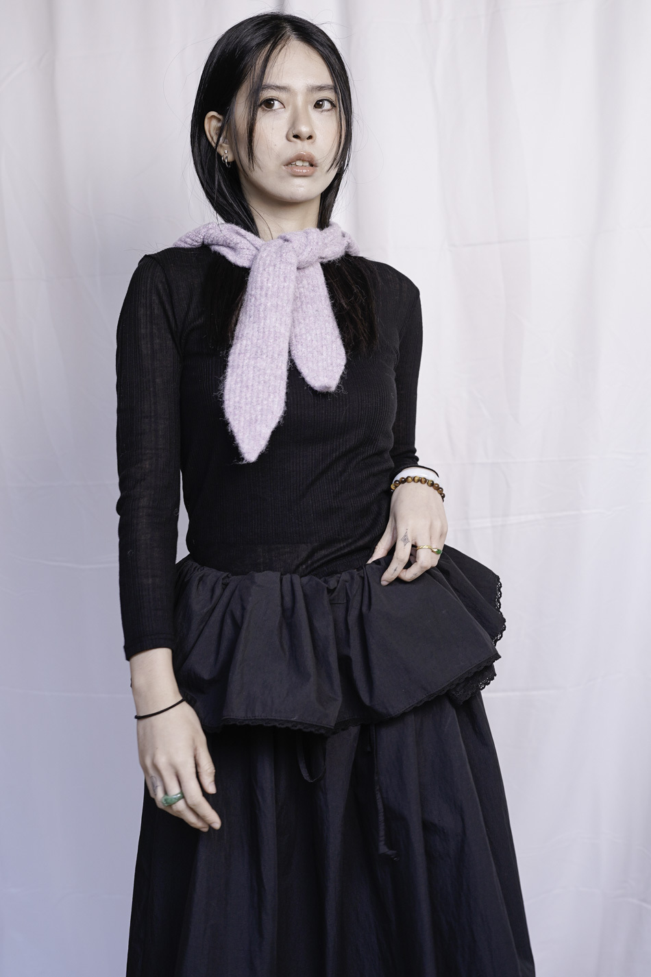 Kuromi hat with little scarf - 8% wool (PINK/GREY/BLUE)
