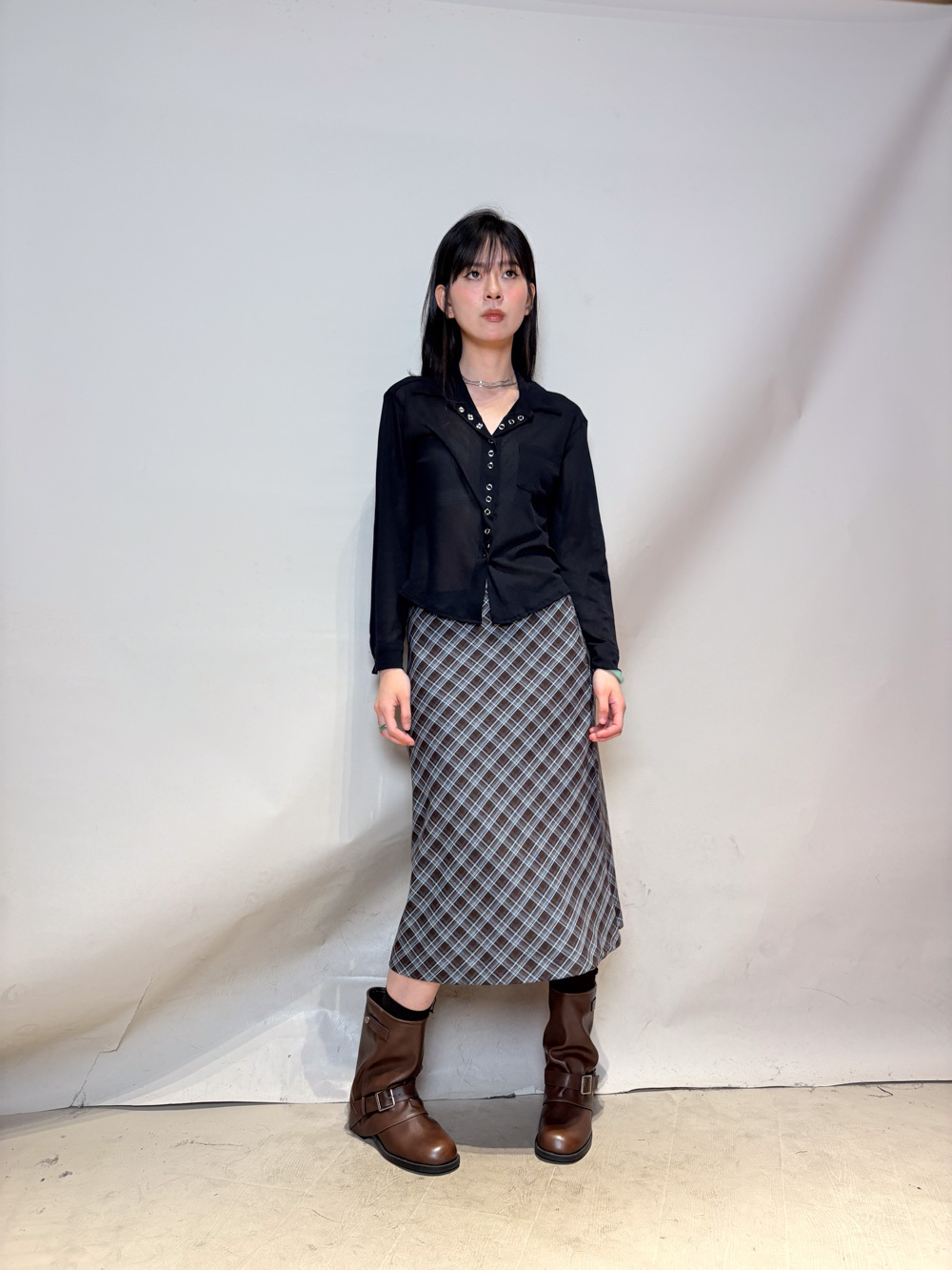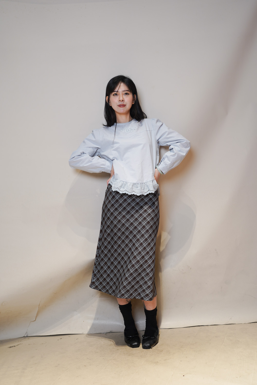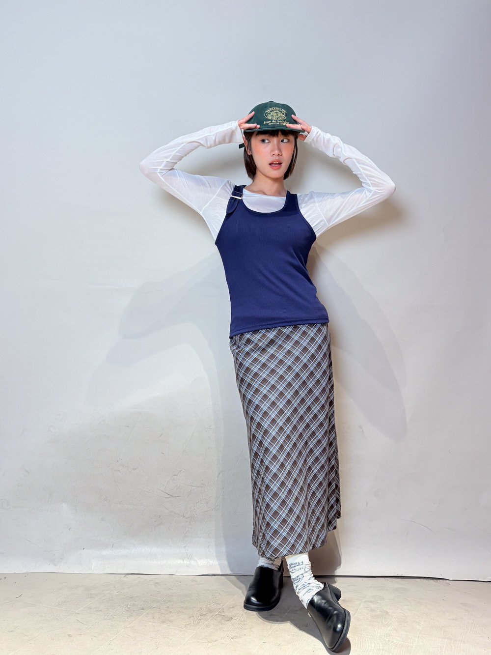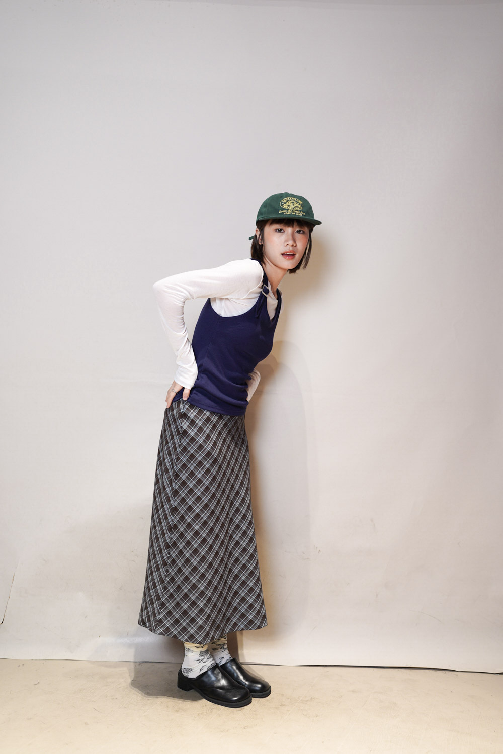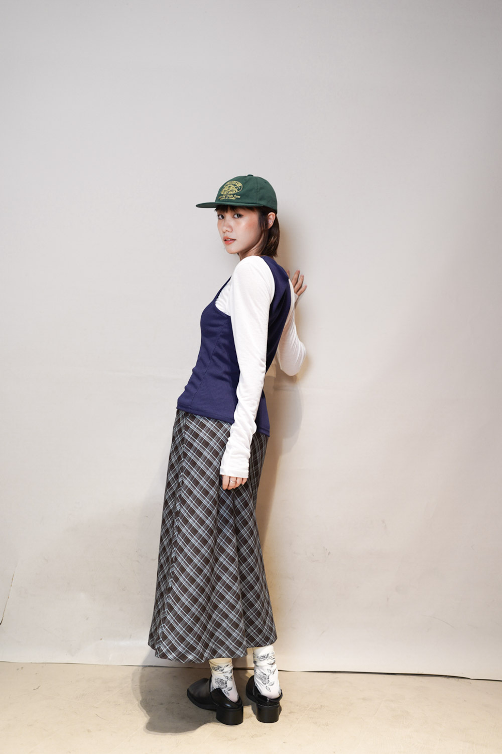 啡色撞藍色 斜格子設計/格子經典不過時元素 復古設計感/