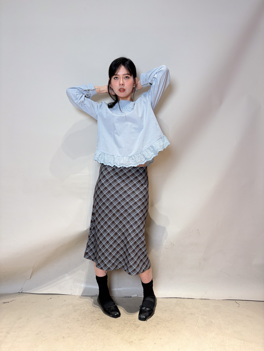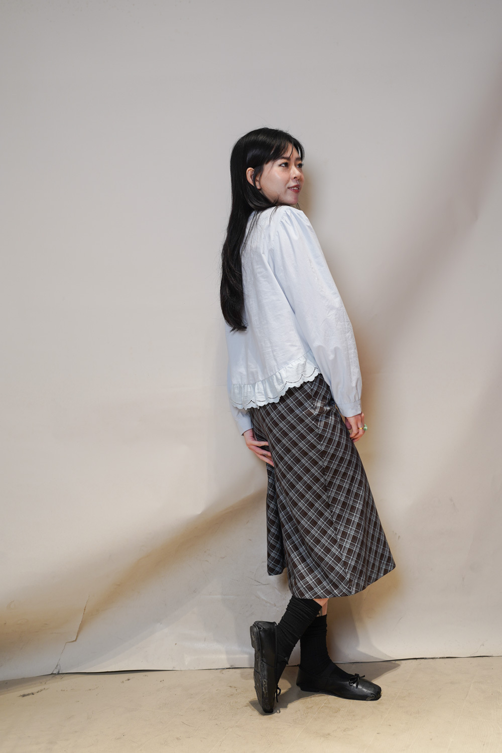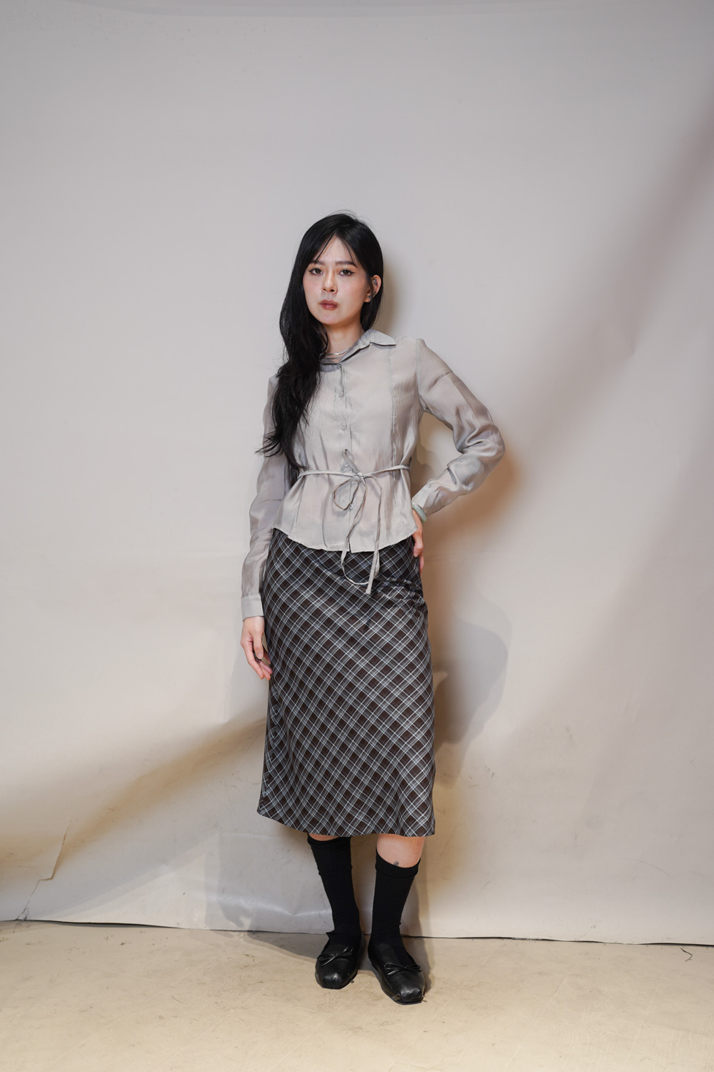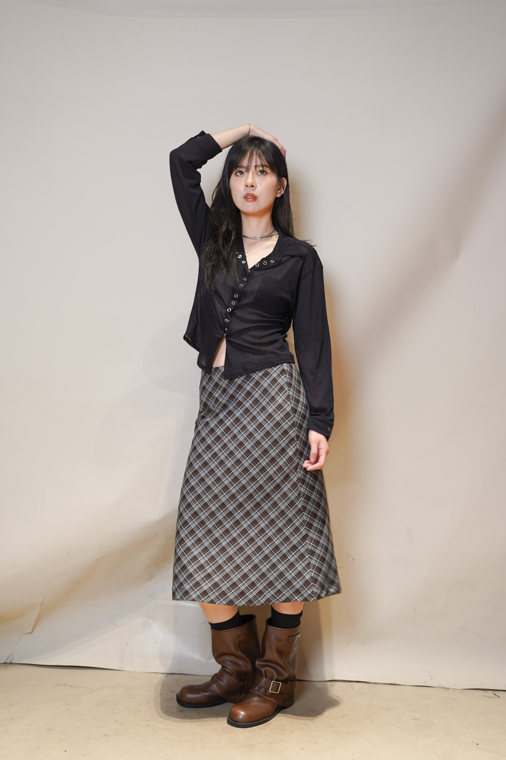 啡色撞藍色 斜格子設計/格子經典不過時元素 復古設計感/