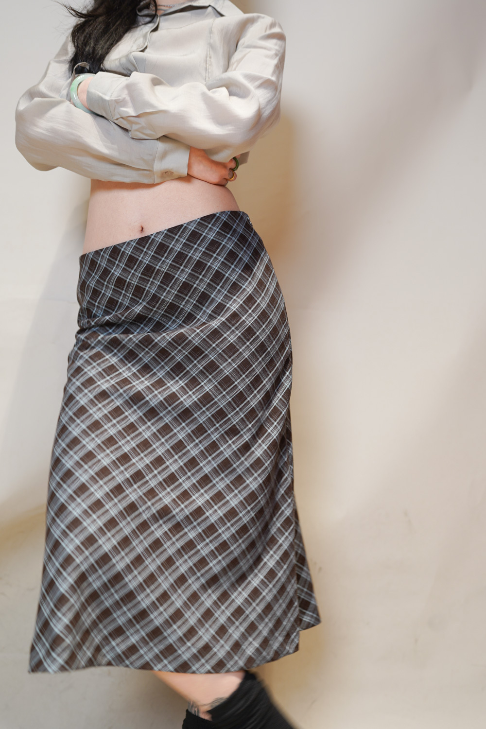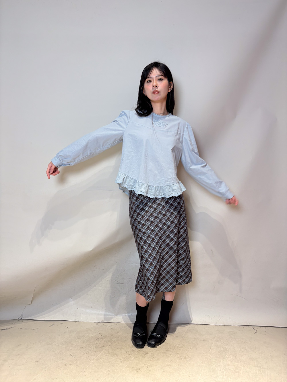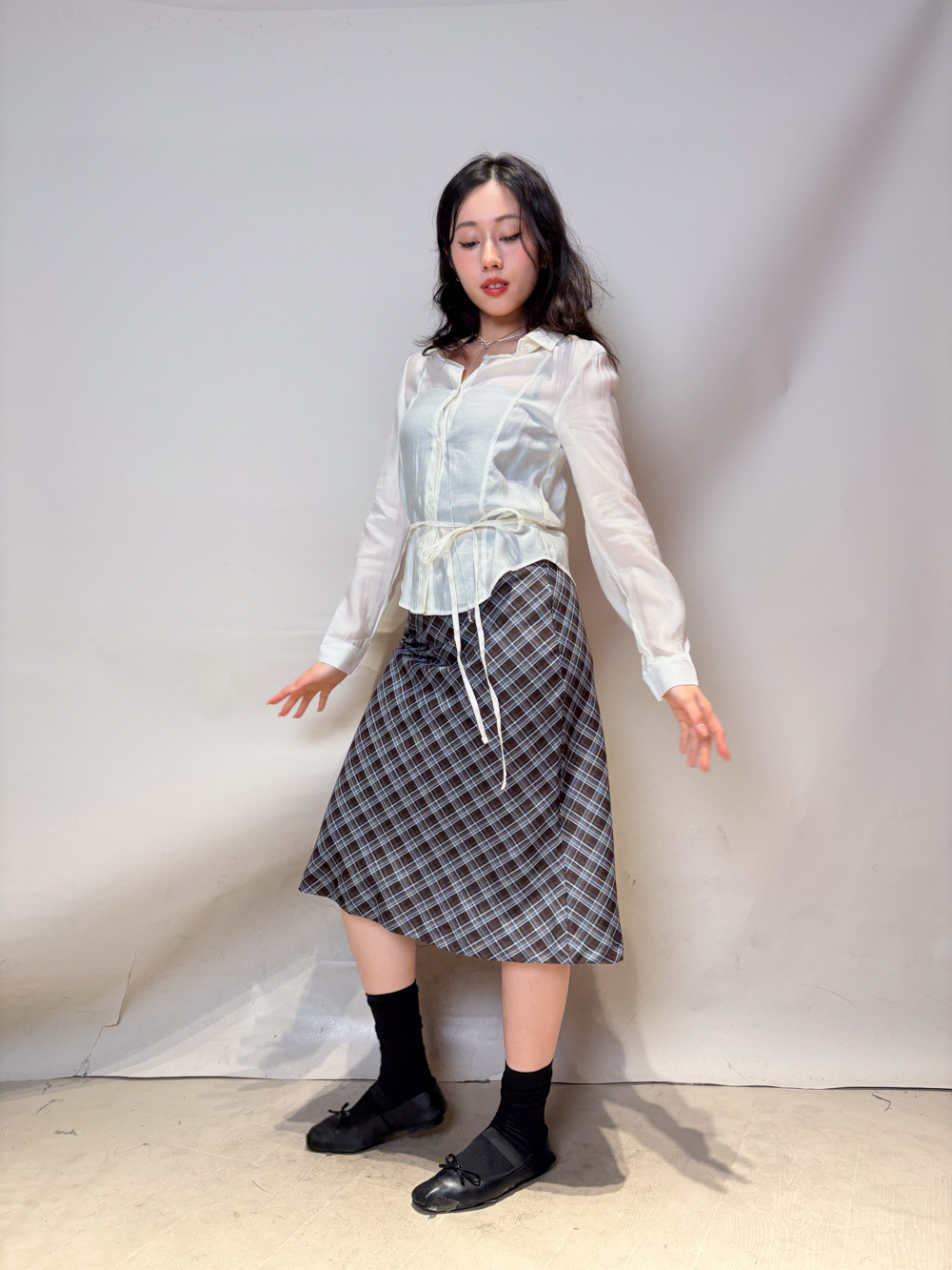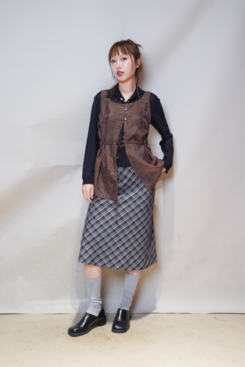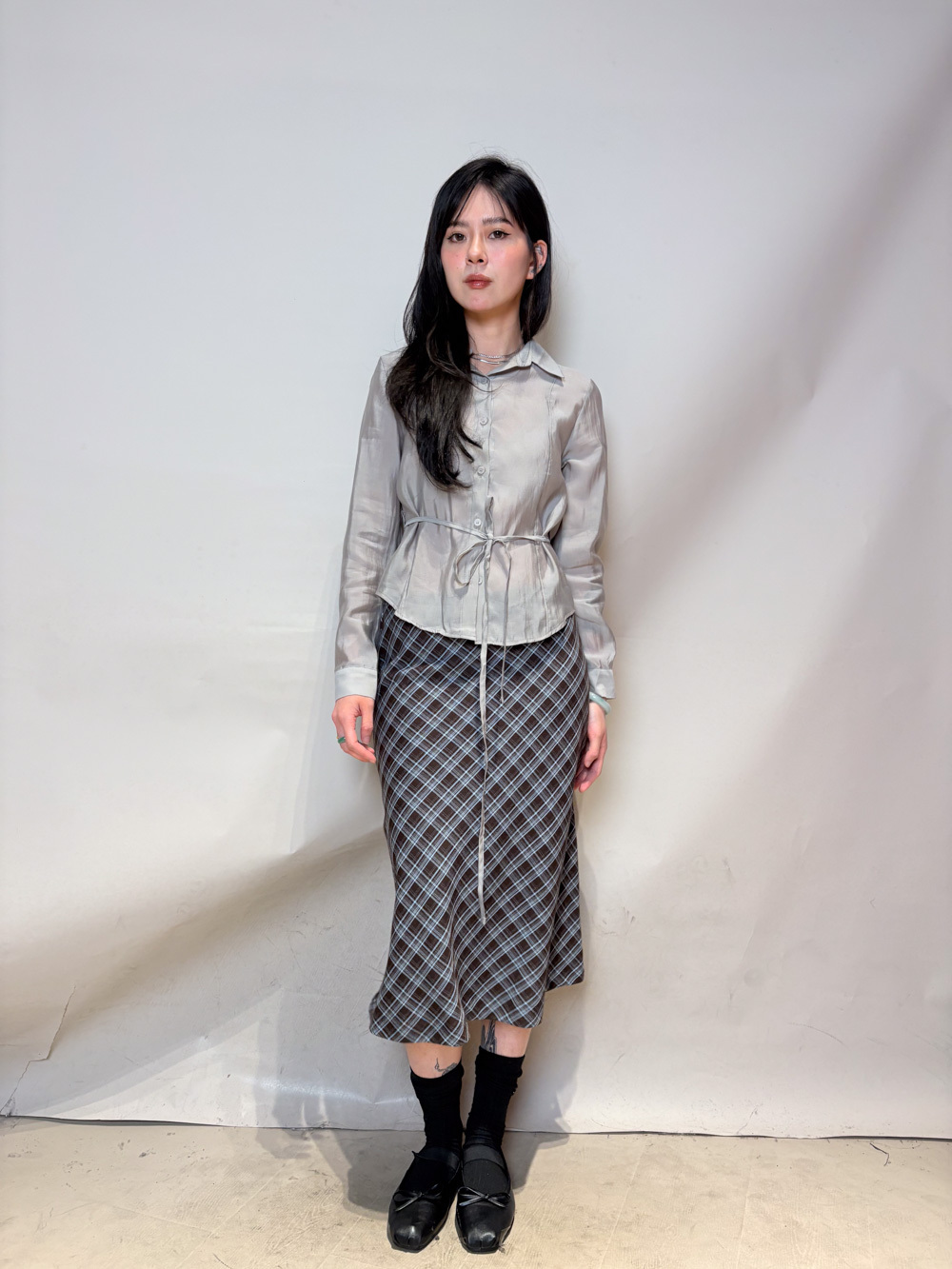 啡色撞藍色 斜格子設計/格子經典不過時元素 復古設計感/