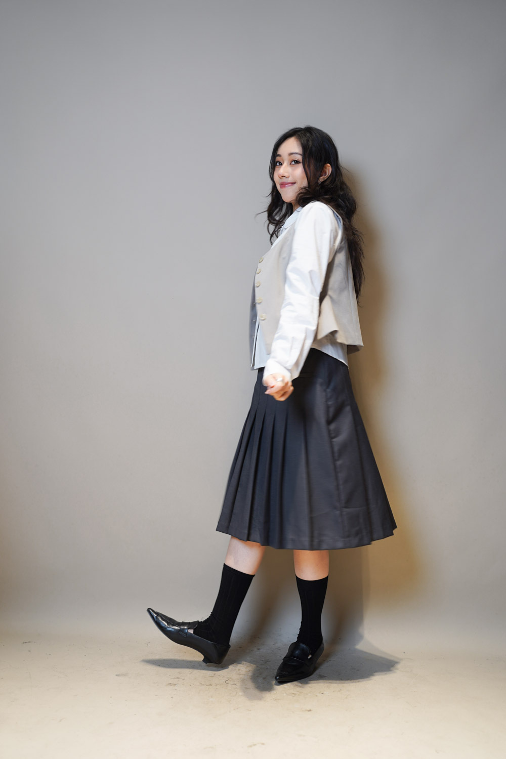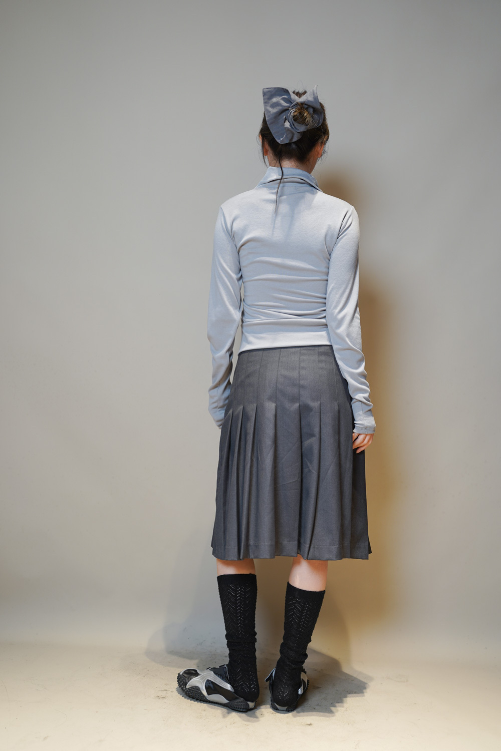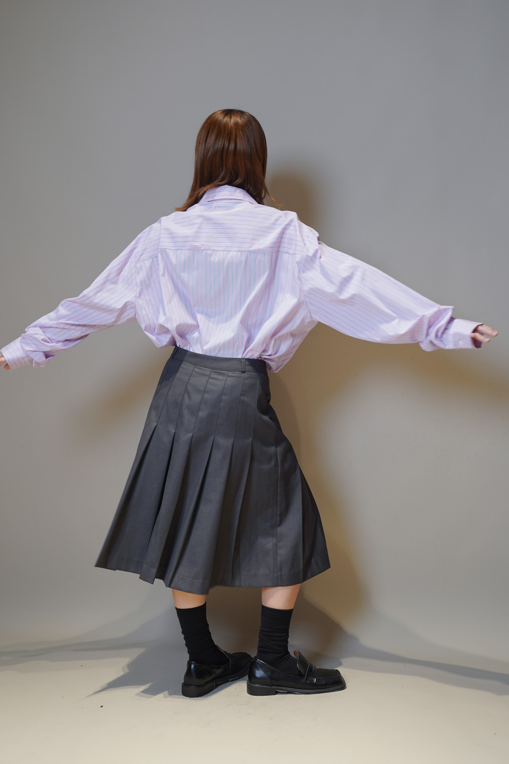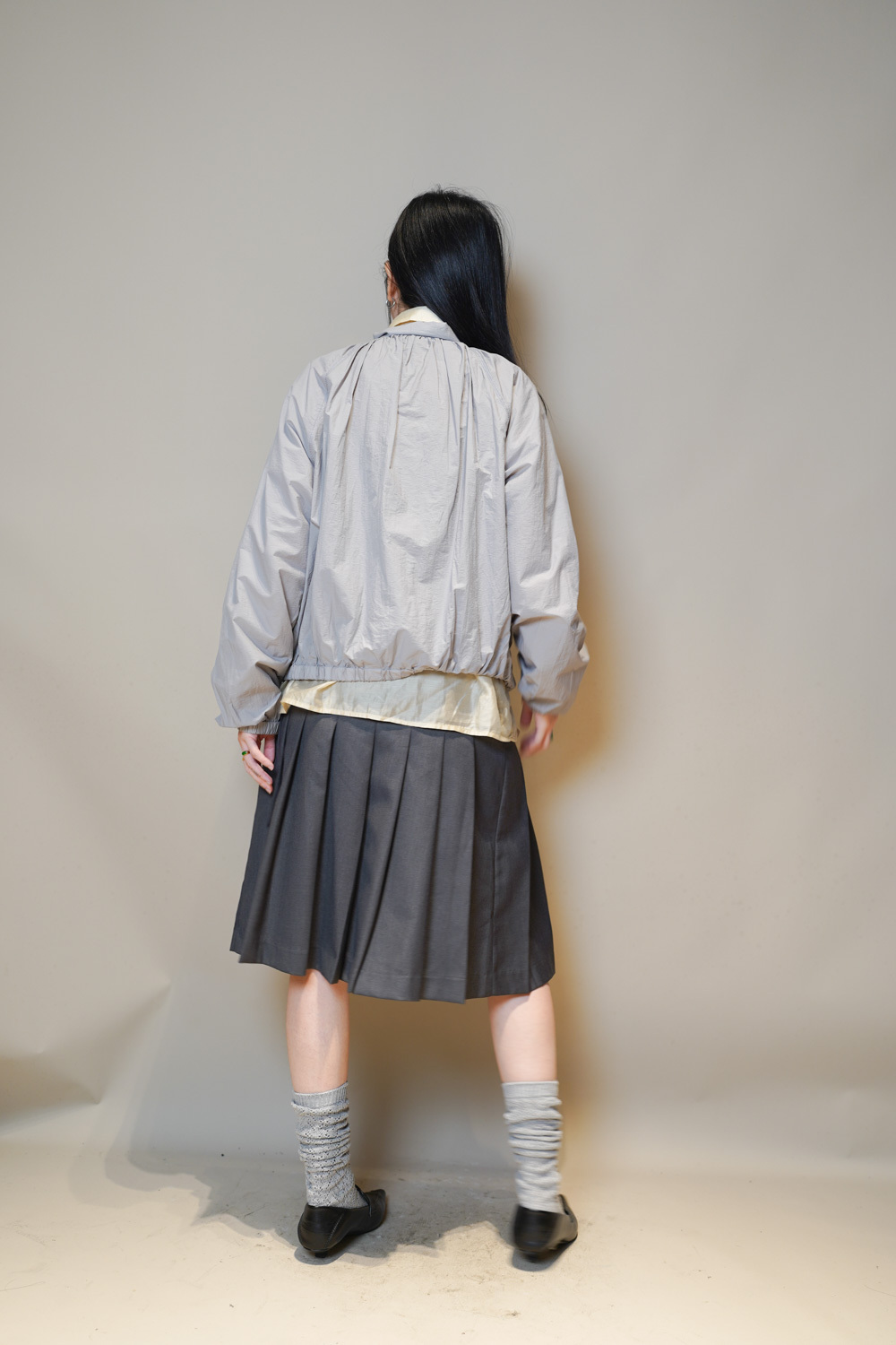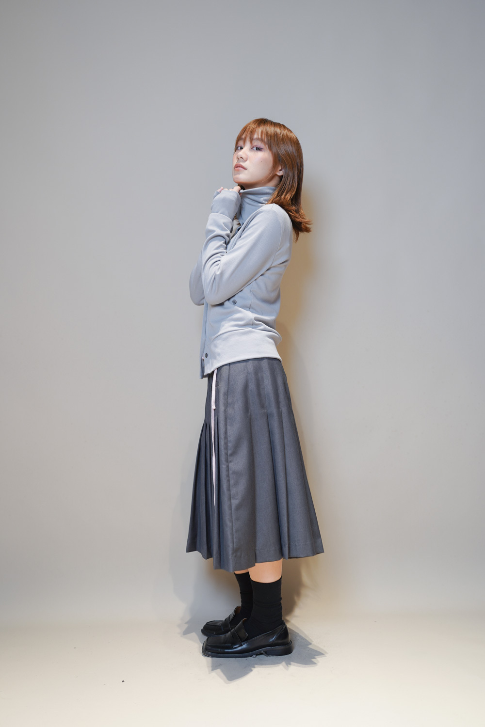 Love~Mid length pleated pocket skirt (GREY/BLACK)-S/M