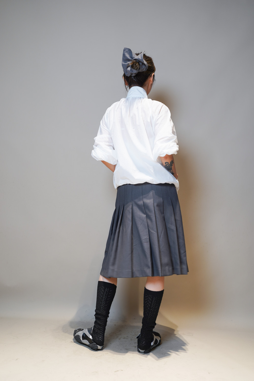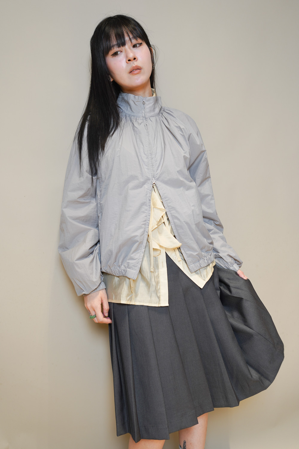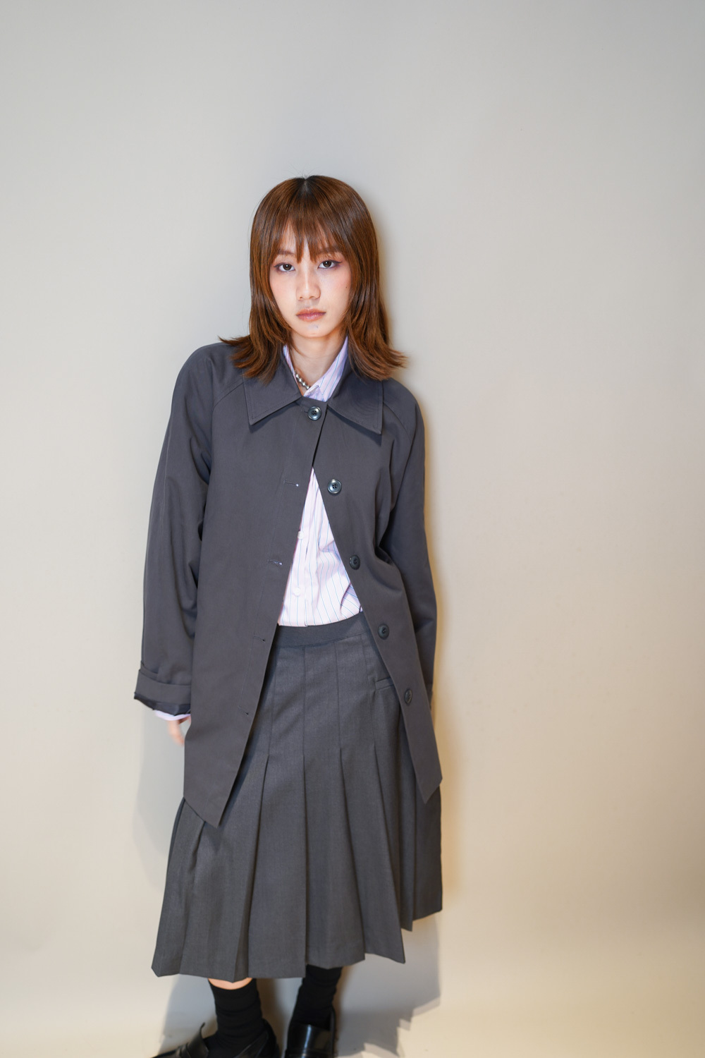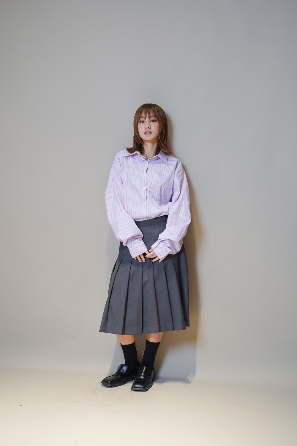 Love~Mid length pleated pocket skirt (GREY/BLACK)-S/M