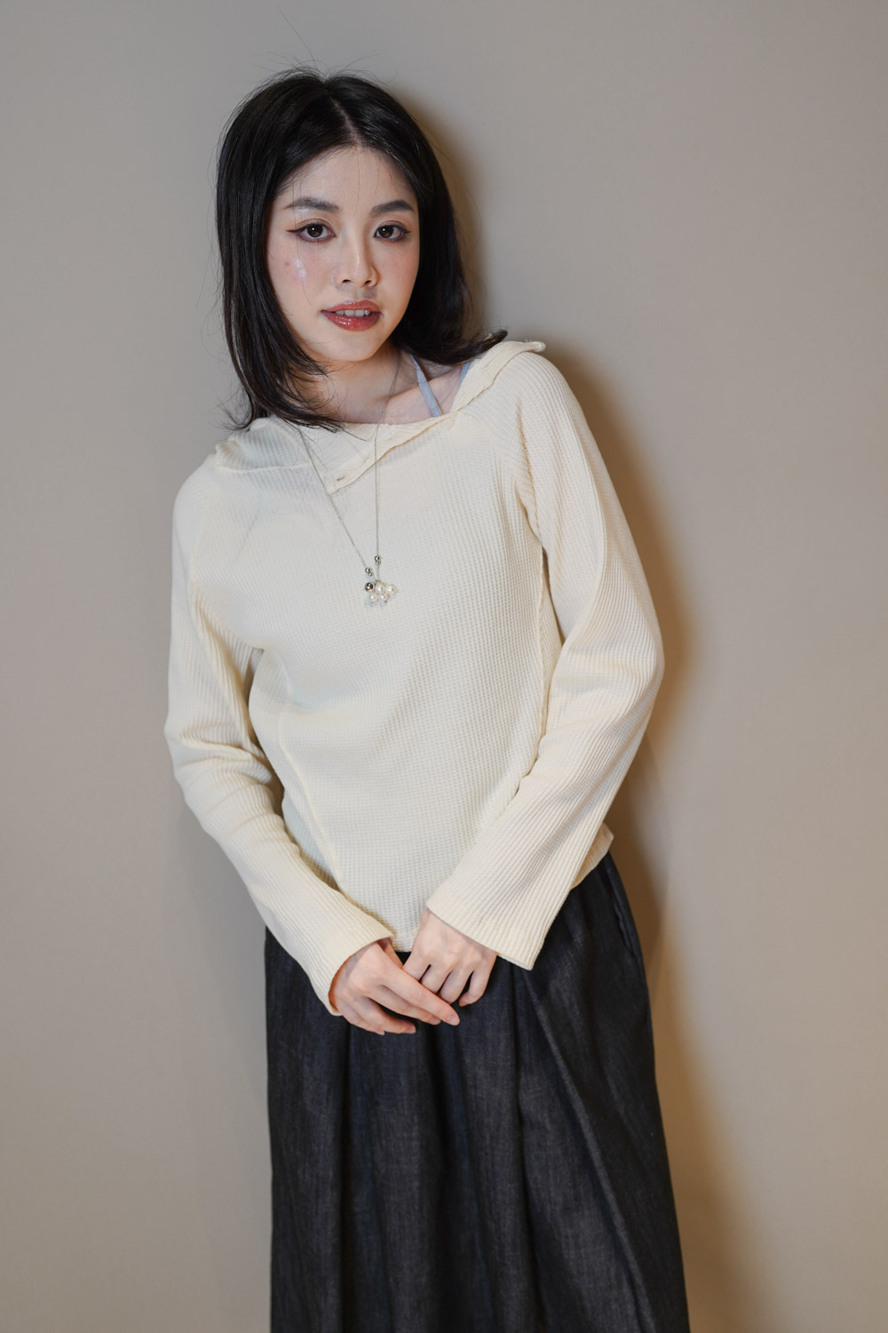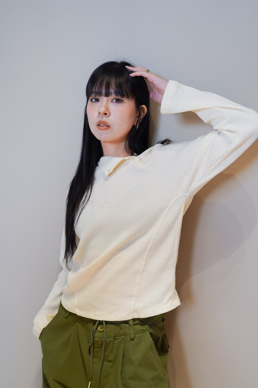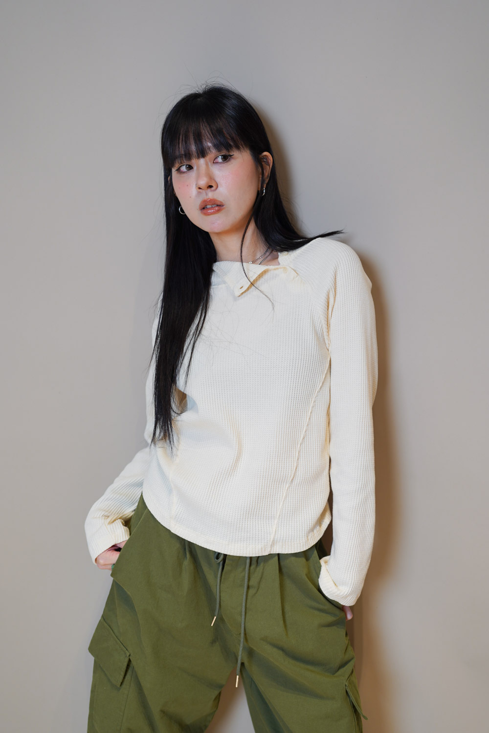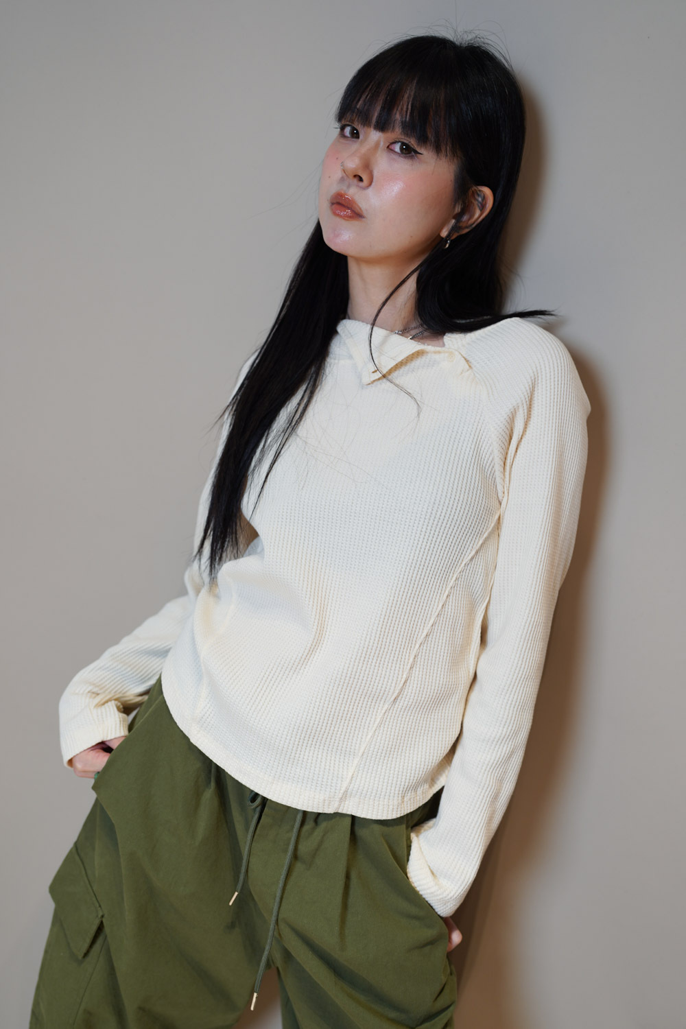 Love~Minimal Dune waffle top (CREAM/GREEN)