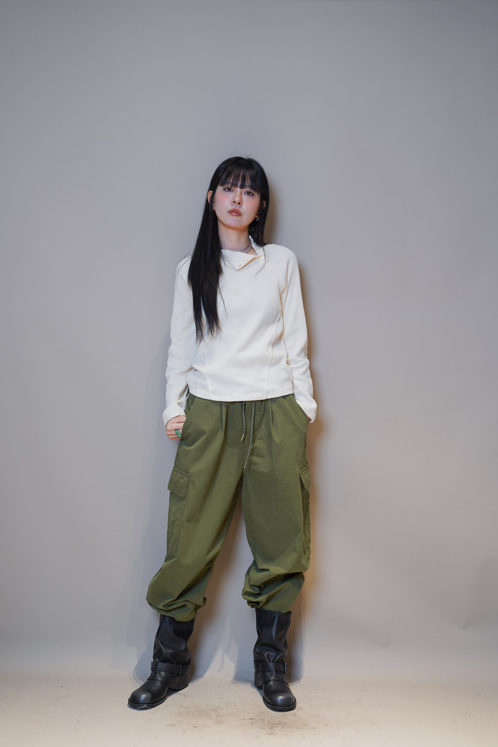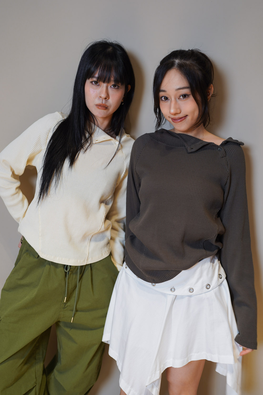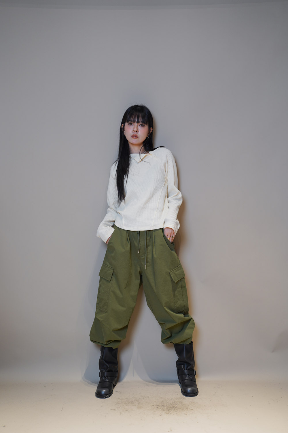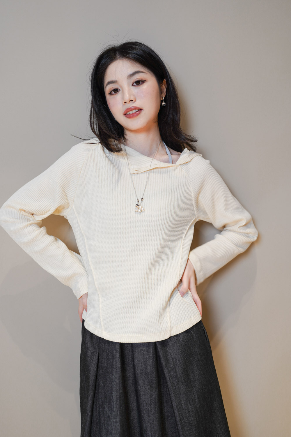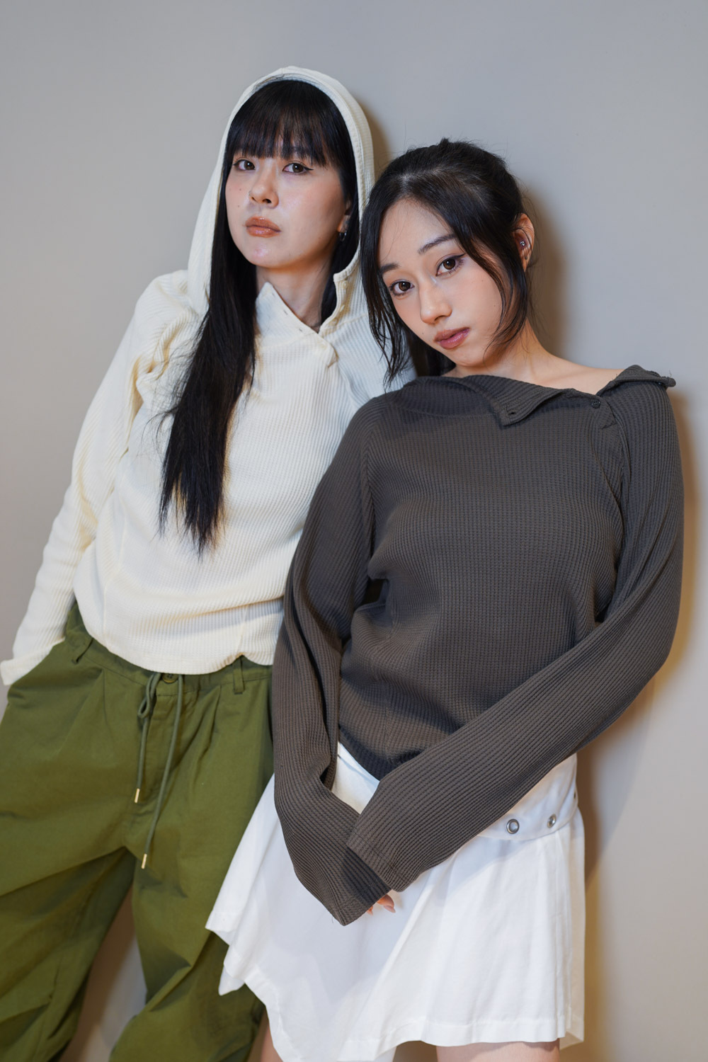 Love~Minimal Dune waffle top (CREAM/GREEN)