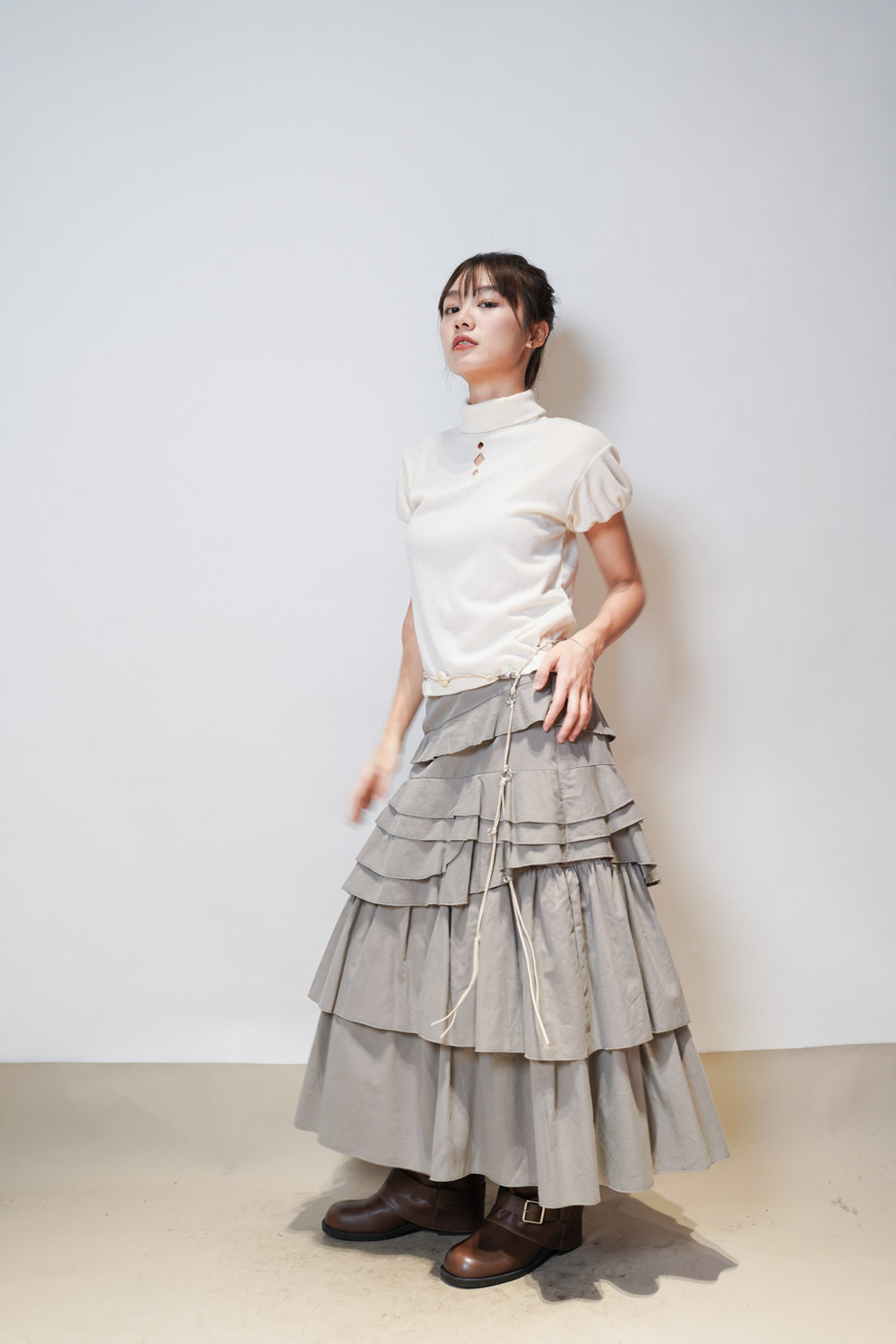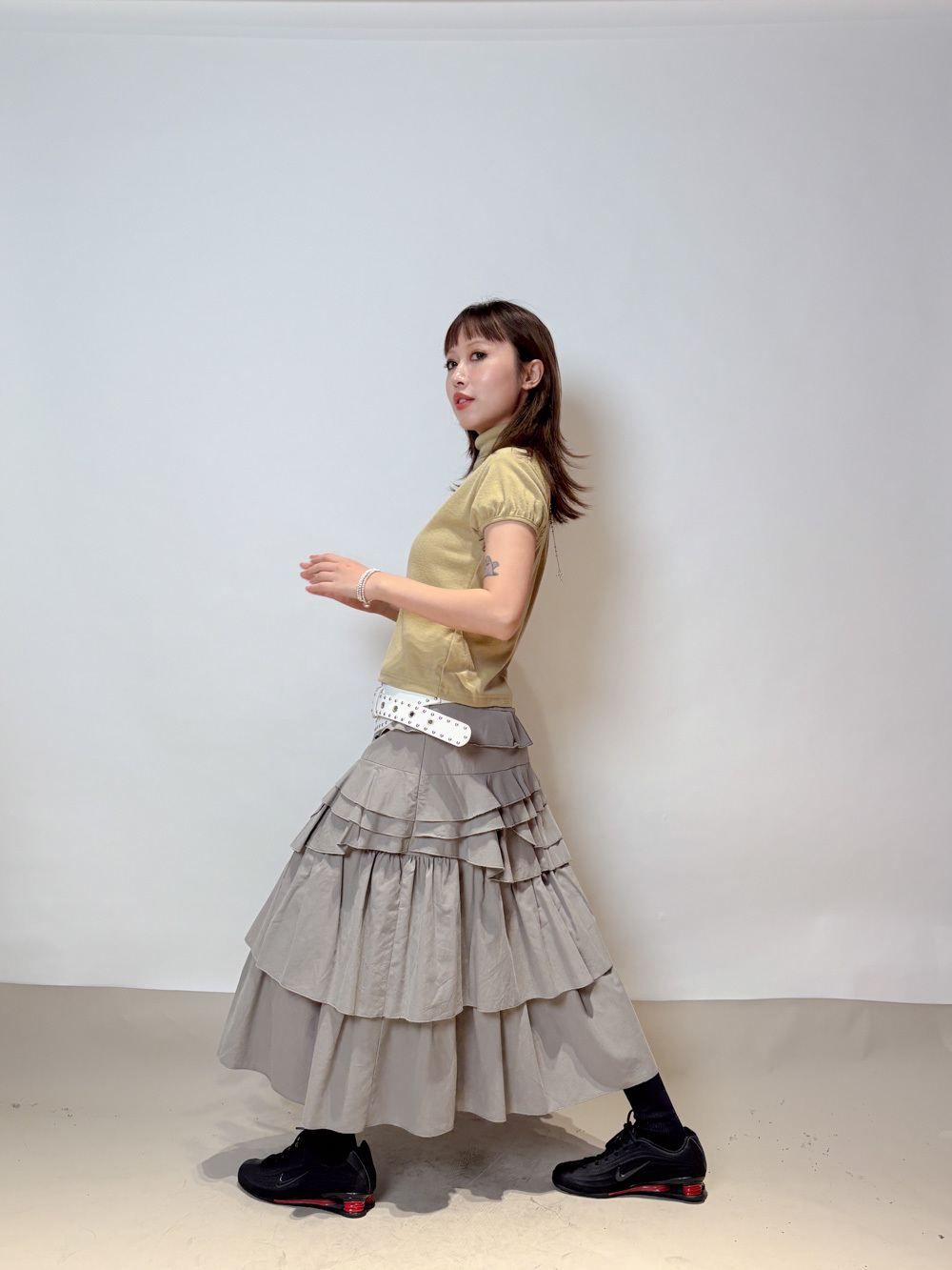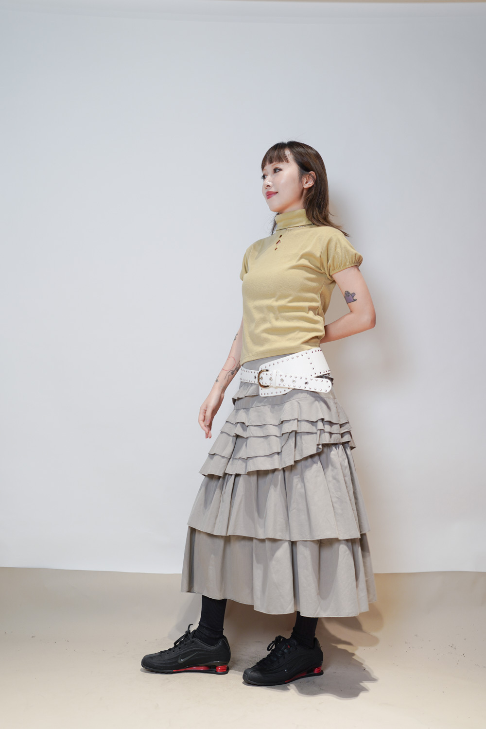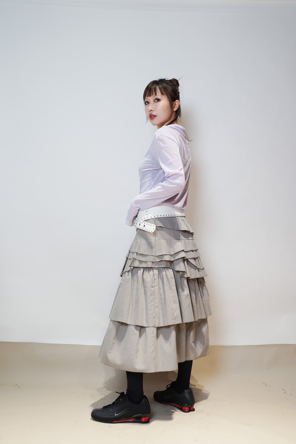 過膝長度 時尚感滿分/不規則ruffle 時尚玩味性高/