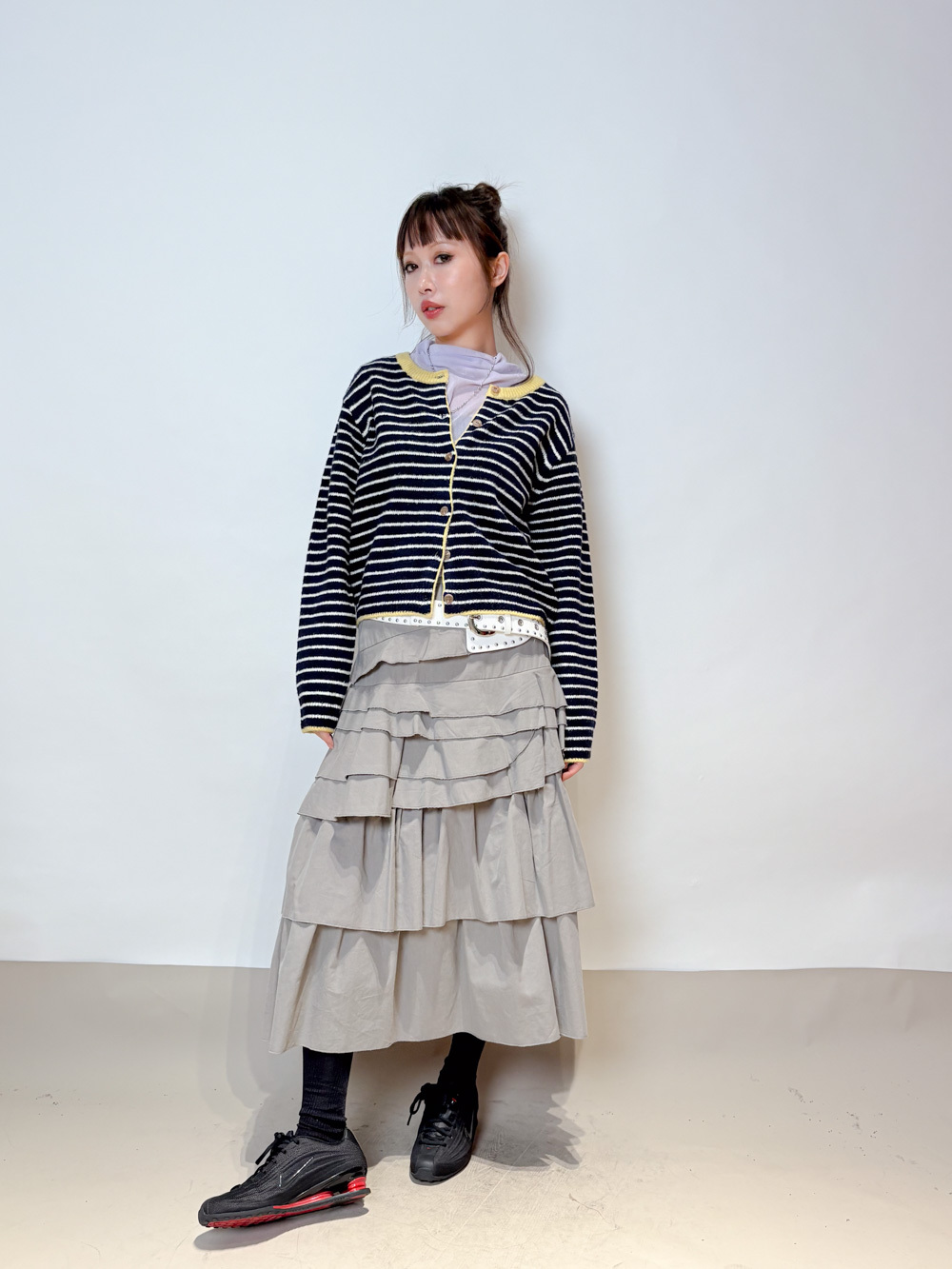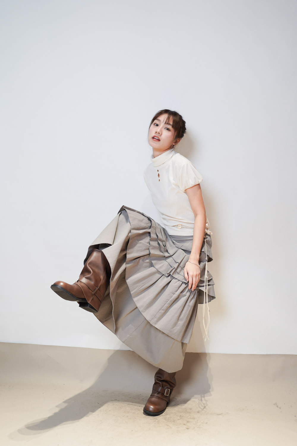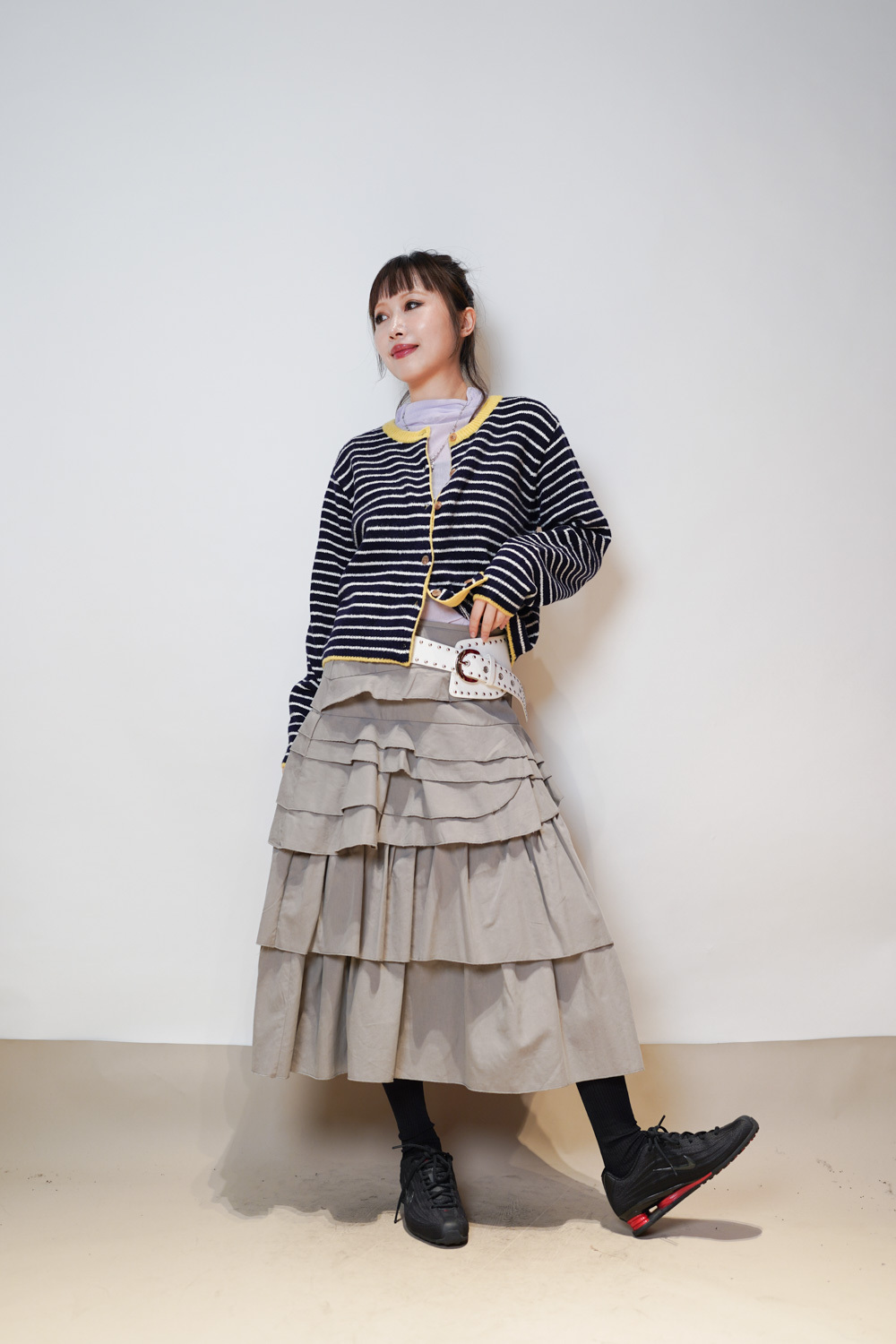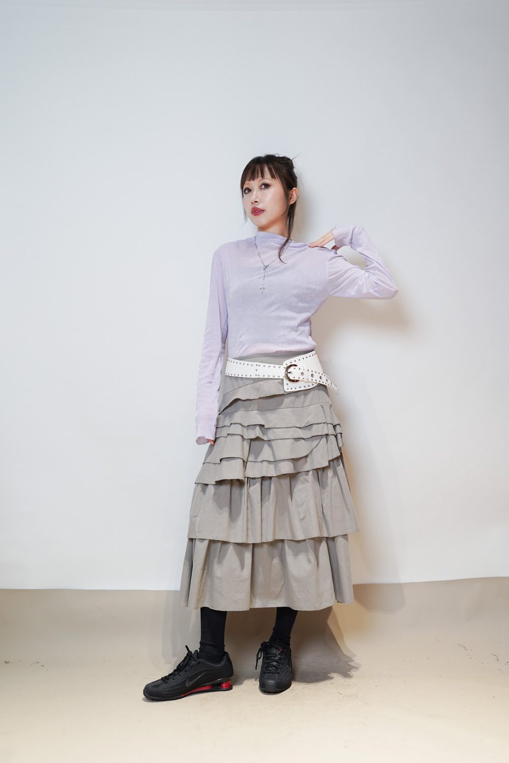 過膝長度 時尚感滿分/不規則ruffle 時尚玩味性高/