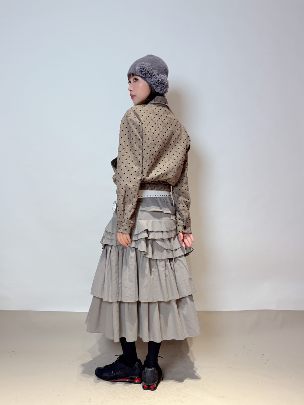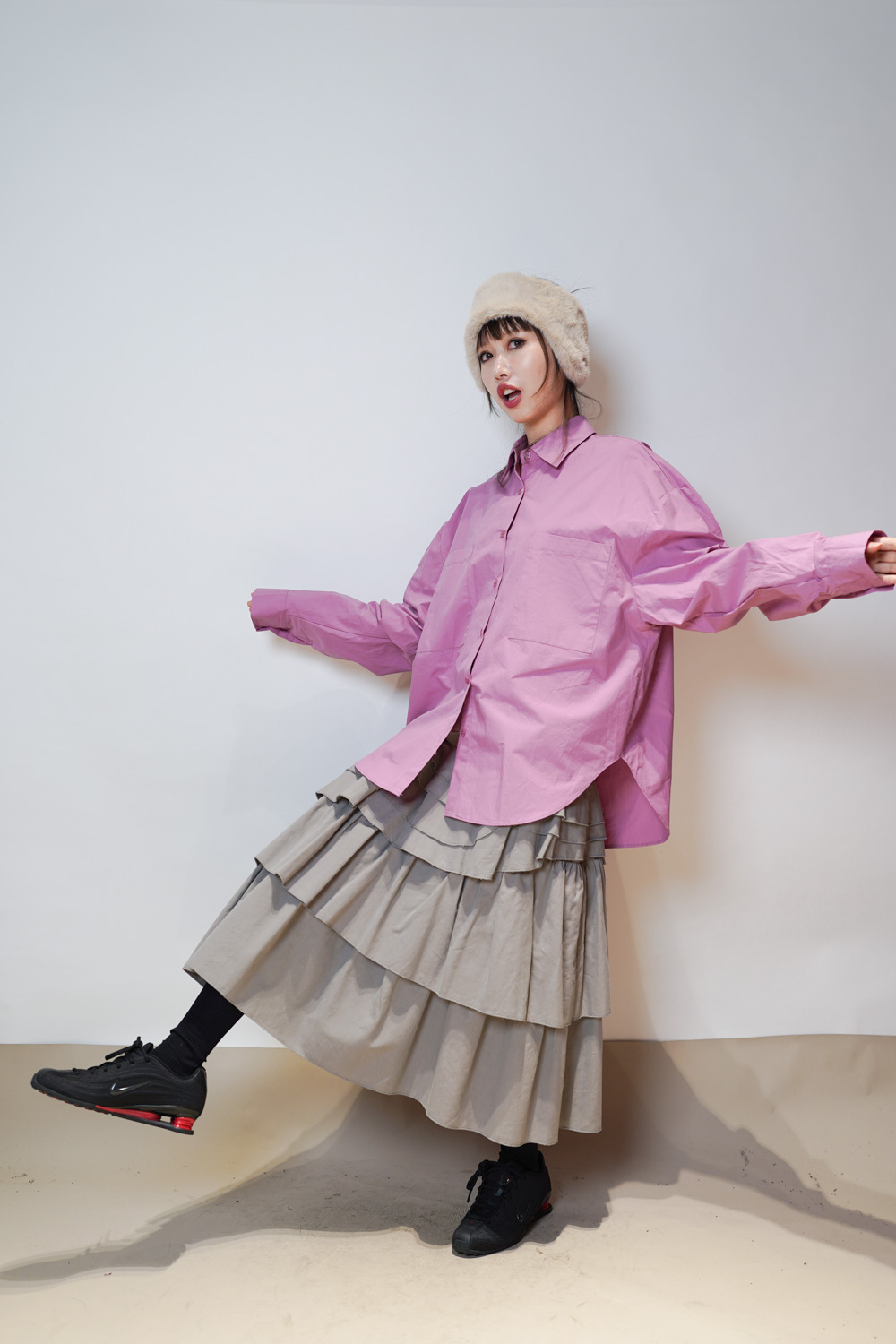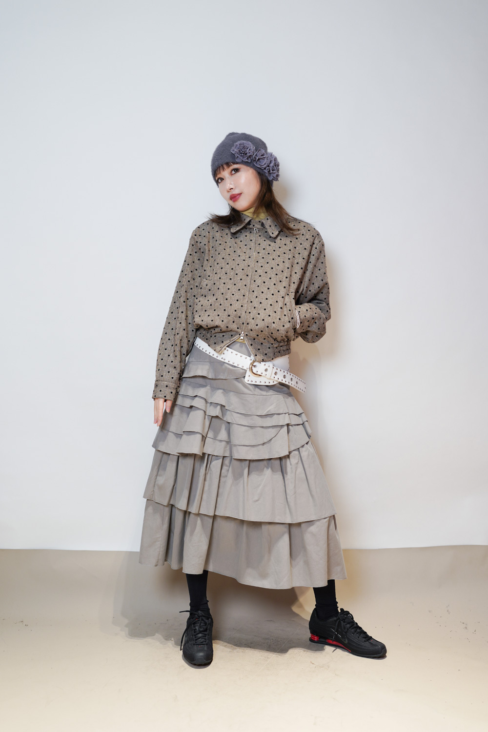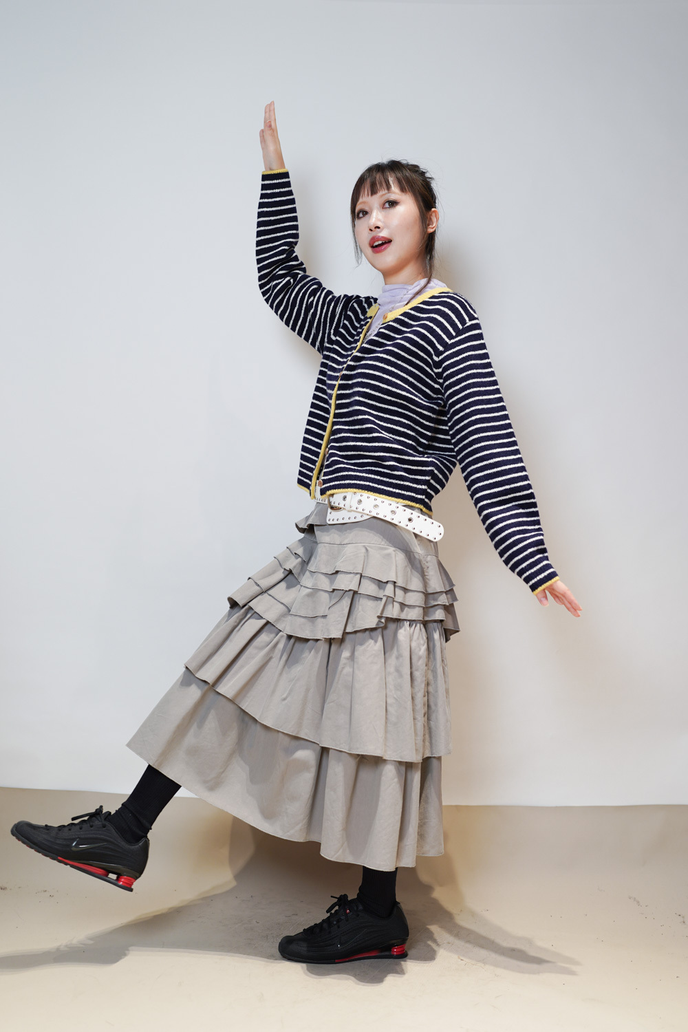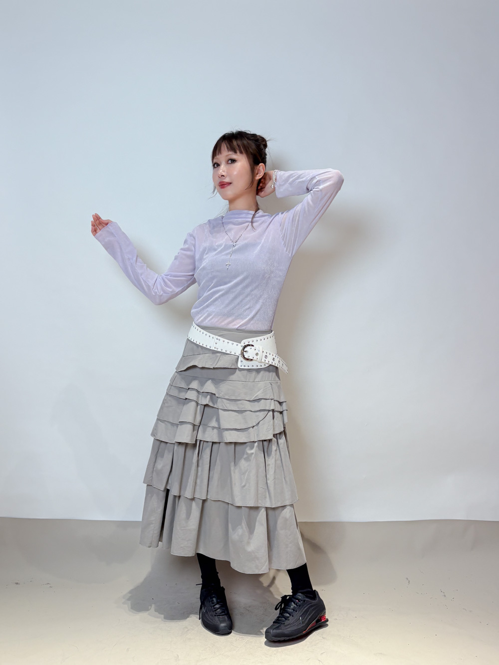 過膝長度 時尚感滿分/不規則ruffle 時尚玩味性高/