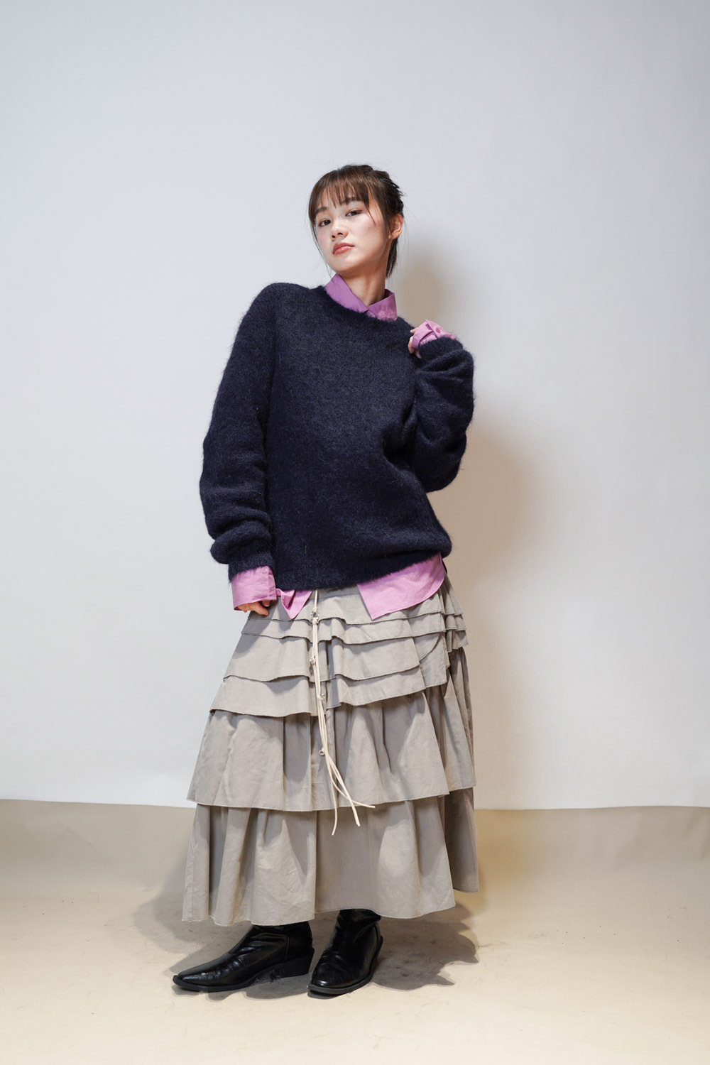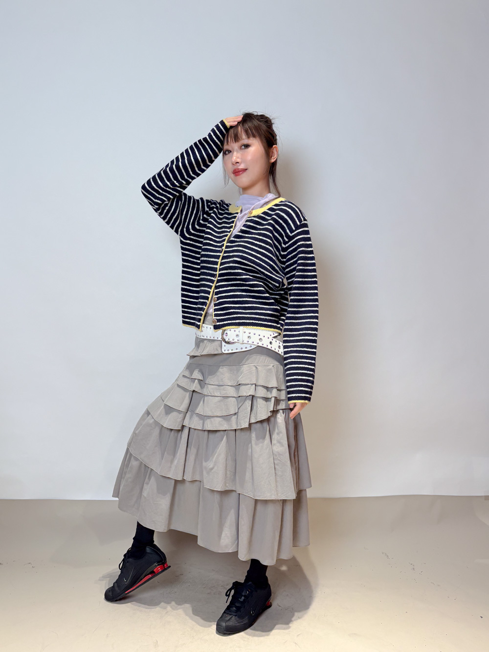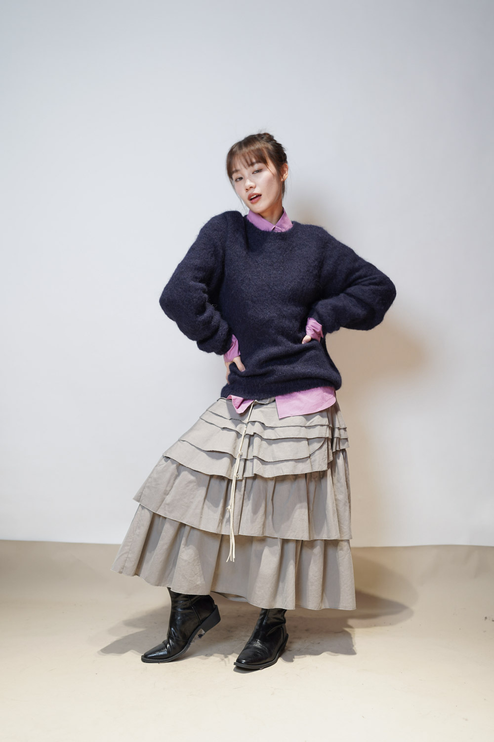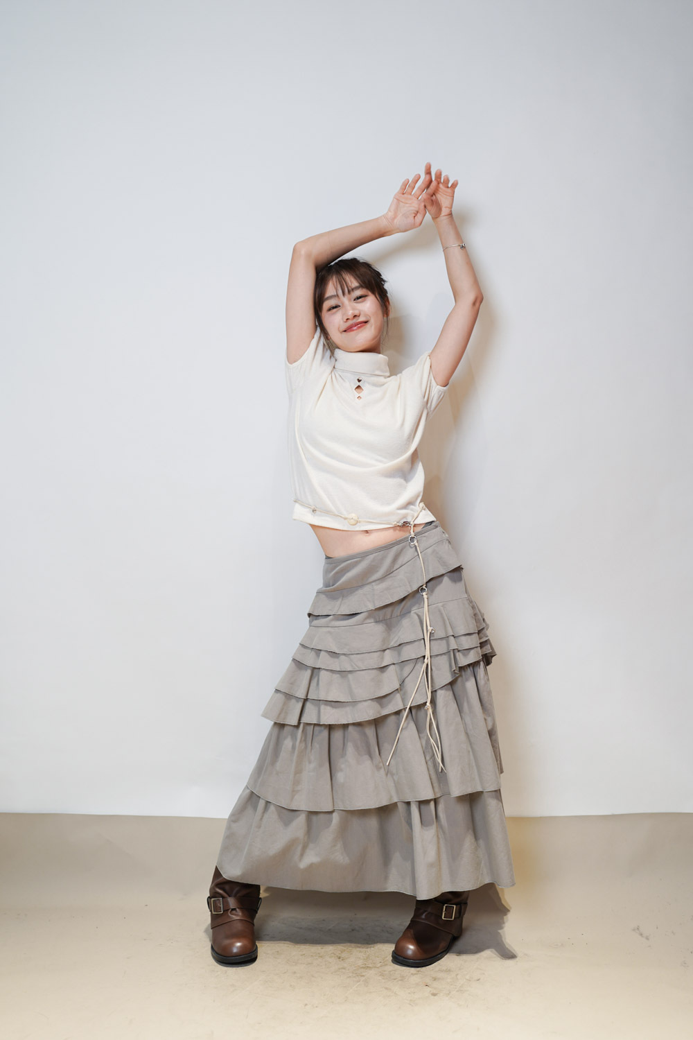 過膝長度 時尚感滿分/不規則ruffle 時尚玩味性高/
